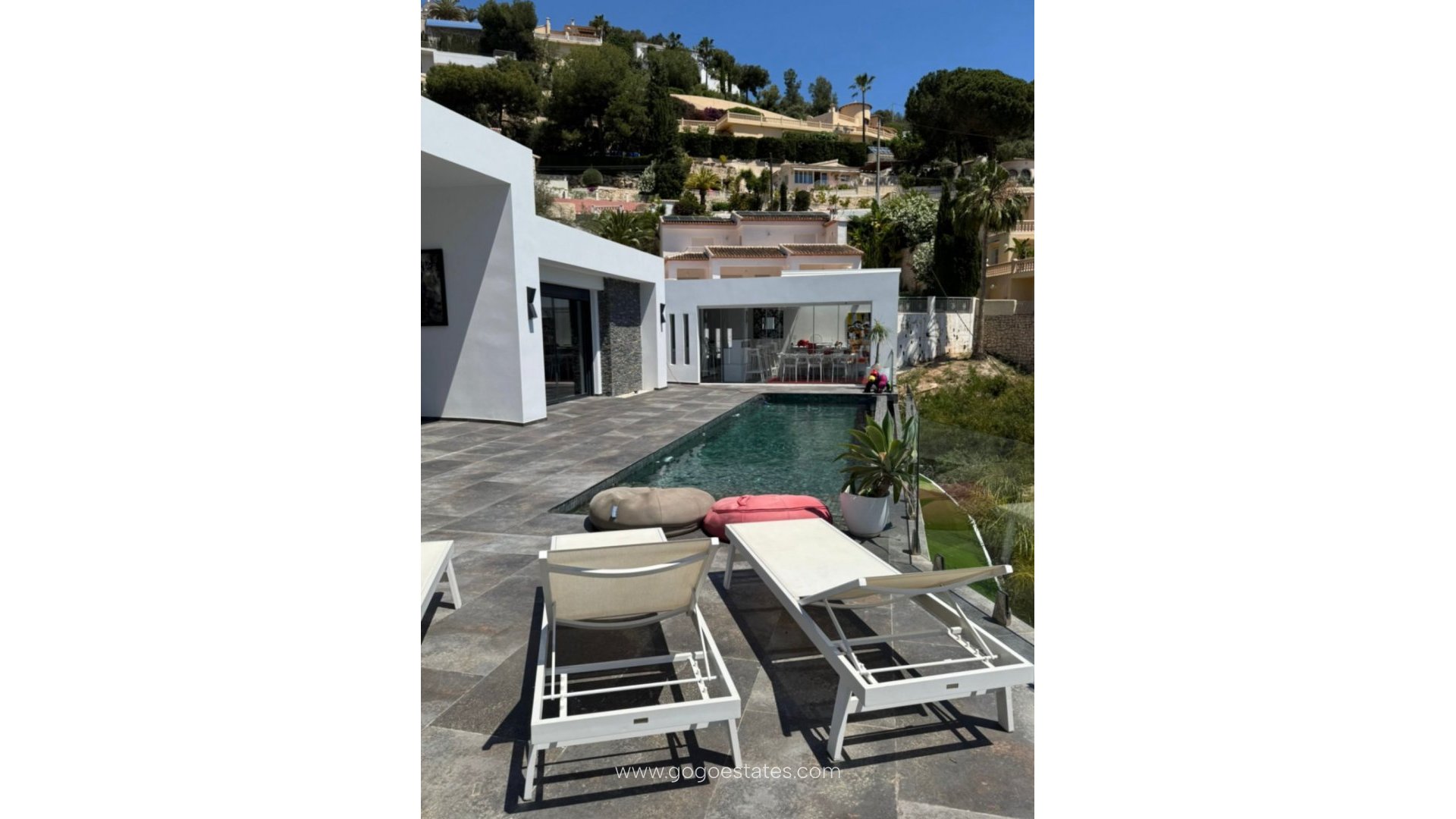 Spektakulärer Meer- und Talblick – Moderne Villa in ruhiger, grüner Umgebung. In ruhiger, grüner Umgebung mit weitreichendem Blick auf das Meer und die umliegenden Täler gelegen, verbindet diese außergewöhnliche Villa aus dem Jahr 2018 moderne Eleganz mit müheloser Funktionalität. Mit klaren architektonischen Linien, großzügigen Volumen und hohen Decken bietet das Haus Schönheit und Funktionalität gleichermaßen. Die Villa ist lichtdurchflutet und bietet von jedem Zimmer aus einen atemberaubenden Ausblick. Sie erstreckt sich über eine Ebene und bietet so optimalen Wohnkomfort. Der großzügige Wohnraum geht nahtlos in den Außenbereich über, wo breite Terrassen, ein atemberaubender Swimmingpool und eine hervorragend ausgestattete Sommerküche das ganze Jahr über zum Genießen einladen. Die voll ausgestattete Sommerküche – mit Panoramablick auf das Meer – kann für kühlere Abende komplett geschlossen werden und bietet so zu jeder Jahreszeit einen idealen Ort für Unterhaltung. Die Innenaufteilung umfasst eine elegante Eingangshalle mit Gäste-WC, einen großzügigen offenen Wohnbereich mit Wohnzimmer, Esszimmer, Bar und voll ausgestatteter Designerküche, alle mit Zugang zu den Terrassen, sowie eine luxuriöse Master-Suite mit eigenem Bad und begehbarem Ankleidezimmer. Außerdem zwei Gästezimmer, jedes mit eigenem Duschbad und WC, ein viertes Schlafzimmer mit eigenem Bad, mit separatem Zugang und direktem Zugang zum Garten, ideal für Gäste oder Personal. Der wunderschön angelegte Garten zeigt eine reife mediterrane Flora, darunter majestätische Palmen, blühende Bougainvilleen und uralte Olivenbäume. Jedes Detail wurde sorgfältig ausgewählt, um eine ruhige und harmonische Oase im Freien zu schaffen. Zu den weiteren Annehmlichkeiten gehören Fußbodenheizung und Klimaanlage, elektrische Rollläden, ausreichend Parkplätze vor Ort, eine Garage/ein Abstellraum, ideal für Fahrräder und Motorräder (nicht für Autos geeignet). Dieses seltene Juwel bietet kultiviertes Leben an der Küste mit absoluter Privatsphäre und Komfort, ideal als Hauptwohnsitz, luxuriöses Ferienhaus oder exklusive Mietmöglichkeit.