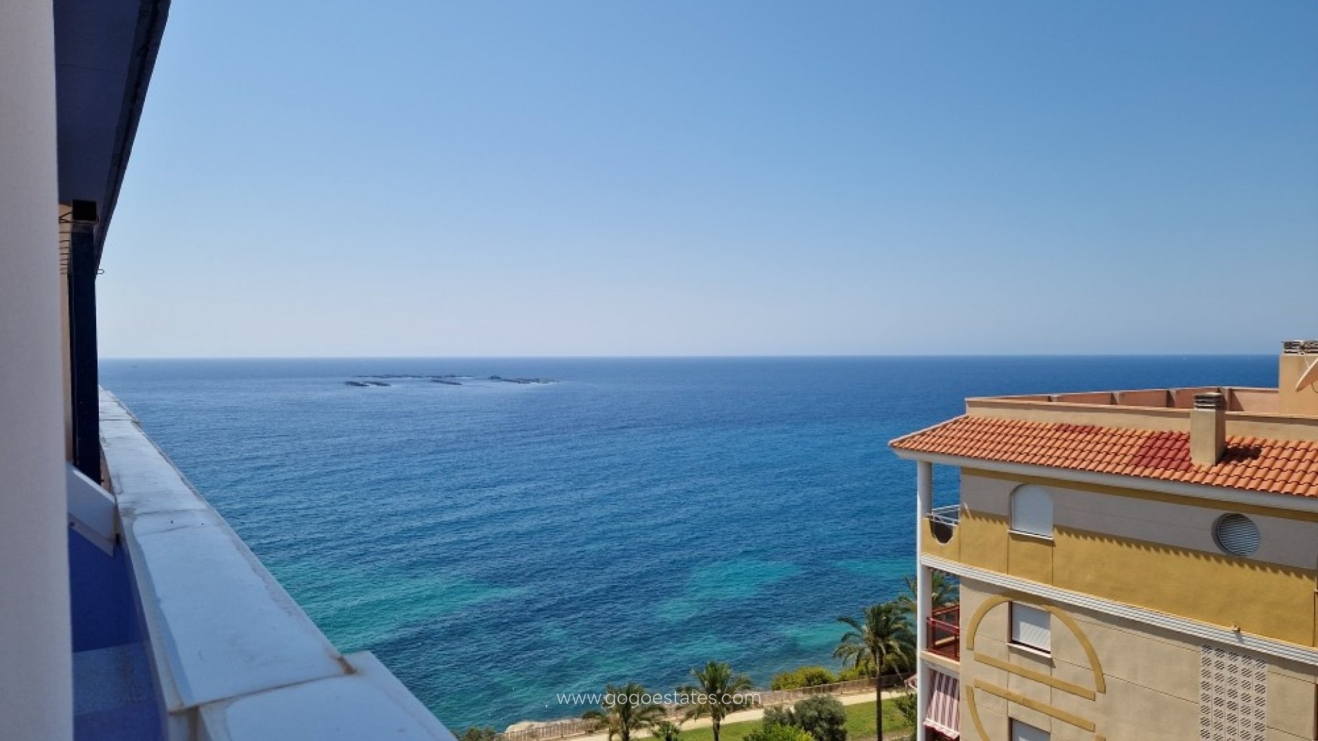 Duplex-Penthouse am Strand. Entdecken Sie luxuriöses Wohnen in diesem exklusiven Duplex-Penthouse direkt am Meer, neben Torres Beach. Eine ruhige und malerische Lage mit **atemberaubendem Meer- und Bergblick**. Dieses geräumige Anwesen wurde entworfen, um Komfort und Stil zu gewährleisten, verteilt auf zwei Etagen **Erdgeschoss**:- 2 geräumige Schlafzimmer mit Einbauschränken- 2 moderne Badezimmer- Eine große Terrasse mit Zugang von der Küche und dem Wohn-Esszimmer- Ein helles und einladendes Wohnzimmer- Eine voll ausgestattete separate Küche mit zusätzlicher Galerie- Eine elegante Eingangshalle mit Einbauschrank **Obergeschoss**: - Ein geräumiges Sonnendeck mit eingebauter Dusche - Eine teilweise Sommerküche mit Spüle und eingebautem Grill, ideal, um die Natur zu genießen. Beide Ebenen bieten geräumige und funktionale Räume, die all Ihre Bedürfnisse erfüllen. **Im Preis inbegriffen**: - Ein Tiefgaragenstellplatz - Ein praktischer und geräumiger Abstellraum Das Anwesen befindet sich in einer **geschlossenen Wohnanlage** mit hervorragenden Einrichtungen: - Swimmingpools - Landschaftsgärten - Whirlpool - Gesellschaftsclub - Sauna - Voll ausgestatteter Sportclub Direkt neben dem Gebäude befindet sich außerdem eine Bushaltestelle. Innerhalb des Komplexes gibt es ein Café und einen Mini-Supermarkt. In der Nähe befinden sich Supermärkte, das Einkaufszentrum La Marina, das Krankenhaus von Villajoyosa und das Casino sowie weitere Dienstleistungen. Der Flughafen Alicante ist nur 40 Autominuten entfernt. Diese Immobilie ist viel mehr als ein Zuhause: Sie ist eine Oase, die Eleganz, Komfort und eine Vielzahl von Freizeitaktivitäten vereint. Ideal als Erst- oder Zweitwohnsitz.