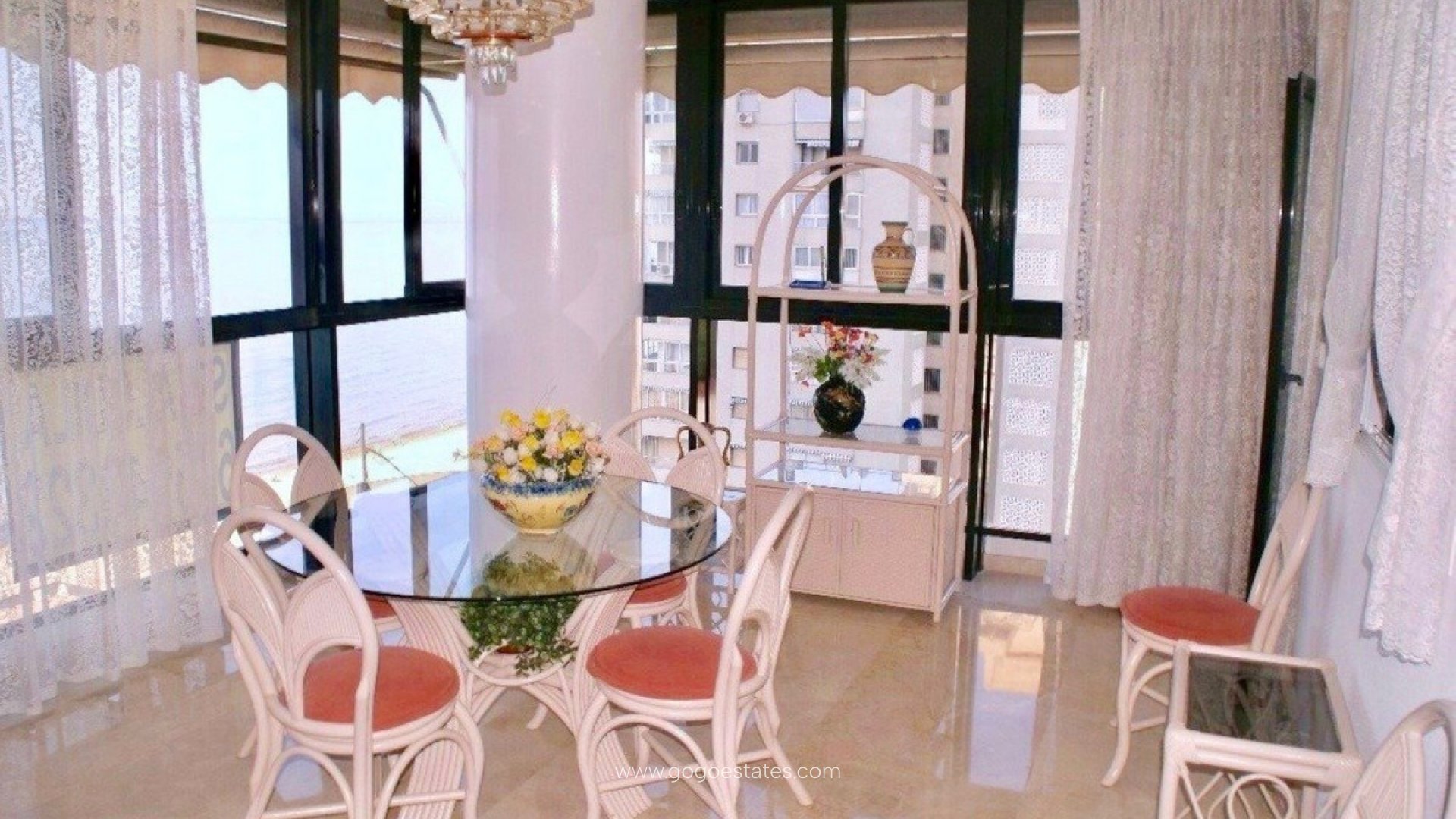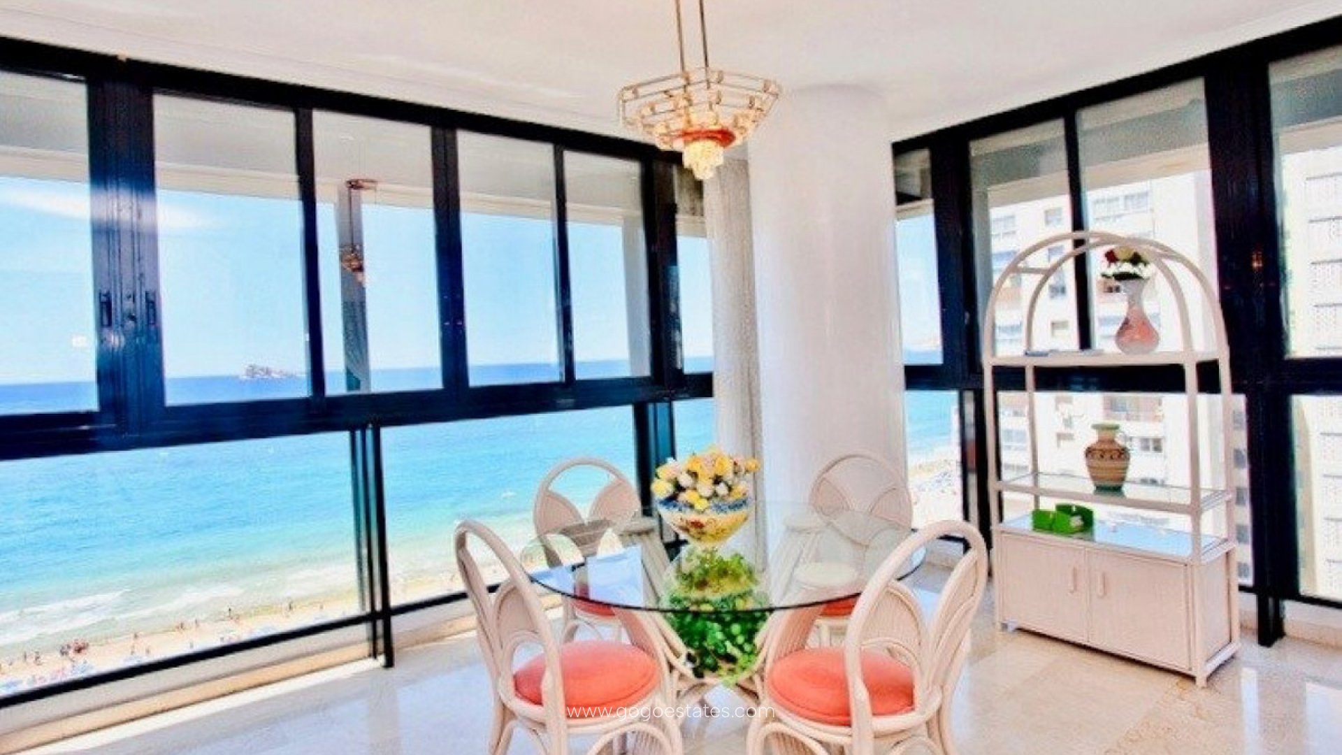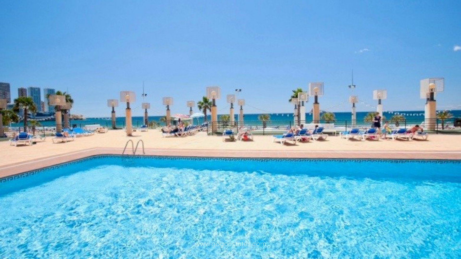 Fantastische Luxuswohnung mit 135 m² Wohnfläche. Sie verfügt über 3 Schlafzimmer (eine Suite mit 1,35 m breitem Bett und die anderen mit je zwei 90 cm breiten Betten und Einbauschränken), 2 Badezimmer, eines mit Badewanne, das andere mit Dusche mit rutschfestem Boden, ein 38 m² großes Wohn-/Esszimmer (mit Meerblick), eine große, voll ausgestattete Küche mit allen notwendigen Geräten und Utensilien sowie hochwertigen schwarzen Marmorarbeitsplatten. Die Markisen und Jalousien sind automatisiert, und die Wohnung ist mit einem Wasserenthärter ausgestattet, der den Kalk des Benidormer Wassers aus dem Inneren der Wohnung entfernt. 2 überdachte Terrassen mit je 4 m². Das Gebäude verfügt über 4 Aufzüge und einen Lastenaufzug, einen 24-Stunden-Concierge, eine Video-Gegensprechanlage, einen großen Swimmingpool mit Solarium mit Meerblick und auf jeder Etage einen Abfallentsorgungsraum. Die Wohnung ist behindertengerecht eingerichtet und verfügt über einen angepassten Zugang für Personen mit eingeschränkter Mobilität. Alle Dienstleistungen und das Zentrum sind in unmittelbarer Nähe.