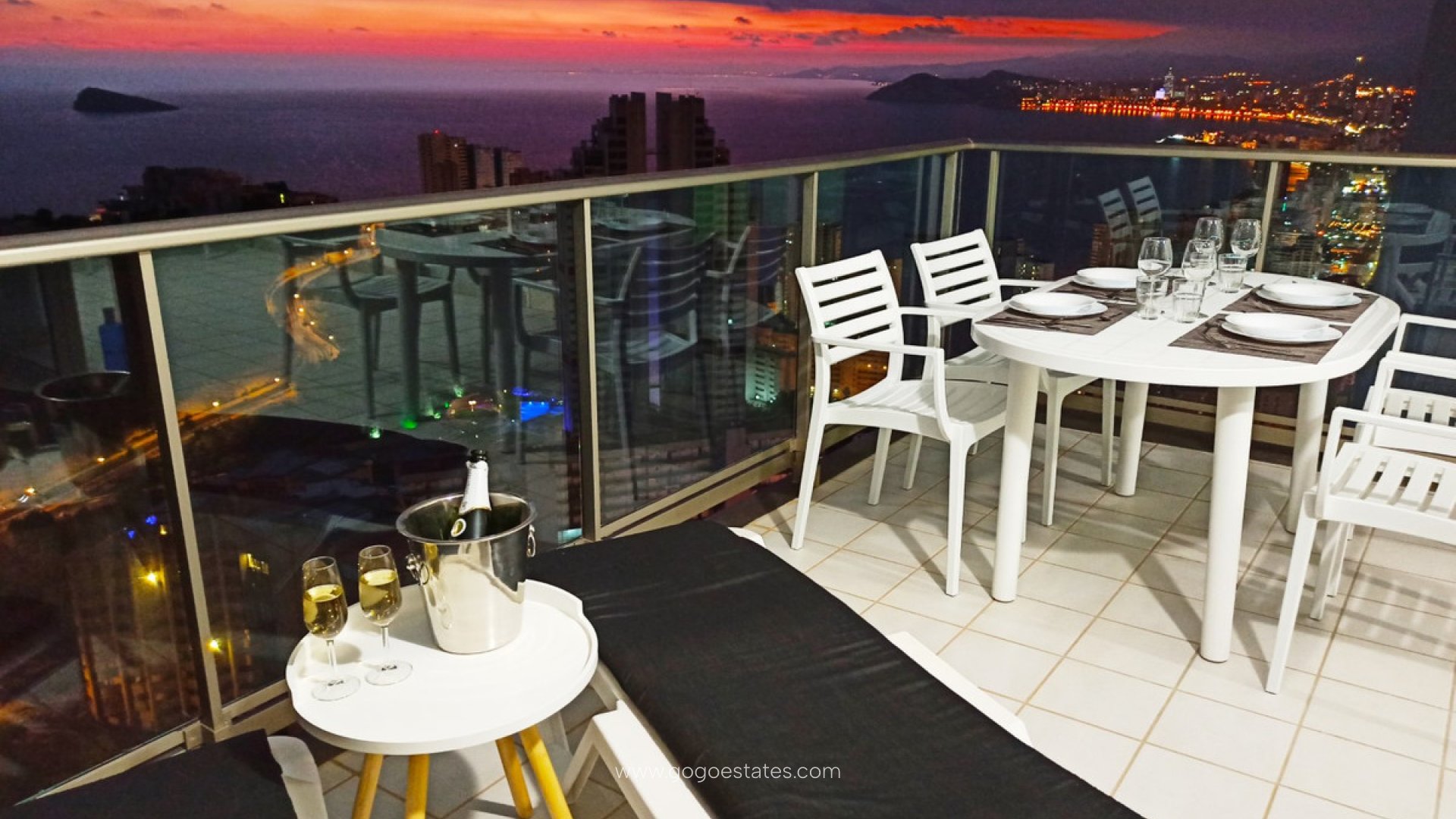 Im 29. Stock von Torre Lugano befindet sich diese Wohnung mit herrlichem Panoramablick über ganz Benidorm, die Berge und das Meer. Das Gebäude Torre Lugano ist mit insgesamt 42 Stockwerken und einer Höhe von 158m das 2. höchste Gebäude in Benidorm. Die Wohnung mit einer bebauten Fläche von 89m² verfügt über 2 Schlafzimmer, 2 Bäder, ein Wohnzimmer und eine große Terrasse, auf der Sie die Sonne und die Aussicht genießen können. Die Wohnung ist nach Süden ausgerichtet. Es ist sehr gut gepflegt und verfügt über eine neue Daikin-Klimaanlage mit WIFI aus dem Jahr 2024. Es gibt auch 2 private Garagenplätze innerhalb des Gebäudes. Die Wohnung verfügt über eine Touristenlizenz und wird fast immer an Touristen vermietet. Es hat eine eigene Website. Die Rentabilität ist sehr, sehr hoch mit nachweisbaren Einnahmen im Jahr 2022 von 26600 €, im Jahr 2023 von 29500 € und im Jahr 2024 von 30700 €!! Website, Möbel, Zubehör, Kundenstamm, ... Alles inklusive! Torre Lugano in Benidorm verfügt über 2 große Außenpools, ein weiteres Becken für Kinder, einen Fitnessraum, einen großen Garten mit Spielplatz, Tennisplatz, Paddle-Tennisplatz und Sie können auch Fußball und Basketball spielen. Torre Lugano verfügt über einen Pförtner und eine Videoüberwachung.