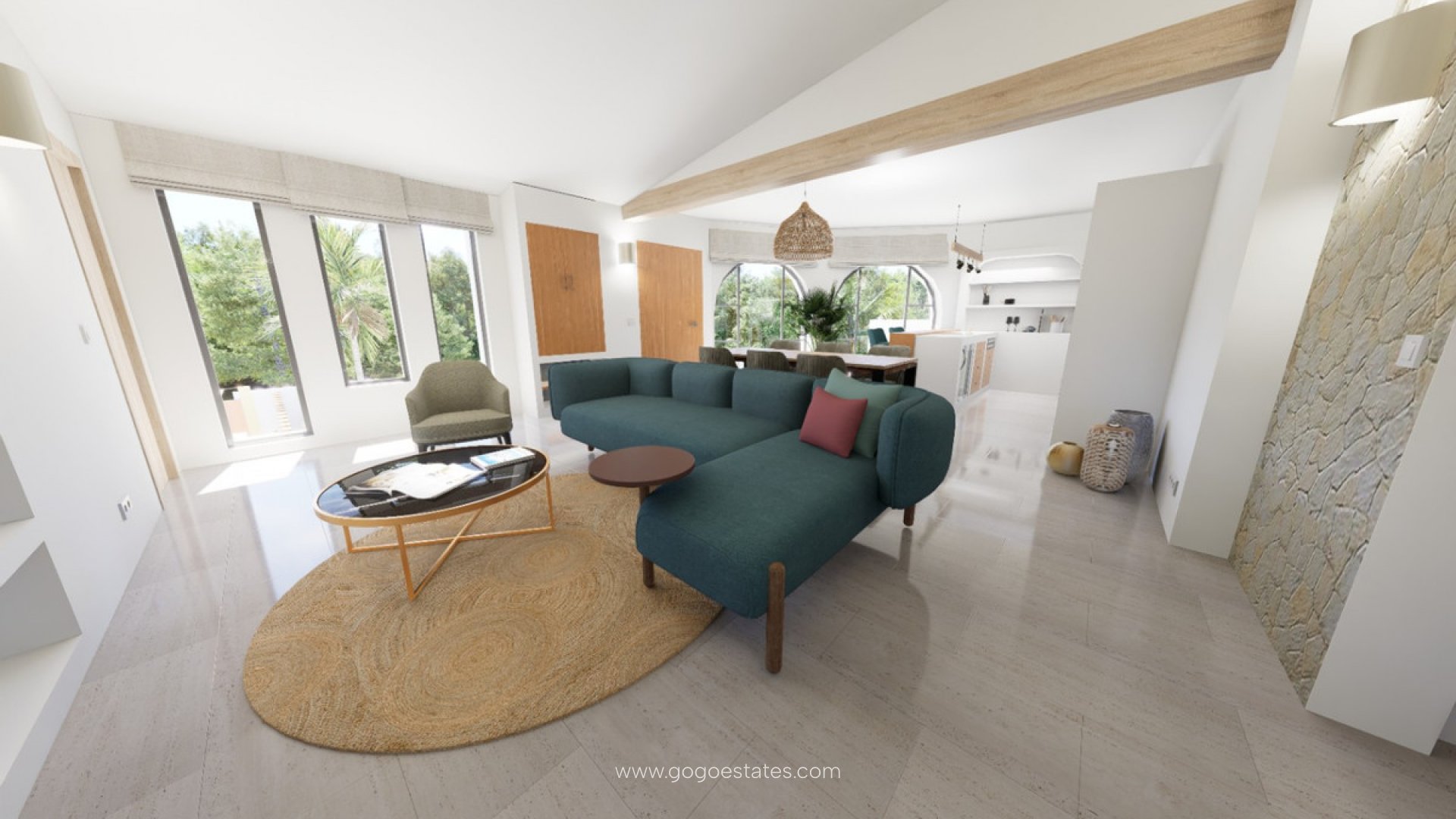 Renovierungsprojekt: Villa zu verkaufen in Montemar, Benissa Vom traditionellen zum Ibiza Stil mit Charakter, Komfort und modernem Wohnvergnügen. Das ist das Ziel dieses neuen Renovierungsprojekts in Benissa. Eine Immobilie, in der sich Ruhe, Komfort und Luxus vereinen. In dem ruhigen und grünen Stadtteil Montemar gelegen, befindet sich diese Villa in zentraler Lage zwischen dem charmanten Küstenort Moraira und dem authentischeren Benissa - beide nur 10 Autominuten entfernt. Es handelt sich um ein vollständiges Renovierungsprojekt und mit viel Liebe zum Detail und Qualität. Im Inneren finden Sie einen großzügigen, offenen Wohnbereich mit einem natürlichen Übergang zur luxuriösen Einbauküche. Dank der Süd-Ost-Ausrichtung genießen Sie viel natürliches Licht und angenehme Abendsonne innen und außen. Die Villa verfügt über drei geräumige Schlafzimmer, jedes mit eigenem Bad und Einbauschränken. Von den Schlafzimmern aus haben Sie einen Blick auf die umliegenden Grünflächen - eine Oase der Ruhe. Der Außenbereich ist für ein optimales Leben im Freien konzipiert. Der liebevoll angelegte Garten mit mediterranen Pflanzen bildet den Rahmen für den schönen Swimmingpool. Es gibt eine voll ausgestattete Außenküche und mehrere Sitzbereiche, in die Sie sich zurückziehen oder einfach nur Zeit in guter Gesellschaft verbringen können inkl. Dachterrasse. Es wird eine Vorinstallation für Sonnenkollektoren, eine Klimaanlage mit Wärmepumpe, Doppelverglasung und einen 200-Liter-Elektroboiler geben. Eine Alarmanlage ist ebenfalls vorhanden. Darüber hinaus verfügt die Villa über eine geräumige Einfahrt für zwei Autos und einen separaten Wasch- und Abstellraum. Auf Wunsch kann eine Studie erstellt werden, um ein Möbel- und Dekorationspaket nach dem Geschmack des Kunden anzubieten. Nur 3 km entfernt liegt die schöne Bucht von Baladrar, und auch der Sandstrand von Moraira ist in 10 Minuten zu erreichen. Für Ihre Einkäufe können Sie einen kleinen Supermarkt in 4 Minuten erreichen; größere Supermärkte sind 10 Minuten entfernt in Benissa. Dies ist ein weiteres unterhaltsames Projekt, das wir Ihnen sehr empfehlen können. Vereinbaren Sie noch heute einen Termin mit einem unserer Mitarbeiter. Der angegebene Preis enthält keine Steuern und Kaufkosten / Das Angebot gilt vorbehaltlich von Irrtümern, Preisänderungen, Verfügbarkeit, Unterlassung und / oder Rücktritt vom Markt ohne Vorankündigung / Möbel und Inhalte nach individueller Vereinbarung und nicht nach den Fotos in der Präsentation