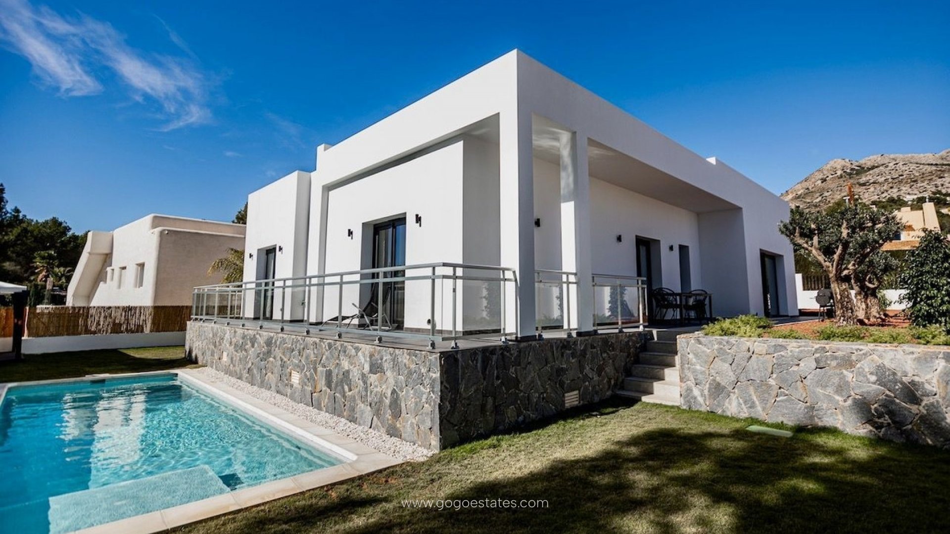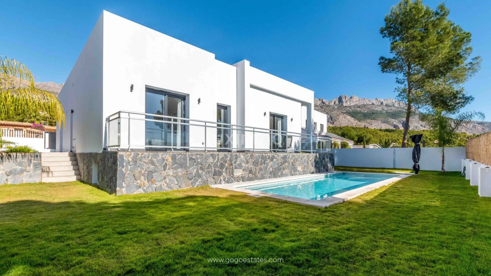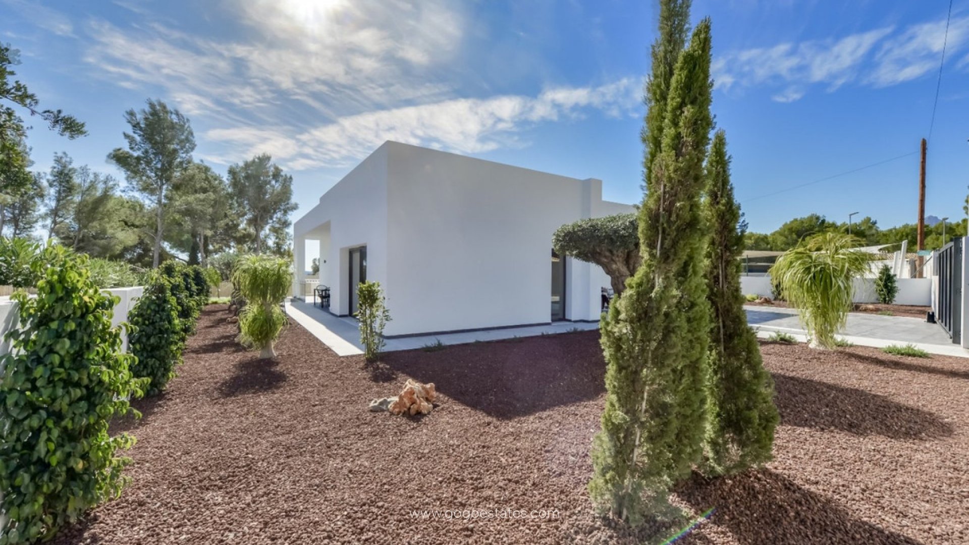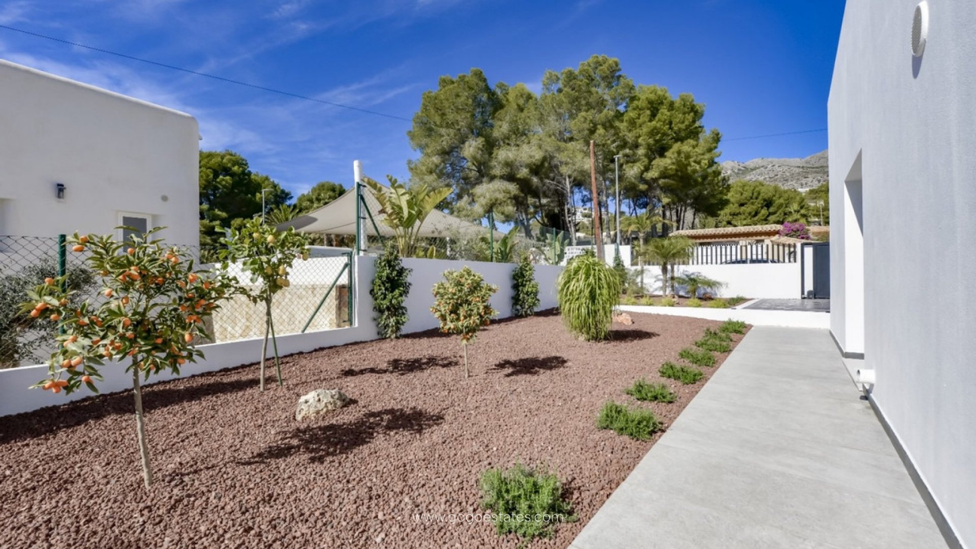 Die Immobilie hat eine bebaute Fläche von 226 m² auf einem Grundstück von 844 m² mit Südausrichtung, umgeben von Natur und in einer ruhigen Gegend von Altea la Vella gelegen, bietet diese Region dank der umliegenden Berge ganzjährig ein fantastisches Mikroklima. Die Villa, die 2021 fertiggestellt wurde, bietet einen exklusiven Lebensstil auf einer einzigen Etage, ohne Treppen oder Stufen, was den Bewohnern maximalen Komfort und Sicherheit bietet. Sie verfügt über ein geräumiges Wohnzimmer mit einer Deckenhöhe von 3,3 Metern, das mit einem eleganten, in Frankreich hergestellten Langusta-Kamin mit elektronischer Steuerung ausgestattet ist. Es hat auch vier Schlafzimmer, eines davon mit eigenem Bad mit Badewanne und Dusche sowie einem geräumigen Ankleidezimmer. Das zweite Schlafzimmer verfügt über eine Dusche und eine Sauna mit einem finnischen Harvia-Holzofen. Die Villa ist umgeben von einem üppigen Garten mit Olivenbäumen, darunter ein über tausend Jahre alter, aus Portugal stammender Baum, Naturrasen und einem automatischen Bewässerungssystem. Außerdem verfügt sie über einen Parkplatz für zwei Fahrzeuge mit automatischem Tor und einen 27 Quadratmeter großen Swimmingpool mit Salzfilterung und Vorinstallation für Warmwasser. Die Immobilie verfügt außerdem über eine Energieeffizienzklasse "A", eine zentrale Klimaanlage für Heizung und Kühlung, hochwertige PVC-Fenster und eine hervorragende Schalldämmung, die zu jeder Jahreszeit für ein angenehmes Wohnklima sorgt. Das Haus liegt 2 km von der Stadt, 5 km vom Strand, 3 km von der Autobahn und 70 km vom Flughafen Alicante entfernt.