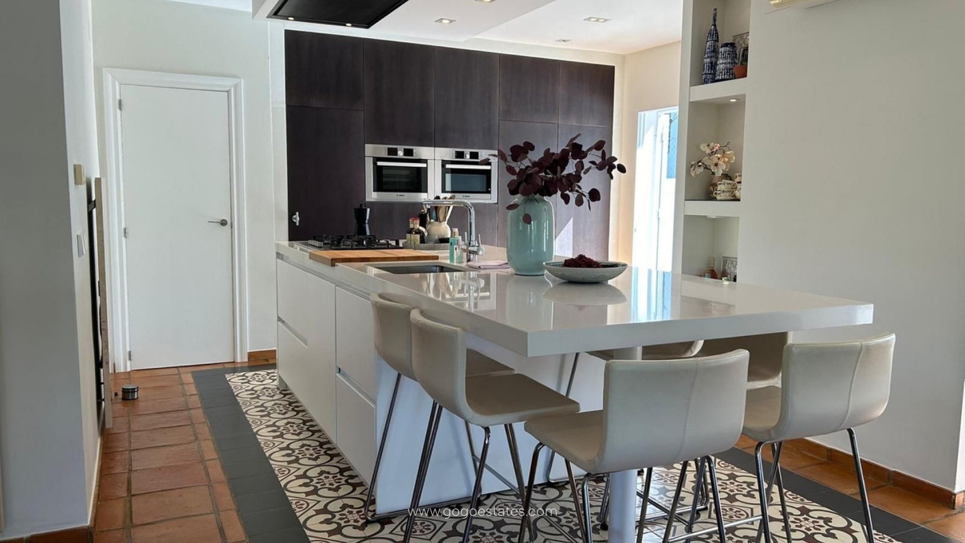 Versteckt am Ende einer ruhigen Sackgasse in einer der ruhigsten Wohngegenden von Altea la Vella bietet diese elegante mediterrane Villa die perfekte Balance zwischen Privatsphäre, natürlicher Umgebung und modernem Komfort. Mit Panoramablick auf Berge und Wald von mehreren Terrassen aus strahlt die Lage Ruhe aus und ist dennoch nur 15 Minuten vom Strand und Alteas malerischer Altstadt entfernt. Das Haupthaus wurde geschmackvoll renoviert und bietet einen großzügigen, offenen Wohn- und Essbereich mit gemütlichem Kamin. Große Fenster und der nahtlose Übergang zu einer stilvollen, halbverglasten Terrasse machen es zu einem einladenden Ort, den man das ganze Jahr über genießen kann. Die voll ausgestattete offene Küche mit hochwertigen Geräten verbindet Funktionalität mit modernem Stil. Auf dieser Ebene befinden sich drei helle Schlafzimmer und zwei Badezimmer, darunter eine komfortable Master-Suite mit eigenem Bad. Im Untergeschoss, mit eigenem Eingang, bietet ein komplettes Gästeapartment mit zwei Schlafzimmern hervorragende Vermietungsmöglichkeiten oder eignet sich ideal für Mehrgenerationenwohnen. Es verfügt über eine offene Küche, einen gemütlichen Wohn- und Essbereich, ein komplettes Badezimmer und zwei private Terrassen – eine davon im Schatten alter Bäume für ruhige Momente. Von hier aus führt ein direkter Zugang zum privaten Poolbereich, der absolute Privatsphäre und Entspannung bietet. Das Anwesen bietet außerdem eine über 20 m² große Dachterrasse mit atemberaubendem Panoramablick – ein perfekter Ort zum Entspannen oder für Unterhaltung. Zu den modernen Annehmlichkeiten gehören eine Klimaanlage im Obergeschoss, elektrische Heizkörper im gesamten Gebäude und ausreichend Parkplätze für mehrere Fahrzeuge auf dem Gelände. Ob Sie ein vielseitiges Familienhaus mit Platz zum Wachsen oder eine clevere Investition mit sofortigem Renditepotenzial suchen – diese Villa bietet beides. Der schlüsselfertige Zustand, die hochwertige Ausstattung und die ruhige und dennoch verkehrsgünstige Lage machen sie zu einem seltenen Fund in einer der begehrtesten Wohngegenden von Altea la Vella.