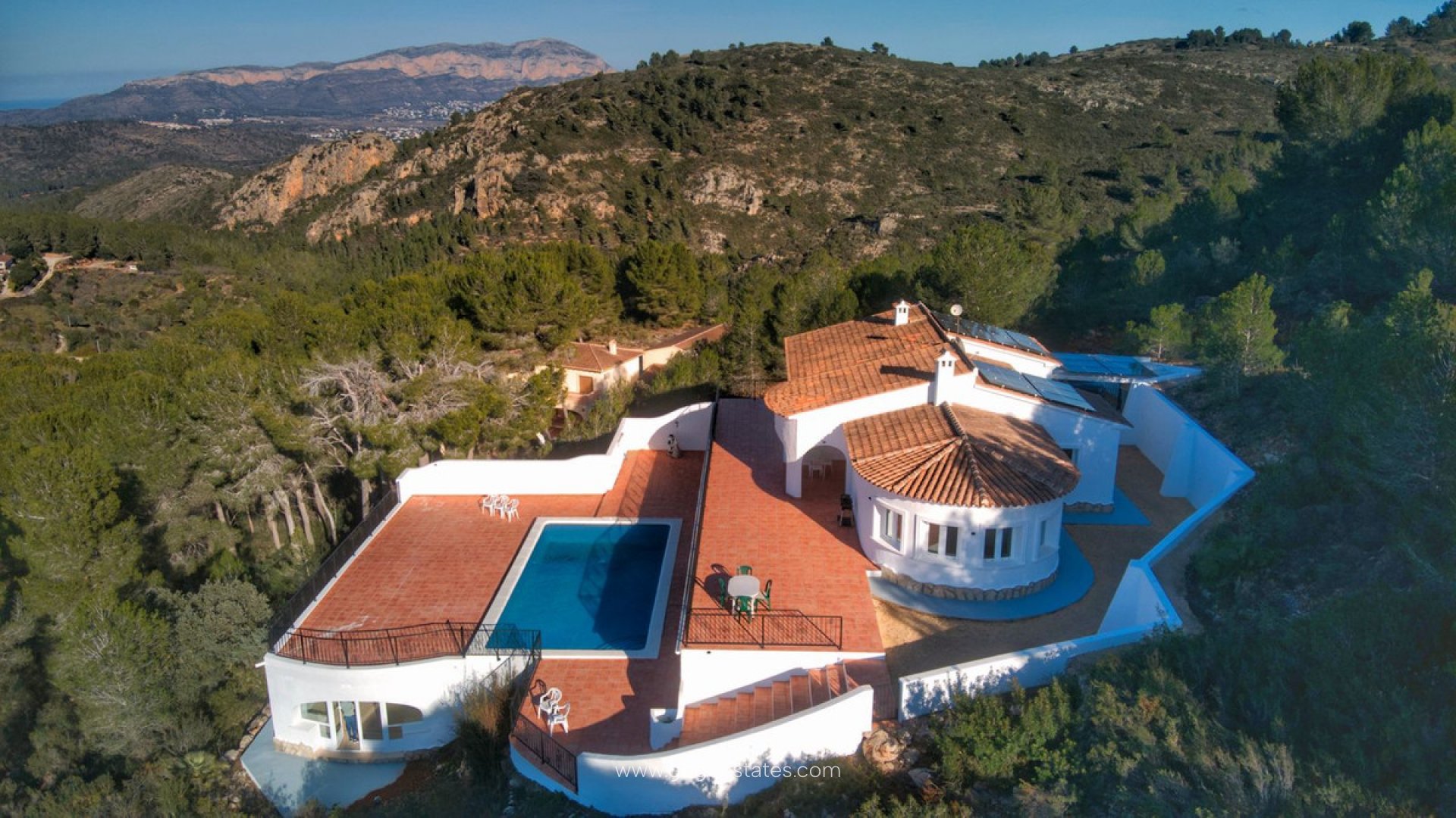 Suchen Sie Ruhe? Dann haben Sie sie gefunden. Diese Villa in der charmanten Stadt Llíber, gleich neben Calpe, ist ein verstecktes Juwel, von dem Sie nicht einmal wussten, dass Sie davon geträumt haben. Ihre nächsten Nachbarn sind hier Vogelgezwitscher und das Rauschen der Brise in den Kiefern. Hoch oben in den Bergen versteckt bietet dieses Refugium einen atemberaubenden Panoramablick – denken Sie an das Tal, die Berge und sogar das Meer! Ob Sie Ihren Morgenkaffee oder Ihren Abendwein genießen, die Landschaft wird Sie nie enttäuschen. Der Weg zu Ihrem Refugium mag eng sein (und gelegentlich durch Kiefernwälder), aber das Ziel? Pure Glückseligkeit. Das Grundstück: Mit über 3.700 m² Land sind die Möglichkeiten so vielfältig wie Ihre Fantasie. Gestalten Sie einen üppigen Garten, bauen Sie ein Yoga-Deck oder fügen Sie einen originellen Skulpturenpfad hinzu – ganz nach Ihrer Stimmung. Die Villa: Dieses wunderschön renovierte Haus kombiniert mediterranen Charme mit modernen Akzenten. Jeder Winkel wurde mit Blick auf Geschmack und Komfort gestaltet. Eine Fußbodenheizung hält die gesamte Villa das ganze Jahr über gemütlich warm und Solarmodule sorgen dafür, dass Sie völlig unabhängig vom Stromnetz und ohne schlechtes Gewissen sind. Im Inneren finden Sie: Obere Ebene: 3 geräumige Schlafzimmer, 2 Badezimmer und genug Licht, um Instagram neidisch zu machen. Untere Ebene: Ein separates Gästehaus mit eigener Auffahrt, Eingang und 2 Schlafzimmern, 1 Badezimmer. Perfekt, um Schwiegereltern, Freunde oder Mieter zu beherbergen, ohne Ihren persönlichen Raum zu opfern. Outdoor-Paradies: Die Außenbereiche sind der Ort, an dem die wahre Magie passiert. Ein privater Pool (4,7 x 10 m) lädt zum Abkühlen ein, während der angrenzende Barbereich mit Dusche schreit: „Lasst uns eine Poolparty veranstalten!“ Zwei riesige Terrassen (je 90 m²!) bieten erstklassige Plätze zum Sonnenbaden, Sternegucken oder einfach nur, um die Ruhe zu genießen. Vorteile der Lage: Nur 5 Autominuten in die Stadt. 15 Minuten zum Strand. Nah genug für Komfort, weit genug für Ruhe. Das ist mehr als ein Zuhause – es ist ein Lifestyle-Upgrade. Egal, ob Sie dem Alltag entfliehen, sich unterhalten oder einfach das Leben inmitten der Natur genießen möchten, diese Villa ist Ihre Leinwand. Jetzt fehlt nur noch Sie.