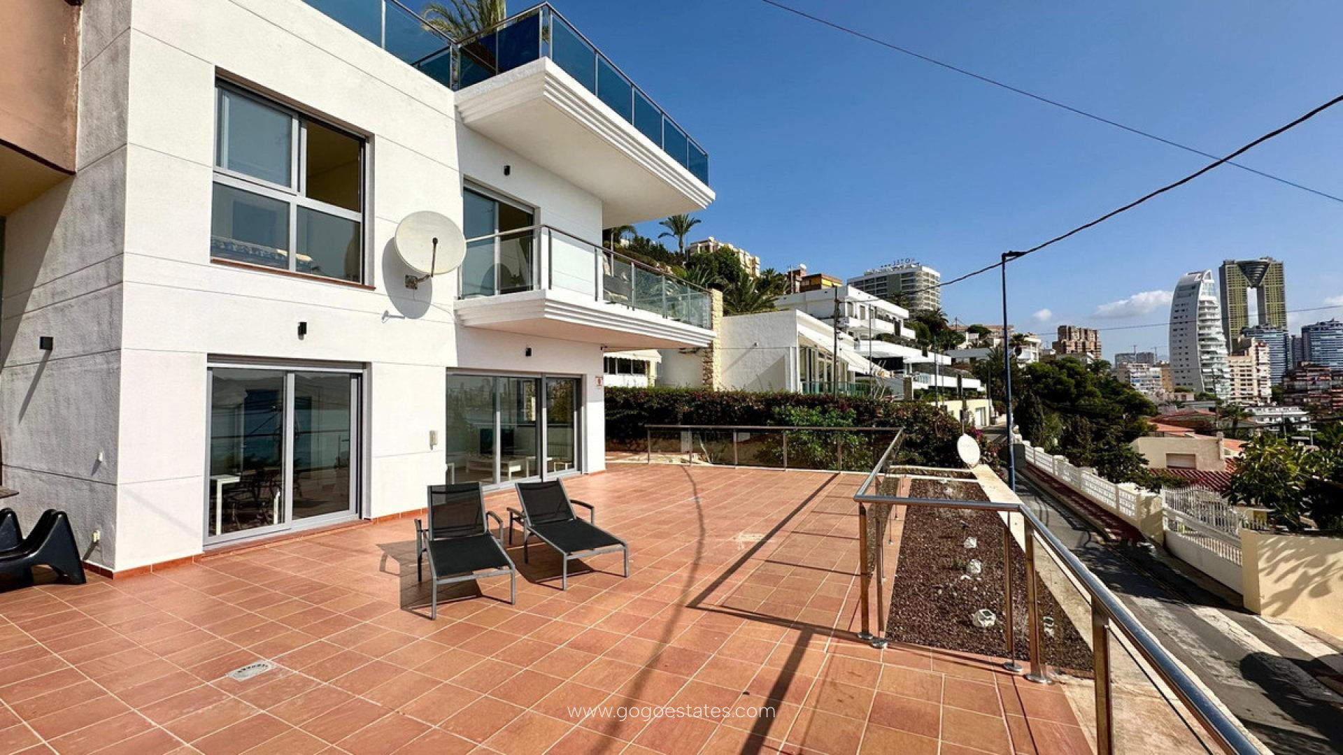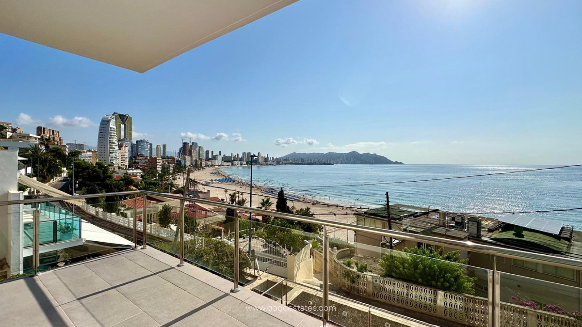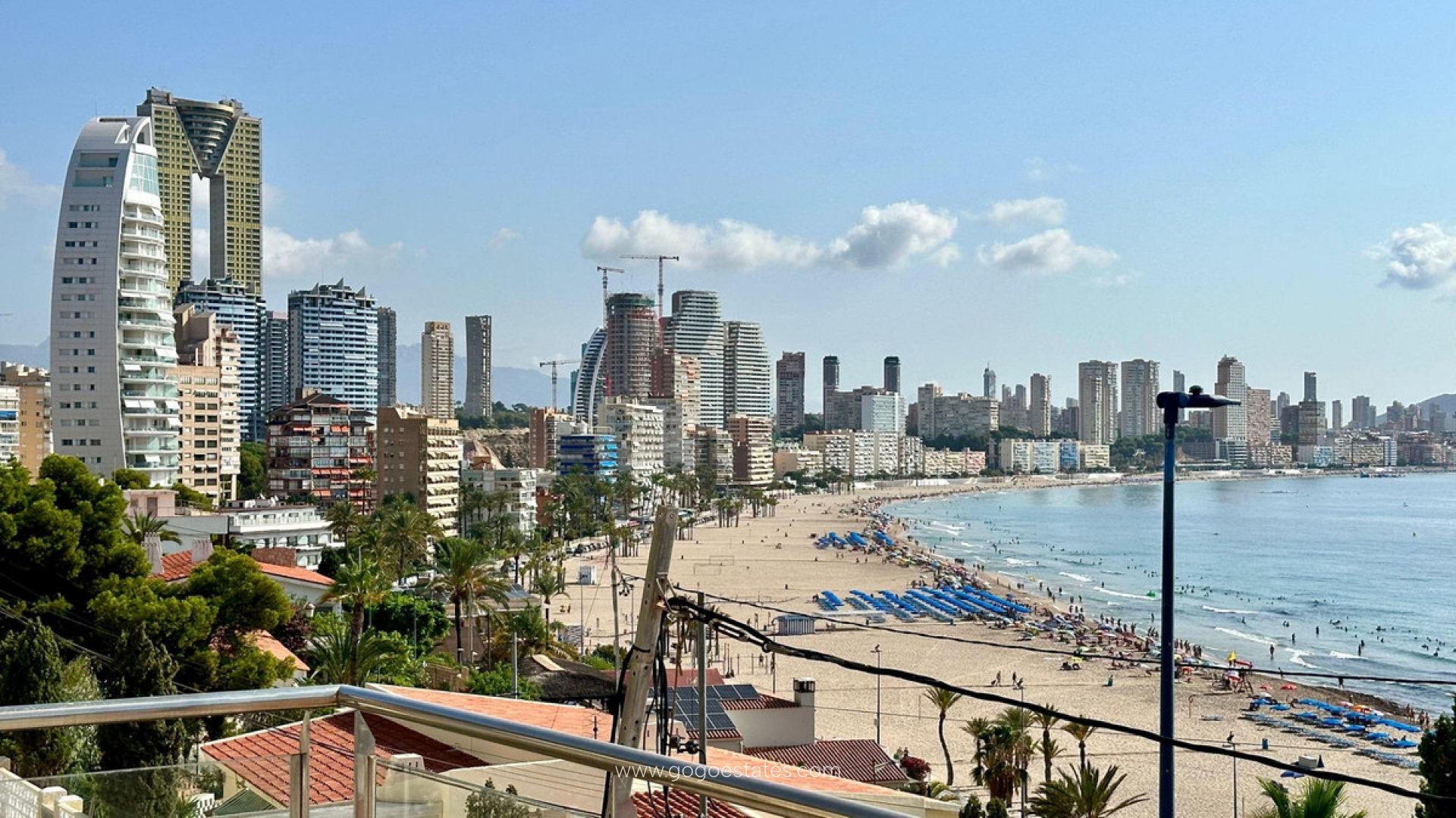 Traumvilla mit Meerblick in Playa de Poniente, Benidorm Tauchen Sie ein in den Luxus und Komfort dieser spektakulären Doppelhaushälfte in privilegierter Lage in der Straße Oviedo, direkt am Strand von Benidorm Poniente. Diese Traumvilla verfügt über exklusive Ausstattungsmerkmale, die sie zu einem wahren Juwel machen. Mit fast 300 Quadratmetern auf zwei Etagen bietet dieses Anwesen drei große Schlafzimmer, zwei Badezimmer, ein Gäste-WC, eine voll ausgestattete Küche und als Highlight eine über 80 Quadratmeter große Terrasse mit Panoramablick auf das Meer, auf der Sie unvergessliche Sonnenuntergänge am Mittelmeer genießen können. Darüber hinaus verfügt das Haus über drei Tiefgaragenstellplätze mit automatischem Tor. Das 280 Quadratmeter große Grundstück bietet die Möglichkeit, einen Swimmingpool und zusätzlichen Platz für ein Gästeapartment zu bauen, was diesem exklusiven Anwesen noch mehr Wert verleiht. Ausgestattet mit Klimaanlage bietet dieses Chalet geräumige und moderne Räume, die jederzeit maximalen Komfort garantieren. Ohne Zweifel eine einzigartige Gelegenheit mit Blick auf das Meer. Benidorm, die Hauptstadt der Costa Blanca, ist bekannt für seine Touristenattraktion und ausgezeichnete Lage. Mit einfachem Zugang zur Autobahn, die den internationalen Flughafen Alicante-Elche sowie andere wichtige Städte wie Alicante und Valencia verbindet, bietet Benidorm einen unvergleichlichen Lebensstil mit milden Wintern, angenehmen Sommern und einer breiten Palette an Dienstleistungen, Freizeit und Restauration. Das Viertel Poniente zeichnet sich durch seine Ruhe und seinen wunderschönen Strand sowie seine kürzlich eingeweihte Promenade aus, die 2011 mit dem spanischen Architekturpreis ausgezeichnet wurde. Mit schnellem Zugang zur Nationalstraße N-332 und der Autobahn A-7 bietet dieses Wohngebiet allen Komfort und alle Dienstleistungen, die Sie brauchen, um das Leben im Paradies zu genießen.