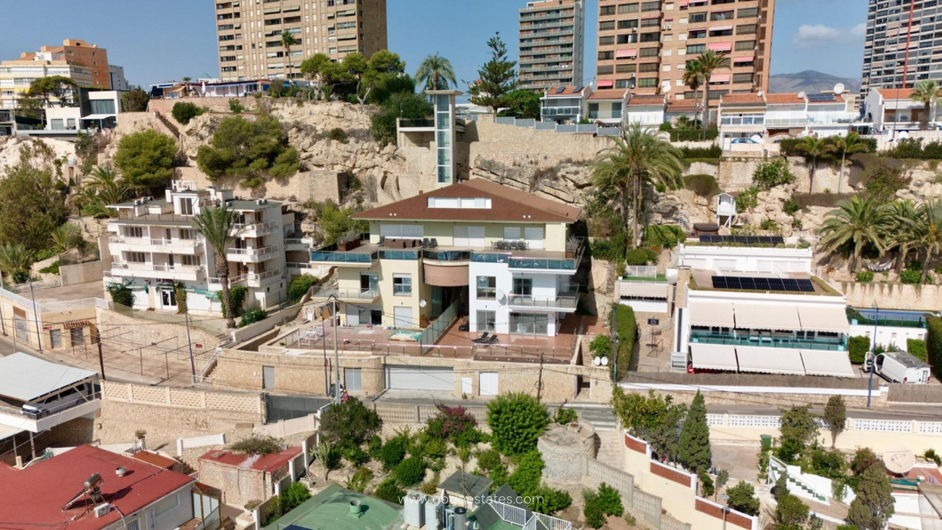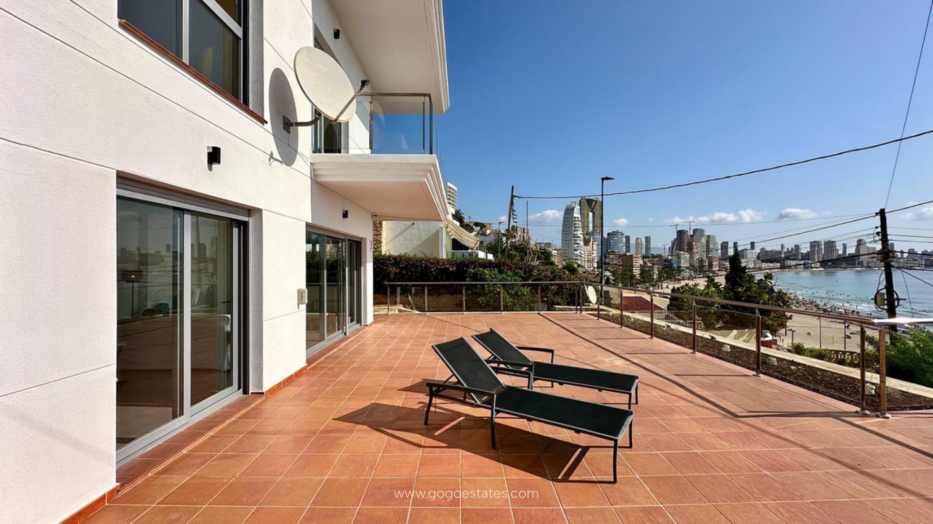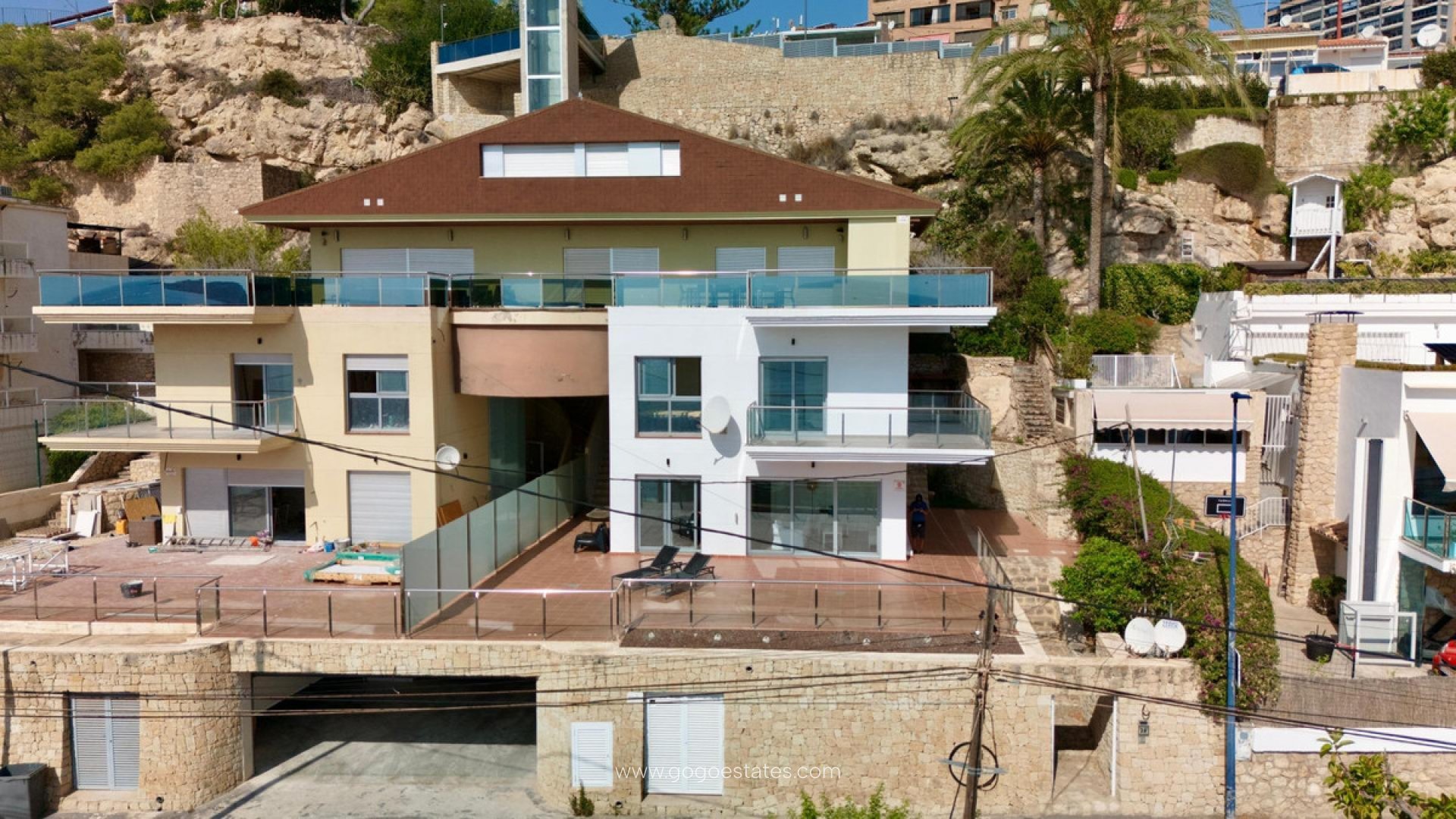 Traumvilla mit Meerblick in Playa de Poniente, Benidorm Tauchen Sie ein in den Luxus und Komfort dieser spektakulären Doppelhaushälfte in privilegierter Lage in der Straße Oviedo, direkt am Strand von Benidorm Poniente. Diese Traumvilla verfügt über exklusive Ausstattungsmerkmale, die sie zu einem wahren Juwel machen. Mit fast 300 Quadratmetern auf zwei Etagen bietet dieses Anwesen drei große Schlafzimmer, zwei Badezimmer, ein Gäste-WC, eine voll ausgestattete Küche und als Highlight eine über 80 Quadratmeter große Terrasse mit Panoramablick auf das Meer, auf der Sie unvergessliche Sonnenuntergänge am Mittelmeer genießen können. Darüber hinaus verfügt das Haus über drei Tiefgaragenstellplätze mit automatischem Tor. Das 280 Quadratmeter große Grundstück bietet die Möglichkeit, einen Swimmingpool und zusätzlichen Platz für ein Gästeapartment zu bauen, was diesem exklusiven Anwesen noch mehr Wert verleiht. Ausgestattet mit Klimaanlage bietet dieses Chalet geräumige und moderne Räume, die jederzeit maximalen Komfort garantieren. Ohne Zweifel eine einzigartige Gelegenheit mit Blick auf das Meer. Benidorm, die Hauptstadt der Costa Blanca, ist bekannt für seine Touristenattraktion und ausgezeichnete Lage. Mit einfachem Zugang zur Autobahn, die den internationalen Flughafen Alicante-Elche sowie andere wichtige Städte wie Alicante und Valencia verbindet, bietet Benidorm einen unvergleichlichen Lebensstil mit milden Wintern, angenehmen Sommern und einer breiten Palette an Dienstleistungen, Freizeit und Restauration. Das Viertel Poniente zeichnet sich durch seine Ruhe und seinen wunderschönen Strand sowie seine kürzlich eingeweihte Promenade aus, die 2011 mit dem spanischen Architekturpreis ausgezeichnet wurde. Mit schnellem Zugang zur Nationalstraße N-332 und der Autobahn A-7 bietet dieses Wohngebiet allen Komfort und alle Dienstleistungen, die Sie brauchen, um das Leben im Paradies zu genießen.