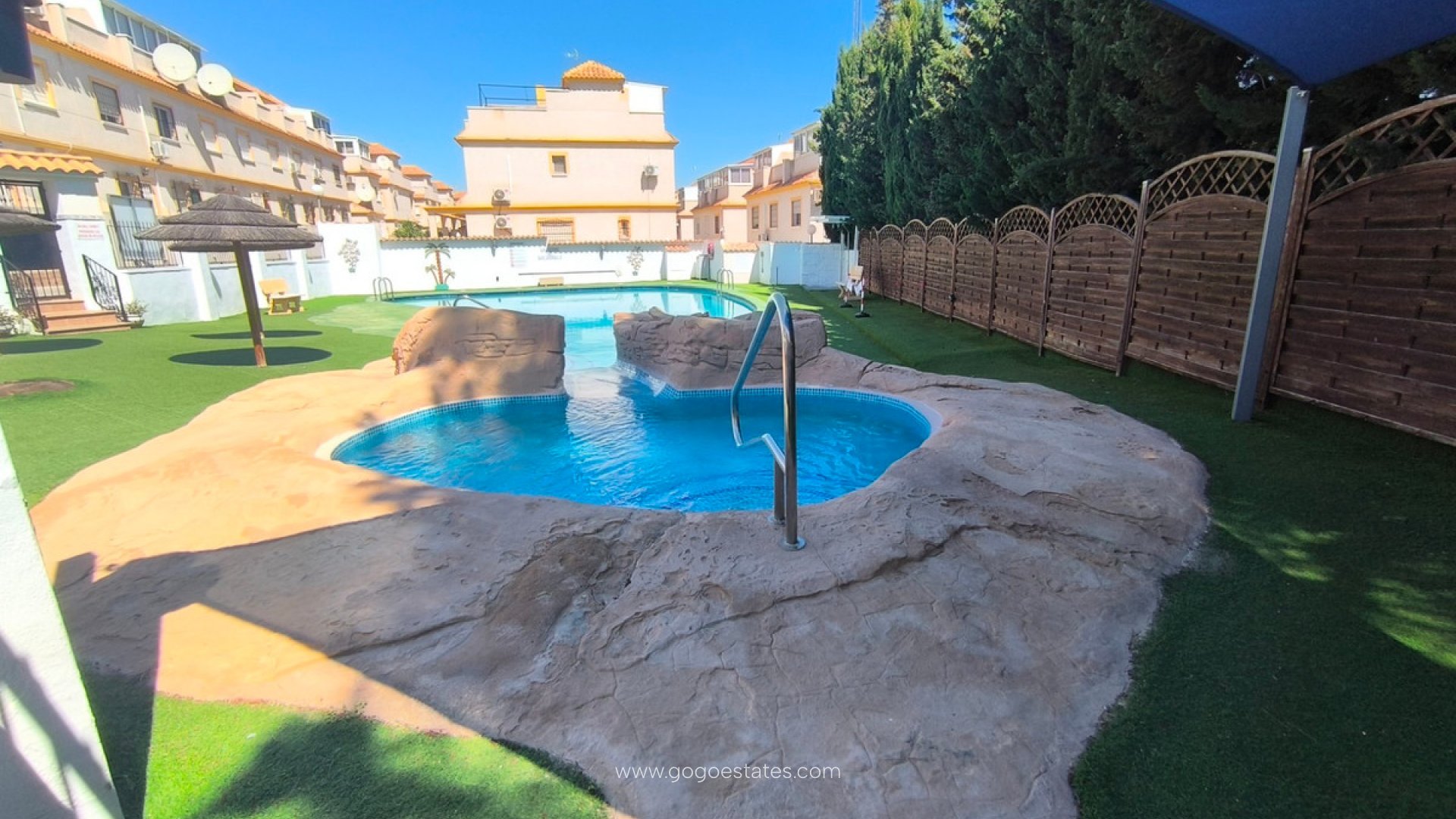 **Charmantes Stadthaus in Montemar, Algorfa zu verkaufen** Entdecken Sie dieses bezaubernde Stadthaus in der begehrten Urbanisation Montemar, Algorfa. Perfekt gelegen, nur einen Steinwurf vom Gemeinschaftspool entfernt, ist dieses Anwesen ein idealer Rückzugsort für den Urlaub oder ein gemütlicher Dauerwohnsitz. Genießen Sie den Komfort, wichtige Annehmlichkeiten wie Geschäfte, Bars und Restaurants fußläufig zu erreichen. Im Inneren erwartet Sie ein geräumiges Wohnzimmer, das nahtlos in den Essbereich übergeht und so eine warme und einladende Atmosphäre schafft. Die gut ausgestattete Küche bietet praktische Funktionen, während eine praktische Garderobe/WC den Komfort zusätzlich erhöht. Im Obergeschoss bieten zwei Doppelschlafzimmer viel Platz zum Entspannen, ergänzt durch ein gefliestes Badezimmer. Die Außenbereiche sind ebenso verlockend! Ein privater Garten dient als Parkplatz abseits der Straße und verfügt über eine erhöhte Terrasse, ideal für einen Morgenkaffee oder ein Essen im Freien unter der Sonne. Zwei Solarien im obersten Stockwerk bieten einen atemberaubenden Ausblick, wobei die vordere Solariumterrasse mit Blick auf den herrlichen Poolbereich ideal ist, um die mediterrane Sonne zu genießen. Mit einfachem Zugang zur Autobahn AP7 und nur einen kurzen Spaziergang vom Algorfa Hotel und dem Geschäftszentrum des La Finca Golf Resorts entfernt, vereint dieses Stadthaus Komfort, Bequemlichkeit und Freizeit. Lassen Sie sich dieses Juwel nicht entgehen – vereinbaren Sie noch heute einen Besichtigungstermin!