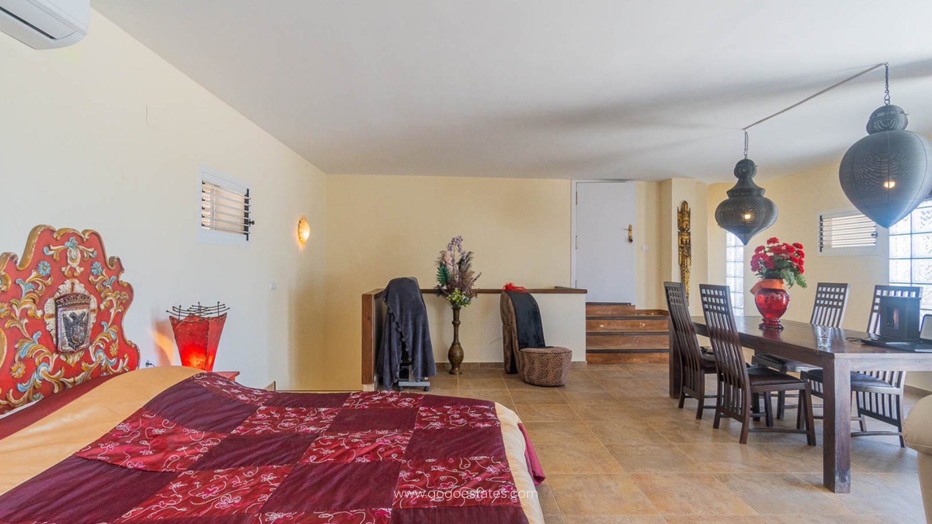 In einer der ruhigsten und angenehmsten Gegenden Alteas, im gepflegten Wohngebiet Jardines de Alhama, liegt dieses gemütliche, traditionelle Haus mit Südausrichtung, das ganztägigen Sonnenschein und viel natürliches Licht in jeder Ecke garantiert. Das Haus ist nur 10 Autominuten von den Stränden Alteas und allen wichtigen Dienstleistungen entfernt: Supermärkten, Restaurants, einem Gesundheitszentrum, Schulen und vielem mehr. Ein perfekter Ort für alle, die Ruhe suchen, ohne auf alltäglichen Komfort zu verzichten. Das Haus erstreckt sich über zwei Etagen und bietet großzügige und gut vernetzte Räume, die sowohl im Winter als auch im Sommer genossen werden können. Direkt am Eingang befindet sich ein Parkplatz. Ein paar Stufen führen hinunter in die Hauptebene, wo ein einladender Flur zu einem geräumigen Wohn-Esszimmer mit Kamin führt, das mit einer offenen Küche verbunden ist, die dem Raum Großzügigkeit und Funktionalität verleiht. Von hier aus gelangt man auf zwei wunderschöne Terrassen: eine überdachte mit Grillplatz, ideal für Familienfeiern, und eine nicht überdachte, perfekt zum Entspannen in der Sonne. Von beiden Terrassen genießen Sie einen unverbauten Blick auf das Tal und das dahinterliegende Meer. Auf derselben Etage befinden sich ein Doppelzimmer, ein komplettes Badezimmer und das Hauptschlafzimmer mit direktem Zugang zur unteren Ebene. Das Erdgeschoss ist als Freizeit- und Entspannungsbereich konzipiert und verfügt über ein geräumiges Wohnzimmer mit Whirlpool und Spielbereich sowie einen spektakulären, 5 x 10 Meter großen, beheizten Innenpool. Ein weiteres Schlafzimmer mit eigenem Bad und die Möglichkeit, eine kleine Küchenzeile hinzuzufügen, machen das Haus zu einer idealen Option für ein separates Gästeapartment oder eine Ferienwohnung. Von dieser Etage aus gelangt man auch in den Außenbereich, wo sich ein pflegeleichter Garten im mediterranen Stil, ein kleiner Abstellraum und der Hauswirtschaftsraum befinden. Diese Immobilie eignet sich ideal sowohl als Dauerwohnsitz als auch für Ferienaufenthalte in einer der schönsten Ecken der Costa Blanca. Altea verbindet Tradition und Kultur perfekt mit einer privilegierten Naturlandschaft und ist gut an Alicante, Valencia und andere Sehenswürdigkeiten der Provinz angebunden. Ein Haus mit Charakter, hell, vielseitig und sofort bezugsfertig.