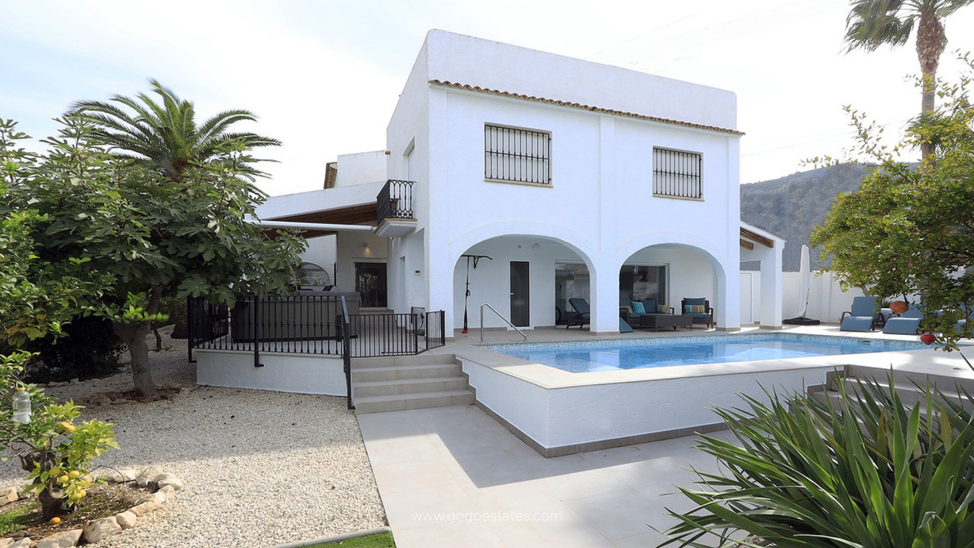 Sehr gepflegtes Einfamilienhaus auf einem Eckgrundstück in einer etablierten, ruhigen Gegend in der Nähe von Annehmlichkeiten und nur 10 Gehminuten vom Strand und der Promenade von Albir und 5 Gehminuten vom Supermarkt und Restaurants entfernt. Das Anwesen wurde 2019 sehr geschmackvoll renoviert und bietet einen weiten, offenen Bergblick. Die weitgehend im mediterranen Stil eingerichtete Villa besteht aus 2 separaten Teilen, die durch eine überdachte Terrasse verbunden sind. Insgesamt gibt es 6 Schlafzimmer, 5 Bäder und 2 Toiletten. Im Außenbereich gibt es einen 30m2 großen, beheizten Swimmingpool, einen Whirlpool, eine große Sonnenterrasse, einen Abstellraum, einen Technikraum und eine Außenküche mit Grill, die mit einem elektrischen Rollladen geschlossen ist. Das umzäunte Grundstück ist über ein Fußgängertor und ein automatisches Autotor zugänglich. Außerdem gibt es einen schönen, gepflegten Garten mit Bewässerungssystem, Obstbäumen und Kunstrasen.