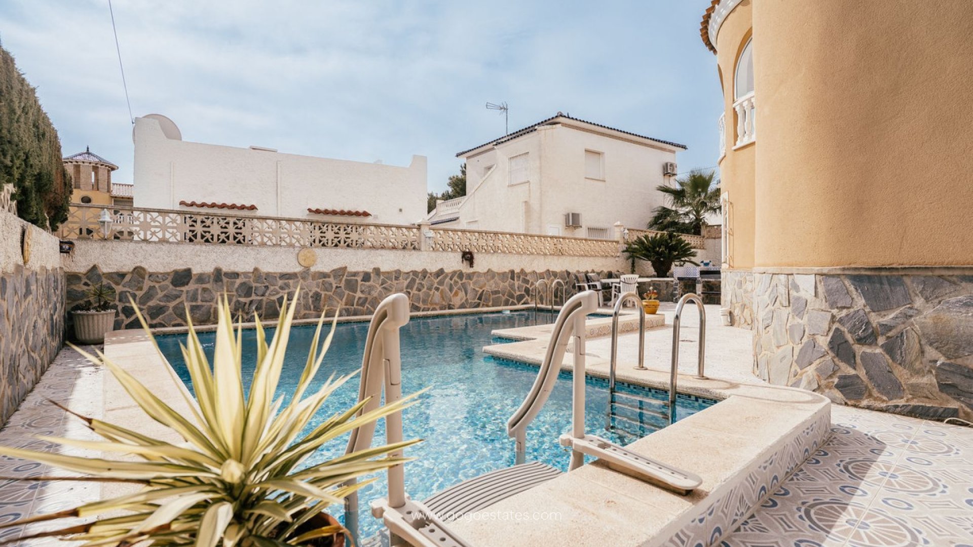 Haus im spanischen Kaschmir-Stil in einem exklusiven Villenviertel. Dieses Haus im spanischen Kaschmir-Stil liegt in einem exklusiven Villenviertel, zwischen drei Golfplätzen und nur 10 Autominuten vom Strand entfernt. Es bietet eine einzigartige Kombination aus Luxus und Ruhe, da es in der Nähe von Dienstleistungszentren und gleichzeitig weit genug entfernt ist, um die Ruhe der Straße zu genießen. Das Haus ist hell und geräumig und verfügt über drei Schlafzimmer und zwei Badezimmer im Erdgeschoss. Im Untergeschoss befinden sich ein großes Spiel-/Wohnzimmer, ein zusätzliches Schlafzimmer und ein Badezimmer. Diese Konfiguration ist ideal für große Familien oder Freundesgruppen, die einen komfortablen Ort zum Entspannen suchen. Das Anwesen verfügt über einen gepflegten Pool, der größer als Standardpools ist, einen Grillplatz und einen Garten – ideal für Sommerabende im Freien. Die gesamte Anlage schafft eine Oase der Ruhe und Entspannung. Zu den herausragendsten Merkmalen dieser Immobilie gehören: - Lage: Zwischen drei Golfplätzen, 6 km vom Strand entfernt, mit Nordost-Ausrichtung. - Raumangebot: Drei Schlafzimmer und zwei Badezimmer im Erdgeschoss, ein weiteres Schlafzimmer und Badezimmer im Erdgeschoss. - Spielzimmer/Wohnzimmer: Ein großzügiger Bereich zum Entspannen und für Unterhaltung. - Pool und Grill: Ein gepflegter Pool- und Grillbereich auf dem Grundstück. - Lage: In der Nähe von Dienstleistungszentren und dennoch ruhig und friedlich. Dieses Haus ist eine ausgezeichnete Wahl für alle, die eine luxuriöse Wohnstätte suchen, sowie für Investoren, die durch Ferienvermietung ein Einkommen erzielen möchten.
