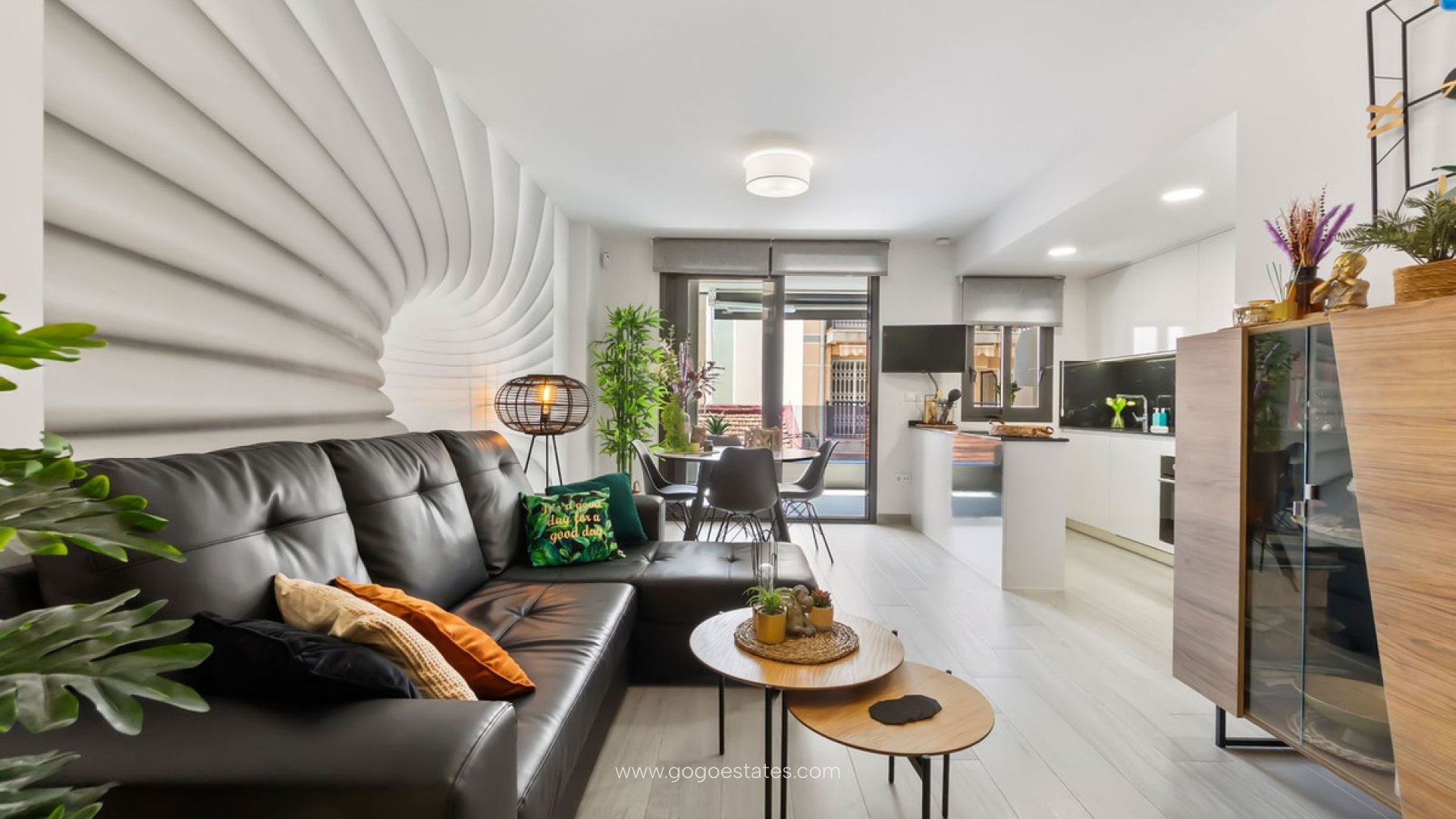 Entdecken Sie Ihr Traumhaus in dieser atemberaubenden Neubauwohnung, die nur wenige Schritte von der berühmten PLAYA DEL CURA im Zentrum von Torrevieja entfernt liegt. Das Anwesen ist 87 m2 bebaut und verfügt über eine schöne helle Terrasse von 16 m2 mit seitlichem Blick auf das Meer. Diese moderne Residenz verfügt über drei geräumige Schlafzimmer, zwei elegante Badezimmer und einen schönen Wohn- / Essbereich mit einer offenen Küche. Die voll ausgestattete Küche bietet Funktionalität und verbessert gleichzeitig die Gesamtästhetik des Wohnraums. Mit einer Westausrichtung können Sie atemberaubende Sonnenuntergänge von Ihrem privaten Balkon oder Ihrer weitläufigen Terrasse aus genießen. Das Anwesen ist auf Komfort und Stil ausgelegt. Das Anwesen verfügt über eine hervorragende Ausstattung wie eine Klimaanlage, um Sie an warmen Sommertagen kühl zu halten, sowie ein umfassendes Alarmsystem, das den Bewohnern Ruhe bietet. Zu den weiteren Highlights gehören der bequeme Zugang über Aufzüge, wunderschön gepflegte Gemeinschaftsbereiche mit einem Gemeinschaftspool, der sich perfekt zum Entspannen an sonnigen Nachmittagen eignet, und Sonnenterrassen, die sich ideal zum Sonnenbaden eignen. Umgeben von üppigen grünen Bäumen und in der Nähe von medizinischen Zentren und Parks ist es familienfreundlich; Nicht zu vergessen die gute Erreichbarkeit von Supermärkten und speziellen Kinderzonen in der Nähe sorgen dafür, dass der Alltag immer zur Hand ist. Diese Lage in erster Meereslinie ermöglicht es, das Leben an der Küste mühelos zu genießen - alles vereint sich zu einer außergewöhnlichen Gelegenheit, die auf anspruchsvolle Käufer wartet, die sowohl luxuriöses Wohnen als auch natürliche Schönheit suchen.