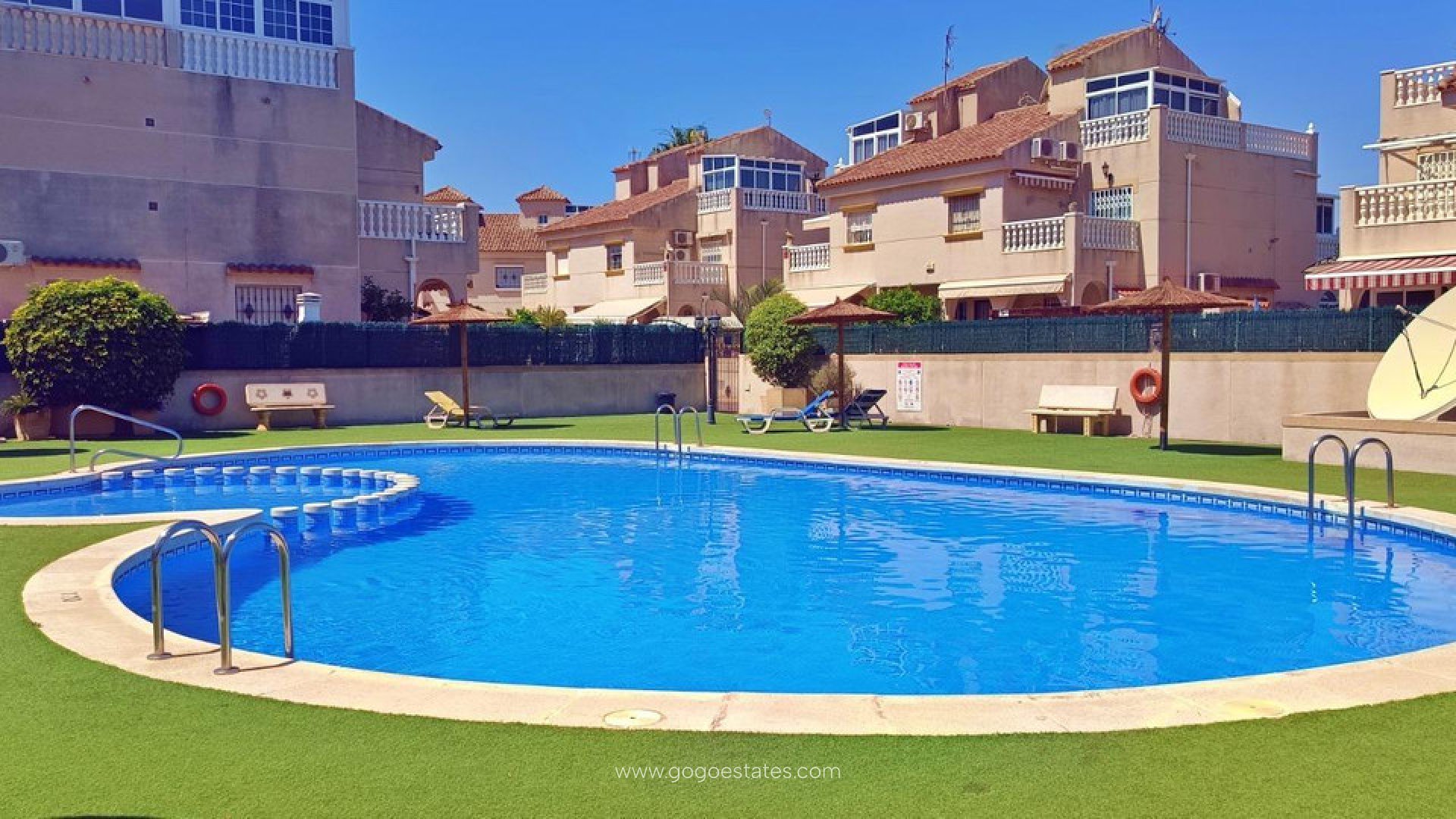 Gemütliche 2-Zimmer-Maisonette neben dem Pool in Torrevieja Wenn Sie durch die Tür dieser gemütlichen Maisonette treten, entdecken Sie ein Zuhause voller Licht und Ecken, die Sie einladen, den Alltag zu genießen. Die auf zwei Etagen verteilten Räume vereinen Komfort und Großzügigkeit mit einer Wärme, die in jedem Detail spürbar ist. Im Erdgeschoss ist ein offenes Wohnzimmer mit Verbindung zum Innenhof verbunden und schafft so eine ideale Umgebung für Besprechungen, ruhige Abende oder einfach, um die frische Luft durch das Haus strömen zu lassen. Die funktionale und gut aufgeteilte Küche ist für den täglichen Gebrauch konzipiert, während das Gäste-WC dem Alltag eine praktische Note verleiht. Über die Treppe gelangen Sie in den Schlafbereich: zwei geräumige, helle und gut aufgeteilte Schlafzimmer. Das Hauptbadezimmer, elegant und komfortabel, befindet sich auf dieser Etage. Aber was diese Immobilie wirklich auszeichnet, sind ihre beiden Solarien, perfekt für Frühstücke im Freien, Lesenachmittage oder einfach, um die Ruhe zu genießen. Die Maisonette verfügt außerdem über einen Abstellraum, ideal, um alles organisiert zu halten, ohne Wohnraum zu opfern. Jeder Winkel dieser Immobilie wurde darauf ausgelegt, Komfort und Lebensqualität in einer Umgebung zu bieten, die zum Verweilen einlädt. LAGE: Torrevieja liegt in der Provinz Alicante (Costa Blanca). Die Stadt ist für ihr mediterranes Klima und ihre Küste bekannt. Nicht zu vergessen sind die Promenaden mit ihren feinen Sandstränden und zahlreichen Restaurants. Außerdem gibt es viele hervorragende Strände wie Playa de los Náufragos, Playa de los Locos und Playa de la Mata. Daher gilt Torrevieja als bemerkenswerter Touristenort, in dem die Umgebung als wichtige Touristenattraktion einen wichtigen Platz einnimmt. Darüber hinaus gibt es hier zahlreiche Einkaufszentren (Habaneras, La Zenia Boulevard), Golfplätze, Sportzentren, Krankenhäuser (wie das Hospital Universitario de Torrevieja) und Flughäfen wie den Flughafen Alicante (35 km entfernt) und den internationalen Flughafen der Region Murcia (43 km entfernt). ENTFERNUNG ZUM MEER: 2200 m GEMEINDE: 250 €. IBI: 170 €. Bei Fragen zögern Sie nicht, uns zu kontaktieren!