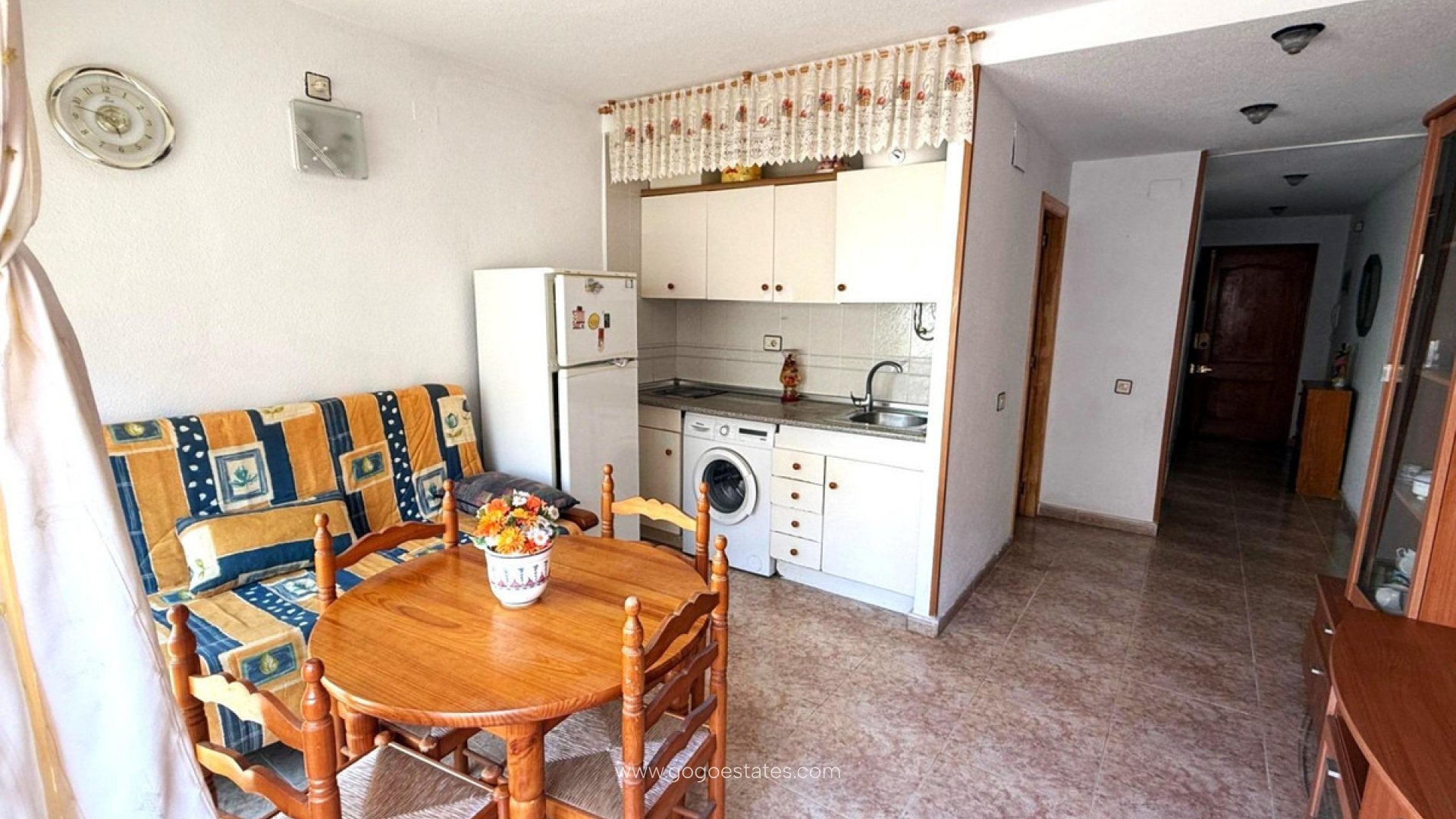 Gemütliche 1-Zimmer-Wohnung mit Terrasse und Pool in Torrevieja. Diese gemütliche 1-Zimmer-Wohnung mit Einbauschrank bietet dank ihrer Südausrichtung, die ganztägig Sonne garantiert, einen funktionalen und lichtdurchfluteten Raum. Sie verfügt über ein komplettes Badezimmer, eine schöne Terrasse, auf der Sie das angenehme mediterrane Klima genießen können, und ein helles Wohnzimmer, das zum Entspannen einlädt. Ein zusätzlicher Pluspunkt ist ein 9 m² großer privater Abstellraum, ideal für Fahrräder, Strandausrüstung oder was auch immer Sie benötigen. Das Gebäude verfügt außerdem über einen Gemeinschaftspool, der an den heißesten Tagen für Abkühlung sorgt. Obwohl die Immobilie etwas renovierungsbedürftig ist, bietet sie eine großartige Gelegenheit, sie nach Ihrem eigenen Stil zu gestalten und sie optimal als Ferienwohnung oder Zweitwohnsitz zu nutzen. LAGE: Torrevieja liegt in der Provinz Alicante (Costa Blanca). Die Stadt ist berühmt für ihr mediterranes Klima und ihre Küste. Nicht zu vergessen sind die Promenaden mit ihren feinen Sandstränden und zahlreichen Restaurants. Außerdem gibt es viele ausgezeichnete Strände wie Playa de los Náufragos, Playa de los Locos und Playa de la Mata. Daher gilt es als bemerkenswerter Touristenort, in dem die Umgebung als wichtige Touristenattraktion einen wichtigen Platz einnimmt. Darüber hinaus finden wir zahlreiche Einkaufszentren (Habaneras, La Zenia Boulevard), Golfplätze, Sportzentren, Krankenhäuser (wie das Hospital Universitario de Torrevieja) und Flughäfen wie den Flughafen Alicante (35 km entfernt) und den internationalen Flughafen der Region Murcia (43 km entfernt). ENTFERNUNG ZUM MEER: 400 m. GEMEINDE: 588 €. IBI: 140 €. Bei Fragen zögern Sie nicht, uns zu kontaktieren!
