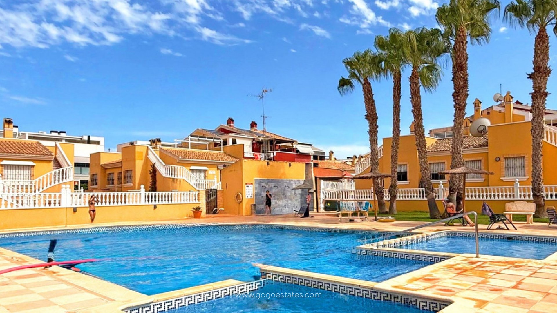 Dieses gepflegte Reihenhaus mit 3 Schlafzimmern und 2 Badezimmern befindet sich in einer ruhigen Wohngegend von Torrevieja, in der Nähe aller Annehmlichkeiten wie dem Habaneras Einkaufszentrum, Restaurants und dem Stadtzentrum. Das Haus verfügt über eine Terrasse im Erdgeschoss und eine private Dachterrasse mit herrlichem Blick auf den berühmten rosa Salzsee. Klimaanlage in allen Räumen sorgt für ganzjährigen Komfort. Eine gepflegte Gemeinschaftspoolanlage steht ebenfalls zur Verfügung. Ideal als Dauerwohnsitz, Ferienhaus oder zur Vermietung. Wichtige Merkmale: 3 Schlafzimmer, 2 Badezimmer Dachterrasse mit Seeblick Terrasse im Erdgeschoss Ruhige, dennoch zentrale Lage Nahe Habaneras & Stadtzentrum Gemeinschaftspool Klimaanlage in allen Räumen