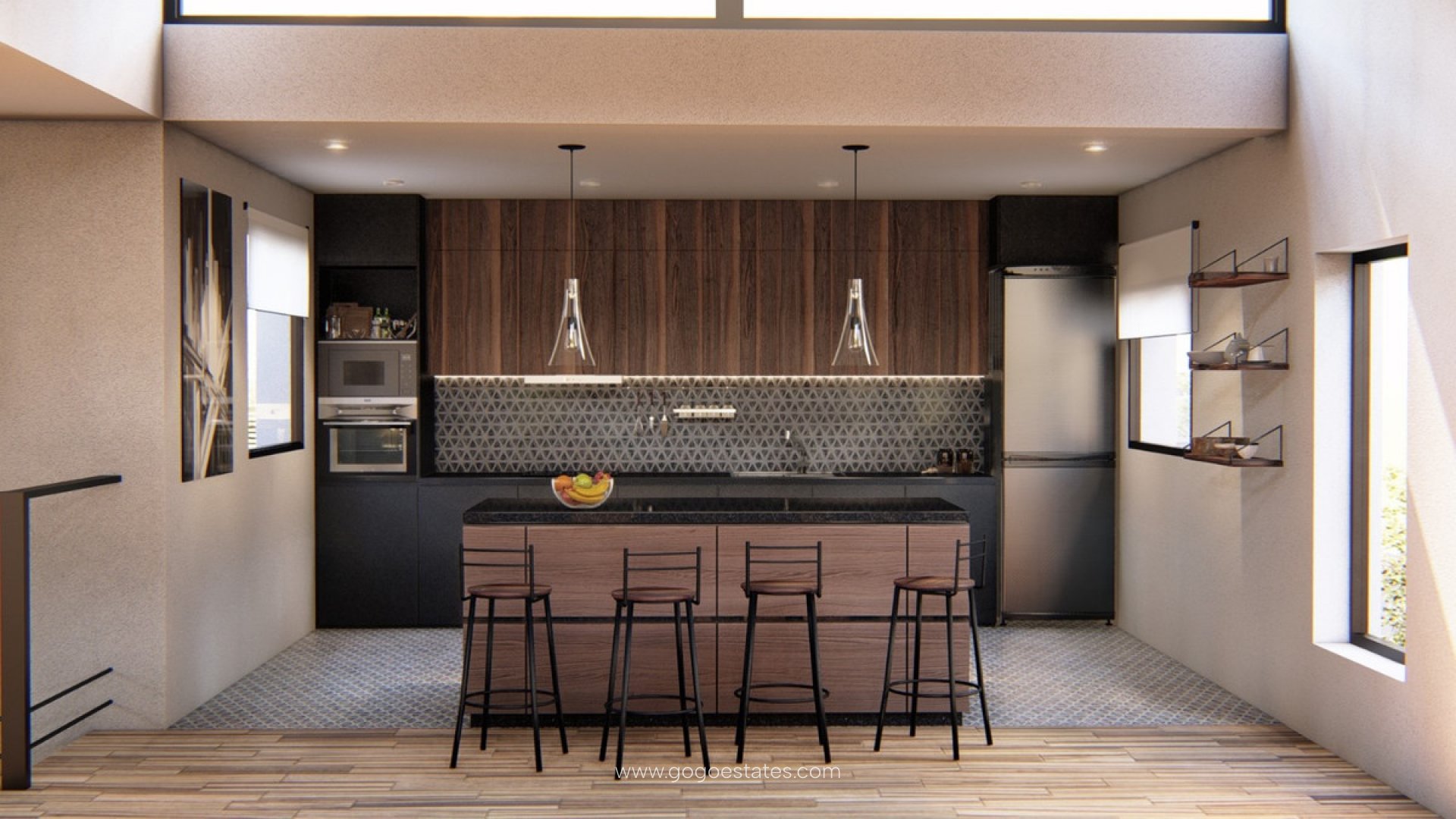 Modernes Haus mit 4 Schlafzimmern in der Urbanisation Las Kalendas, Fortuna. Entdecken Sie modernes Wohnen in diesem neu erbauten Haus mit 4 Schlafzimmern und 4 Bädern in der begehrten Urbanisation Las Kalendas in Fortuna, Murcia. Das Haus ist auf Komfort und Bequemlichkeit ausgelegt und verfügt über ein geräumiges Wohnzimmer mit offener Küche, die komplett mit hochwertigen Geräten ausgestattet ist. Genießen Sie nahtloses Wohnen im Innen- und Außenbereich mit einem privaten Innenhof, der von den Schlafzimmern aus zugänglich ist, und einer überdachten Veranda, die vom Wohnzimmer und einem der Schlafzimmer aus zugänglich ist. Ein 6 x 3 Meter großer Swimmingpool ist das Herzstück des Vorgartens und lädt an sonnigen Tagen zum Entspannen ein. Zu diesem 180 m² großen Haus gehört eine Garage mit Stromanschluss zum Laden von Elektrofahrzeugen. Heizung und Klimaanlage sind im gesamten Haus über Kanalsysteme für ganzjährigen Komfort vorgesehen, und elektrische Jalousien verleihen einen zusätzlichen Hauch von modernem Luxus. Küche und Badezimmer sind komplett möbliert. Über die Gegend: Las Kalendas ist eine erstklassige Wohngegend in Fortuna, bekannt für ihre Nähe zu den berühmten Fortuna-Thermen, einem beliebten Ziel für Wellnesstourismus. Die Urbanisation zeichnet sich durch gepflegte Straßen, Grünflächen und eine gute Anbindung an lokale Annehmlichkeiten aus und ist somit eine hervorragende Wahl für Familien und Rentner. Fortuna selbst bietet eine Vielzahl von Geschäften, Restaurants und wichtigen Dienstleistungen und verbindet den Charme einer Kleinstadt mit den Annehmlichkeiten des modernen Lebens. Die umliegende Landschaft ist übersät mit Naturparks und Wanderwegen und bietet eine ruhige Umgebung, während die Stadt Murcia nur eine kurze Autofahrt entfernt ist. Wir verfügen über ein großes Immobilienportfolio an der Costa Blanca und der Costa Cálida und sind spezialisiert auf Landhäuser, Villen, Fincas, Baugrundstücke sowie Design- und Bauoptionen in den Regionen Alicante und Murcia, mit besonderem Schwerpunkt auf Elda, Monovar, Pinoso, Sax, Villena, Aspe, Fortuna, Albacete und vielen weiteren umliegenden Gebieten. Wir bestehen seit 2004 und verfügen über jahrzehntelange Erfahrung in unserem Team, die wir einsetzen, um Ihnen zu helfen, Ihr neues Traumhaus zu finden und zu sichern. Wir helfen Ihnen bei jedem Schritt, um sicherzustellen, dass Ihr Kauf in Spanien sicher und problemlos verläuft. Wir verkaufen Ihnen keine Immobilie, sondern helfen Ihnen, Ihren Traum zu verwirklichen und das Richtige für Sie zu finden. Bei uns sind Sie in den besten Händen. Kontaktieren Sie uns jetzt für ein unverbindliches Gespräch darüber, wie auch Sie Ihre Träume verwirklichen können.