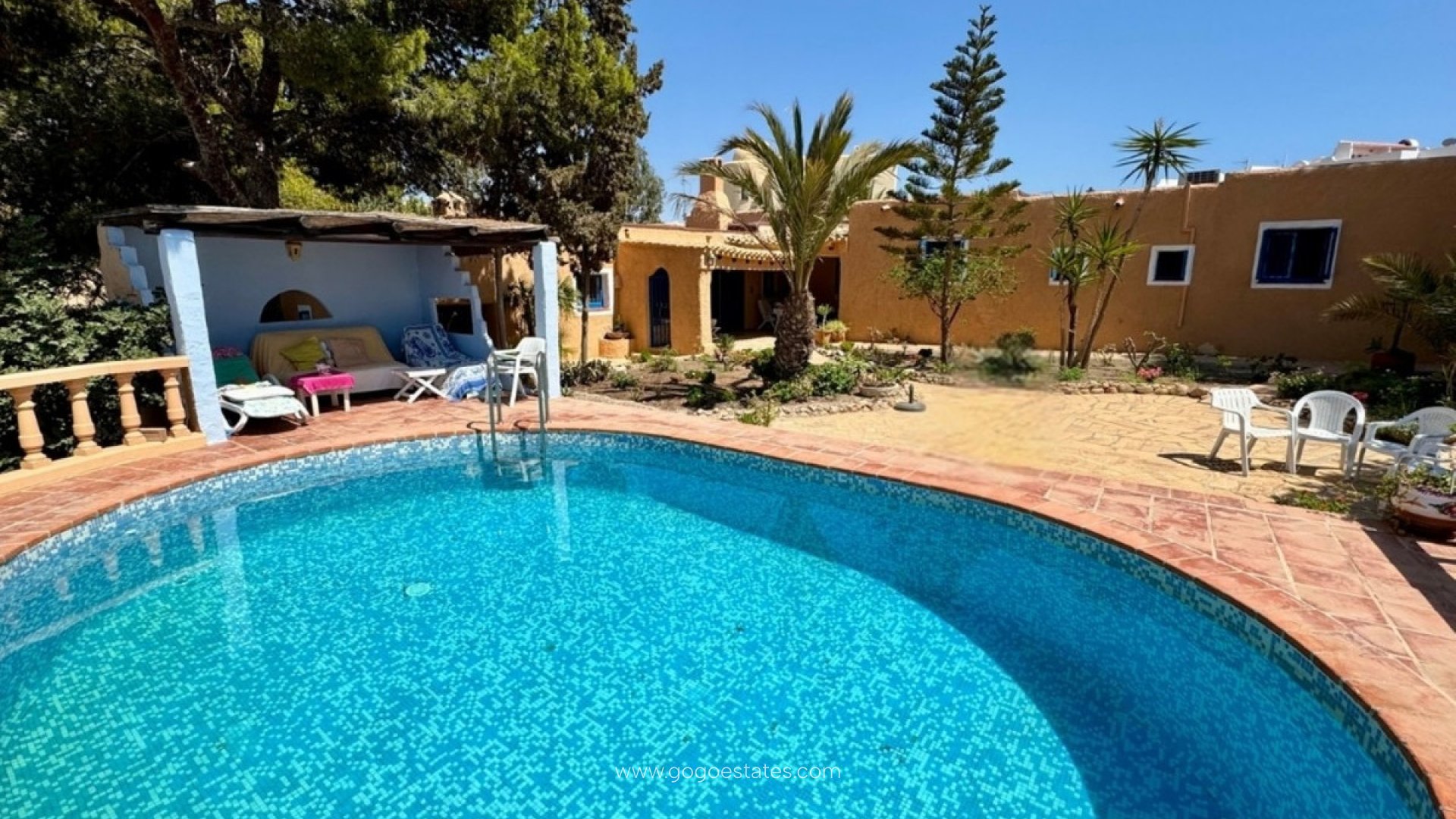 Ein wahres Stück spanischer Tradition im Herzen der sehr begehrten Küstenstadt Mojacar. Dieses einzigartige Anwesen mit vier Schlafzimmern und vier Bädern ist eines der wenigen verbliebenen Cortijos im Küstenresort, ein großes Einfamilienhaus, das die wahre Essenz eines traditionellen spanischen Hauses einfängt und gleichzeitig den Komfort bietet, alle Annehmlichkeiten und den Strand in der Nähe zu haben. Das Haus befindet sich auf einem eigenen 1864 m2 großen privaten Grundstück und bietet Privatsphäre und Ruhe mit schönen Gärten, Terrassen und erhöhtem Blick auf die Mojacar-Berge und das Mittelmeer. Das Anwesen kann über mehrere Punkte betreten werden, z. B. die private Garage, das Fußgängergartentor, seitliche Doppeltore, die zu Parkplätzen abseits der Straße führen, oder durch die Veranda des Haupteingangs. Die Eingangsterrasse ist komplett eingezäunt und sicher und bietet einen schattigen Bereich, um der Mittagshitze zu entfliehen. Intern mangelt es diesem Anwesen weder an Charakter noch an Charme, mit traditionellen Böden, Fensterläden im Küstenstil und Holzbalkendecken. Wenn Sie über den Hauptflur mit einem WC direkt zu Ihrer Rechten eintreten, führt eine Treppe hinunter in das offene Wohn- und Esszimmer. Ein luftiger Raum mit hohen Decken, offenem Kamin und Terrassentüren, die sich zum Garten hin öffnen. Vom Wohnzimmer aus gelangt man in ein großes potenzielles Schlafzimmer, das derzeit als Bastelraum genutzt wird, die separate Familienküche und der Frühstücksraum bieten direkten Zugang zu einer Seitenterrasse mit Sitzgelegenheiten. Entlang des Hauptflurs finden Sie ein Familienduschbad, ein Doppelzimmer mit Einbauschränken und ein Hauptschlafzimmer, ebenfalls mit Einbauschränken, ein eigenes Bad und eine Tür zu den Außenterrassen. Dieses unglaubliche Anwesen bietet auch ein fantastisches Geschäftspotenzial, da es eine voll ausgestattete Wohnung mit 1 Schlafzimmer, 1 Badezimmer, Küche bietet, die derzeit für Mieteinnahmen genutzt wird. Eine angrenzende Tür bedeutet, dass Sie die Wohnung in das Haupthaus integrieren oder sie von allen Gästen getrennt und privat halten können. Die Außenbereiche enttäuschen sicherlich nicht, von einer privaten Dachterrasse bis hin zu schattigen Terrassen, auf denen Sie sich entspannen und den atemberaubenden Blick auf die Küste genießen können, einem privaten Swimmingpool und Gärten mit altem Baumbestand. Eine außergewöhnliche Immobilie, die Sie sehen müssen! * 4 Schlafzimmer * 3.5 Bäder * Wohnfläche 327 m² * Grundstückfläche 1,864 m² * Erdgeschoss * Privatem Pool * Leitungswasser * Stromnetz * Telefon Anschlüss möglich * Internet Anschlüss möglich * Möbel verhandelbaar * Klimaanlage * Private Terrasse * Dachsolarium * Garage * 1 Minuten Fahrt zum Strand * 2 Minuten zu den Geschäften * IBI Grundsteuer: 1.173,00€ pro Jahr * Müllgebühren: 158,00€ pro Jahr