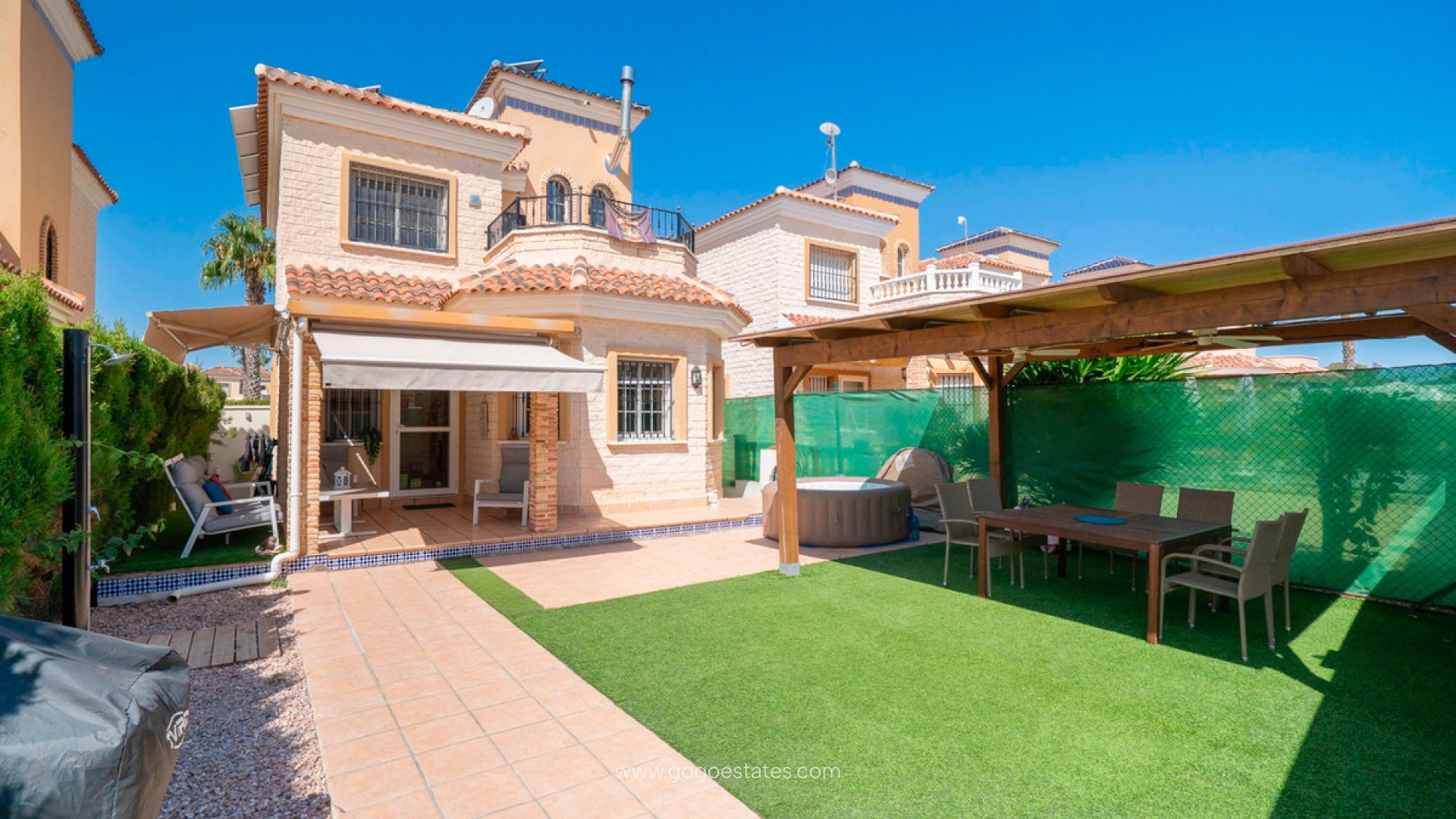 Wir präsentieren Ihnen diese wunderschöne Doppelhaushälfte, komplett renoviert und in ausgezeichnetem Zustand. Sie ist ideal für alle, die Komfort, Modernität und Nachhaltigkeit suchen. Das Haus erstreckt sich über zwei Etagen plus einen geräumigen Keller. Im Erdgeschoss befinden sich ein helles Wohnzimmer mit einem Holzkamin, der für Wärme und eine gemütliche Atmosphäre sorgt, eine voll ausgestattete separate Küche mit Garten, ein komplettes Badezimmer und ein Schlafzimmer. Von dieser Etage aus gelangt man auch in den Keller, der über zwei Eingänge verfügt – einen Innen- und einen Außeneingang. Der Keller ist mit Fenstern ausgestattet, die für Tageslicht und Belüftung sorgen. Er umfasst einen Waschraum, einen Abstellraum, einen Hauswirtschaftsraum, ein Büro, ein kleines Wohnzimmer und eine zusätzliche Küche. Wie das gesamte Haus ist auch der Keller klimatisiert, was ihn zu einem komfortablen und funktionalen Raum macht, der sich ideal für die Unterhaltung von Gästen eignet. Im Obergeschoss befinden sich zwei Schlafzimmer, ein Badezimmer und eine Terrasse, die zum Genießen der Natur einlädt. Das Haus besticht durch viel Tageslicht und bietet Sicherheit und Komfort dank Alarmanlage, Überwachungskameras und moderner Hausautomation. So können Sie Jalousien, Klimaanlage, Beleuchtung, Eingangstür, Markisen und mehr bequem per Mobiltelefon steuern. Das Haus ist von außen umgeben. An der Vorderseite befindet sich eine gemütliche Holzpergola, die zu sonnengeschützten Mahlzeiten und Familientreffen einlädt. Das Anwesen verfügt außerdem über eine Hintertür, die direkt zur Straße führt, wo sich der Eingang zum Gemeinschaftspool befindet. So haben Sie bequemen und schnellen Zugang zum Gemeinschaftsbereich. Das Haus ist effizient und zukunftsorientiert konzipiert und verfügt über Solarmodule mit Batteriespeicher, die den Energieverbrauch des Hauses decken, sowie über eine Ladestation für Elektroautos. Ein modernes, nachhaltiges und gemütliches Zuhause – bezugsfertig.