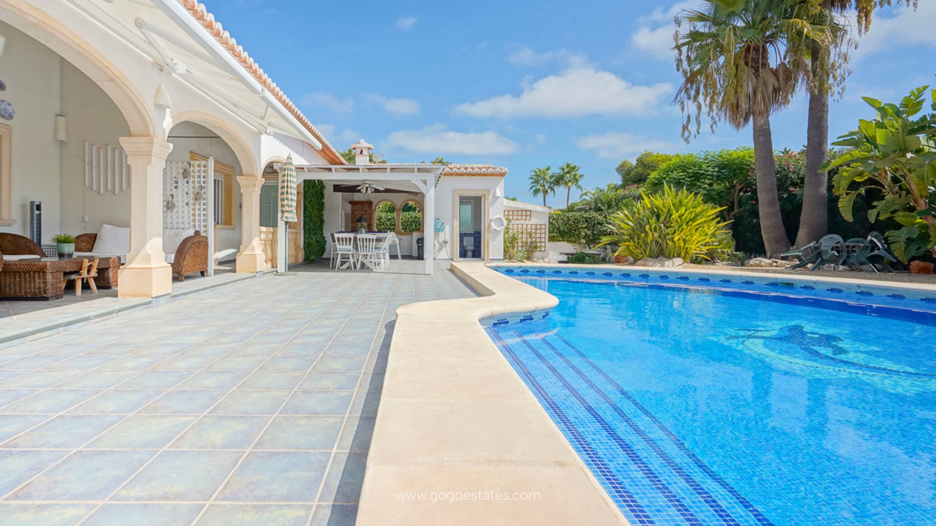 Traditionelle Villa in Costa Nova zu verkaufen Diese ebenerdige Villa mit 3 Schlafzimmern befindet sich auf einem flachen Grundstück im charmanten Costa Nova, nur wenige Gehminuten von verschiedenen Restaurants, gemütlichen Bars und Sportanlagen entfernt. Über einige Stufen gelangt man zur Veranda an der Eingangstür und betritt eine geräumige Diele. Von der Diele aus gelangt man in die geräumige, offene Küche mit angrenzendem Essbereich. Neben dem Essbereich befindet sich ein geräumiges Wohnzimmer mit Kamin. Darüber hinaus verfügt die Villa über ein Hauptschlafzimmer mit eigenem Bad und zwei Schlafzimmer mit einem gemeinsamen Bad. Alle Schlafzimmer sind mit Einbauschränken, Rollläden und Klimaanlage ausgestattet. Darüber hinaus verfügt die Villa über Fußbodenheizung und einen Kamin. Im Außenbereich gibt es eine großzügige überdachte Terrasse sowohl auf der Süd- als auch auf der Westseite der Villa. Außerdem gibt es einen großen Swimmingpool und eine Außenküche. Die Villa ist von einem ausgewachsenen mediterranen Garten umgeben und verfügt über mehrere Parkplätze, einen Carport und einen Abstellraum. Costa Nova ist eine ruhige Wohnsiedlung im Süden von Jávea, bekannt für ihre unmittelbare Lage zu einigen der schönsten und unberührtesten Buchten der Costa Blanca. Nur wenige Autominuten oder sogar zu Fuß erreichbar sind Cala Portitxol (La Barraca), Cala Ambolo, Cala Granadella und Cala Sardinera. Diese kleinen, idyllischen Strände zeichnen sich durch klares blaues Wasser, zerklüftete Klippen und eine natürliche Umgebung aus, die sich perfekt zum Schwimmen, Schnorcheln oder Kajakfahren eignet. Eine wunderschöne Villa in bester Lage. Vereinbaren Sie jetzt einen Besichtigungstermin.