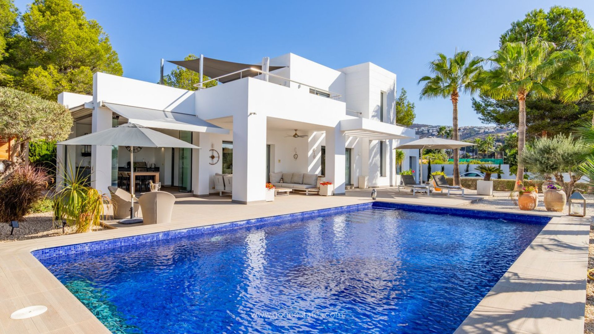 In einer ruhigen Straße der begehrten Gegend von Sol Park in Moraira gibt es eine Villa, die nicht nur spektakulär aussieht… sie fühlt sich vom ersten Moment an wie ein Zuhause an. Es ist eines dieser Häuser, in dem modernes Design mit warmem, alltäglichem Flair verschmilzt. Wo die großen Fenster fast den ganzen Tag Sonnenlicht hereinlassen und das Wohnzimmer zu dem Treffpunkt wird, wo die Kinder auf dem Boden spielen, während du in der offenen Küche etwas zubereitest, ohne auch nur einen Moment von dem, was um dich herum passiert, zu verpassen. Mit drei Schlafzimmern (eins davon en suite im Erdgeschoss) wurde dieses Haus so gestaltet, dass es sich dem Tempo einer aktiven Familie anpassen kann, der Bequemlichkeit eines Paares, das Platz wünscht, oder der Erholung derjenigen, die einen Ferienort nahe dem Meer suchen. Seit seiner Erbauung im Jahr 2014 wurde es liebevoll gepflegt, was sich in den hochwertigen Materialien, der Fußbodenheizung, der dezentrale Klimaanlage und sogar in den Solarpanels zeigt, die der Schönheit Effizienz hinzufügen. Aber was wirklich verzaubert, befindet sich im Freien: ein tiefblaues Schwimmbad, das dazu einlädt, ohne auf die Uhr zu schauen, hineinzuspringen, eine Sommerküche, die bereit ist, um improvisierte Abendessen mit Freunden zu veranstalten, und eine Terrasse, wo die Abende sich mit Lachen, Weingläsern und Sternenhimmel ziehen. Hier ist das Mittelmeer nicht nur Landschaft. Es ist Lebensstil. Und du kannst ihn leben.