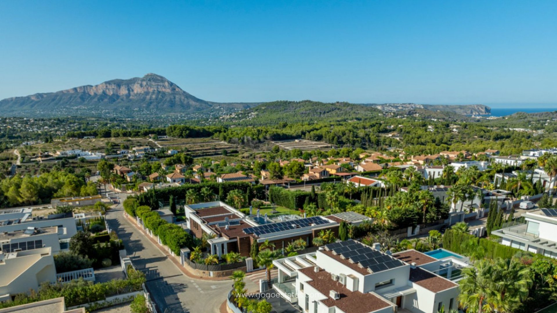 Spektakuläre moderne Villa zum Verkauf in JaveaDiese beeindruckende moderne Villa befindet sich in der prestigeträchtigen Wohngegend Mount Olimpio in Javea. Sie vereint sauberes architektonisches Design mit Komfort und nahtlosem Innen-Außen-Leben. Die Villa bietet atemberaubende Panoramablicke auf Benitachell, den Montgó und Javea. Die Hauptetage verfügt über einen hellen, offenen Grundriss mit einer modernen Küche, Wohn- und Essbereichen, die sich über große Glastüren direkt zur Poolterrasse öffnen und dadurch viel Tageslicht hereinlassen. Auf dieser Ebene gibt es auch drei geräumige Schlafzimmer, alle mit eigenen Badezimmern und einem Garderobenraum. Der Garten umfasst einen privaten Unterhaltungsbereich mit Grill, umgeben von gepflegten Anlageflächen, die Privatsphäre garantieren. In der unteren Etage hat die Villa zwei weitere Schlafzimmer, ein Duschbad und ein Wohnzimmer, einen vielseitigen Raum, der ideal für größere Familien und Gäste ist. Darüber hinaus gibt es ein Arbeitszimmer, ein Kino und einen großen Hauswirtschaftsraum, zentrale Klimaanlage, Parkplätze für 2 Autos sowie offene und überdachte Terrassen. Diese Immobilie ist sowohl für Entspannung als auch für Unterhaltung konzipiert und bietet stilvolles Wohnen in einem der begehrtesten Viertel von Javea mit ähnlichen Häusern im gleichen Stil.
