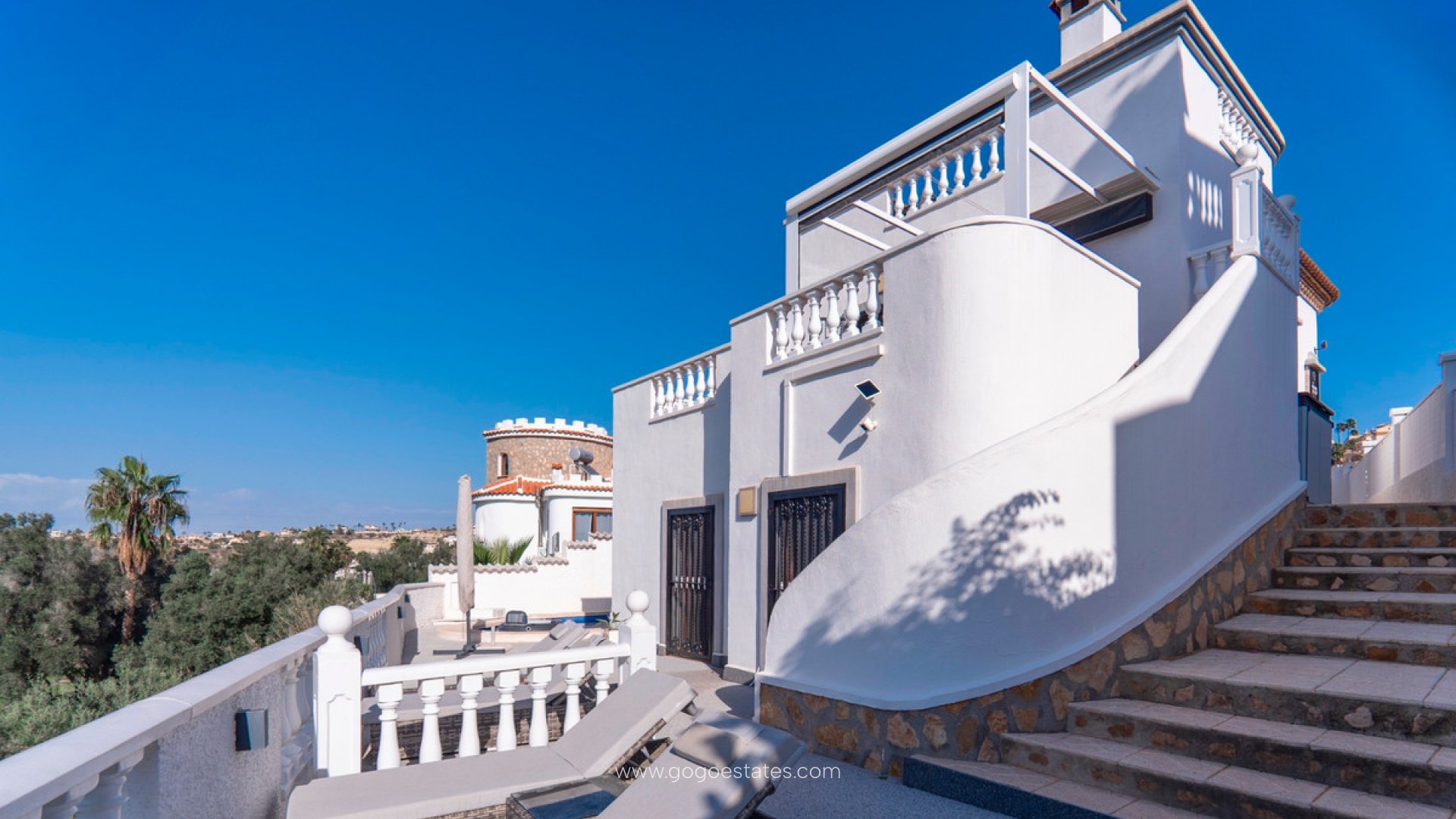 Freistehende Villa am Golfplatz mit wunderschönem Panoramablick in Ciudad Quesada Diese makellos gepflegte , freistehende Villa mit drei Schlafzimmern liegt in einer ruhigen Sackgasse mit Blick auf die Grüns des Golfplatzes La Marquesa und bietet eine einzigartige Kombination aus Komfort, Stil und Privatsphäre. Das Anwesen ist für entspanntes Wohnen im Innen- und Außenbereich konzipiert und verfügt über großzügige Terrassen, ein Solarium auf dem Dach und einen atemberaubenden Ausblick von fast jedem Zimmer – perfekt, um das Leben an der Costa Blanca in vollen Zügen zu genießen. Hauptmerkmale 3 Schlafzimmer | 2 Badezimmer | Freistehende Villa Nur wenige Gehminuten von allen Annehmlichkeiten entfernt. Offenes Wohn- und Esszimmer mit Blick auf den Golfplatz Private Dachterrasse mit Sitzbereich Master-Suite mit eigenem Bad mit Dusche und Terrasse Überdachter Stellplatz in ruhiger Lage in einer Sackgasse Separates Erdgeschoss mit Gästezugang Beschreibung der Immobilie Diese elegante, freistehende Villa in Ciudad Quesada bietet einen Panoramablick auf den Golfplatz La Marquesa und liegt in einer ruhigen Gegend in der Nähe lokaler Annehmlichkeiten. Der helle, offene Wohnbereich vereint Wohnzimmer, Esszimmer und Küche mit raumhohen Fenstern und Blick auf den Golfplatz. Pelletofen, Kamin und Klimaanlage sorgen für ganzjährigen Komfort. Vom Wohnzimmer aus gelangen Sie auf die Terrasse mit Blick auf das siebte Loch oder über die Außentreppe auf die Dachterrasse mit Panoramablick und ganztägiger Sonne. Das Erdgeschoss verfügt über ein Hauptschlafzimmer mit Einbauschränken und eigenem Bad. Im Erdgeschoss befinden sich zwei Doppelschlafzimmer mit gemeinsamer Terrasse und Familienbadezimmer, alle mit Blick auf den Golfplatz. Eines der Schlafzimmer verfügt über einen angrenzenden Raum (derzeit als Küche genutzt), der sich ideal in ein eigenes Bad umwandeln lässt. Mit separatem Innen- und Außenzugang eignet sich diese Etage ideal für Gäste oder eine große Familie. Ein zusätzlicher Keller neben dem Pool bietet ein vielseitiges Spielzimmer, ideal zum Entspannen, wenn Sie nicht gerade den Pool oder die Aussicht genießen. Lage und Lebensstil Dieses Anwesen befindet sich im begehrten Golfgebiet La Marquesa von Ciudad Quesada und bietet einfachen Zugang zu allen Annehmlichkeiten. Lokale Geschäfte, Supermärkte, Cafés und Restaurants sind zu Fuß erreichbar, während das pulsierende Zentrum von Ciudad Quesada und die mit der Blauen Flagge ausgezeichneten Strände von Guardamar del Segura nur eine kurze Autofahrt entfernt sind. Da der Flughafen Alicante nur etwa 35 Minuten entfernt ist, eignet sich diese Immobilie ideal für internationale Käufer, die ein Ferienhaus oder einen dauerhaften Wohnsitz in der Sonne suchen. Golfbegeisterte werden den Golfclub La Marquesa direkt vor ihrer Haustür zu schätzen wissen, während Naturliebhaber die nahegelegenen Salinen, Wanderwege und Naturparks genießen können, die diese wunderschöne Region der Costa Blanca charakterisieren. La Marquesa Golf La Marquesa Golf ist einer der renommiertesten und traditionsreichsten Golfplätze an der Costa Blanca. Der 18-Loch-Platz liegt in einem ruhigen Tal in der Nähe von Rojales. Der 1989 von Justo Quesada entworfene Platz ist bekannt für sein abwechslungsreiches Layout, die breiten Fairways, die sanften Hügel und Besonderheiten wie Bunker, Bäche und Seen, die Spieler aller Spielstärken vor Herausforderungen stellen. Das 17. Loch wird oft mit dem legendären Sawgrass-Layout verglichen, was ihm einen Hauch von Dramatik und Herausforderung verleiht. Dank des milden Mikroklimas der südlichen Costa Blanca ist der Platz das ganze Jahr über bespielbar und wurde im Laufe der Jahre verbessert und erweitert, wodurch sein Charakter und seine Attraktivität erhalten blieben. Weitere Informationen, Abschlagzeiten und Clubeinrichtungen finden Sie auf der offiziellen Website von La Marquesa Golf. Weitere tolle Golfplätze in der Umgebung finden Sie in unserem Golfführer. Zusätzliche Funktionen In den meisten Gebäuden ist eine Klimaanlage installiert. Parken abseits der Straße und einfacher Zugang über die Straße. Separater Eingang im Erdgeschoss für Gäste oder eventuelle Vermietung. Spielzimmer im Keller neben dem Pool. Reichlich Stauraum, einschließlich einer Lagereinheit im Wintergartenstil. Helle, pflegeleichte Außenbereiche, die für ganzjährigen Genuss konzipiert sind. Diese Immobilie wird sich mit Sicherheit schnell verkaufen ... Kontaktieren Sie uns noch heute, um einen persönlichen oder virtuellen Besichtigungstermin zu vereinbaren und diese außergewöhnliche Villa in Ciudad Quesada selbst zu erleben!