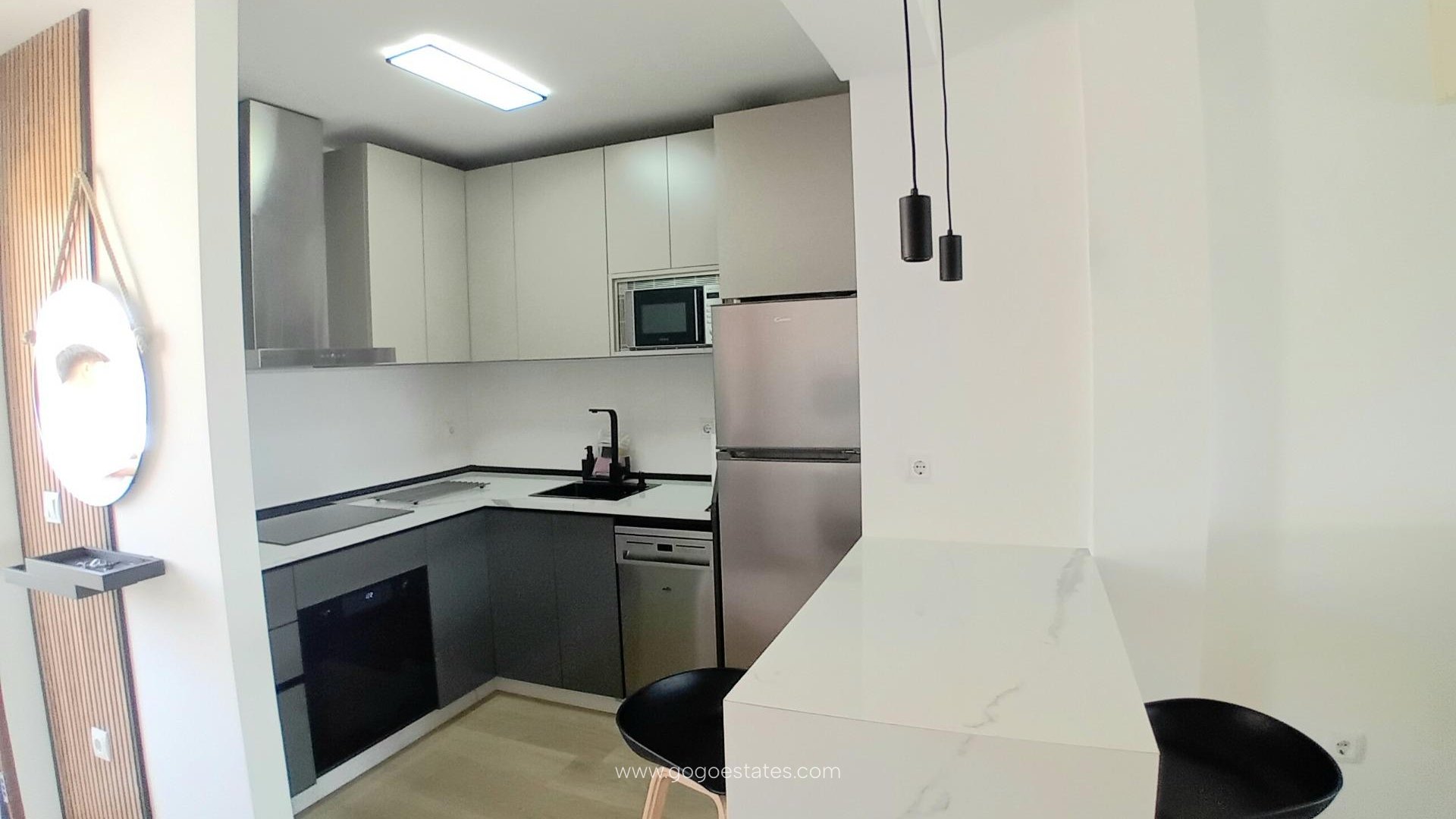 Im Herzen von Bolnuevo gelegen, bietet diese vollständig renovierte Zwei-Zimmer-Wohnung eine erstklassige Gelegenheit, das Leben an der Küste stilvoll zu genießen. Nur drei Gehminuten vom Strand entfernt, beeindruckt die Immobilie mit einem atemberaubenden, unverbauten Meerblick und einer südöstlichen Ausrichtung, die das Morgenlicht perfekt einfängt.~~Die Wohnung wurde mit hochwertigen Materialien modernisiert und verfügt über ein elegantes, zeitgemäßes Design. Der großzügige Wohn- und Essbereich öffnet sich zu einer privaten Terrasse – ideal für Mahlzeiten im Freien oder entspannte Stunden mit Blick auf das Mittelmeer. Die beiden Schlafzimmer sind hell und geräumig, während Küche und Bad mit modernen Armaturen ausgestattet sind.~~Den Bewohnern steht ein gepflegter Gemeinschaftspool zur Verfügung, der zusätzlichen Komfort bietet. Ob als Dauerwohnsitz, Feriendomizil oder Kapitalanlage – diese Immobilie überzeugt durch Lage, Stil und Qualität.~~Für weitere Informationen oder zur Vereinbarung eines Besichtigungstermins kontaktieren Sie uns bitte direkt.~~~