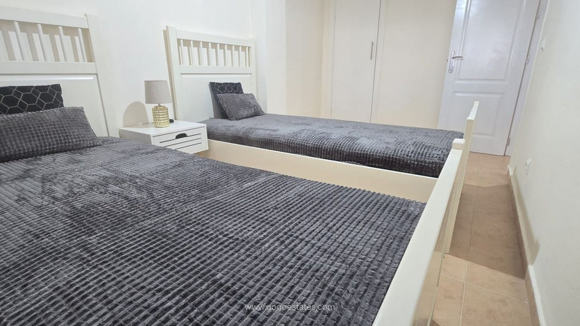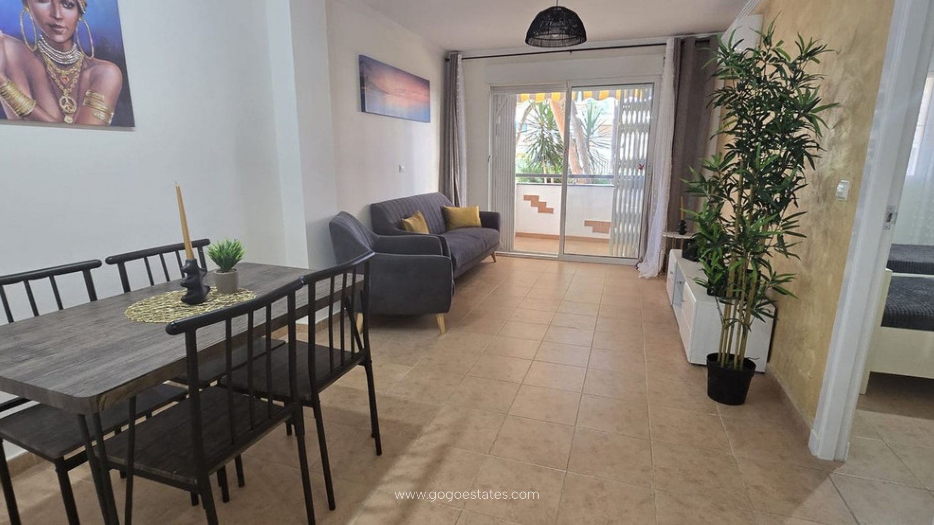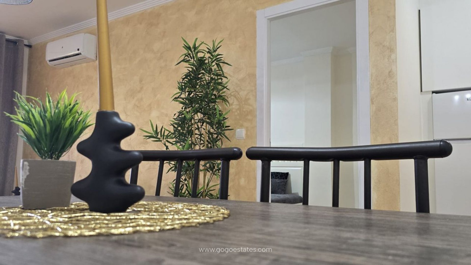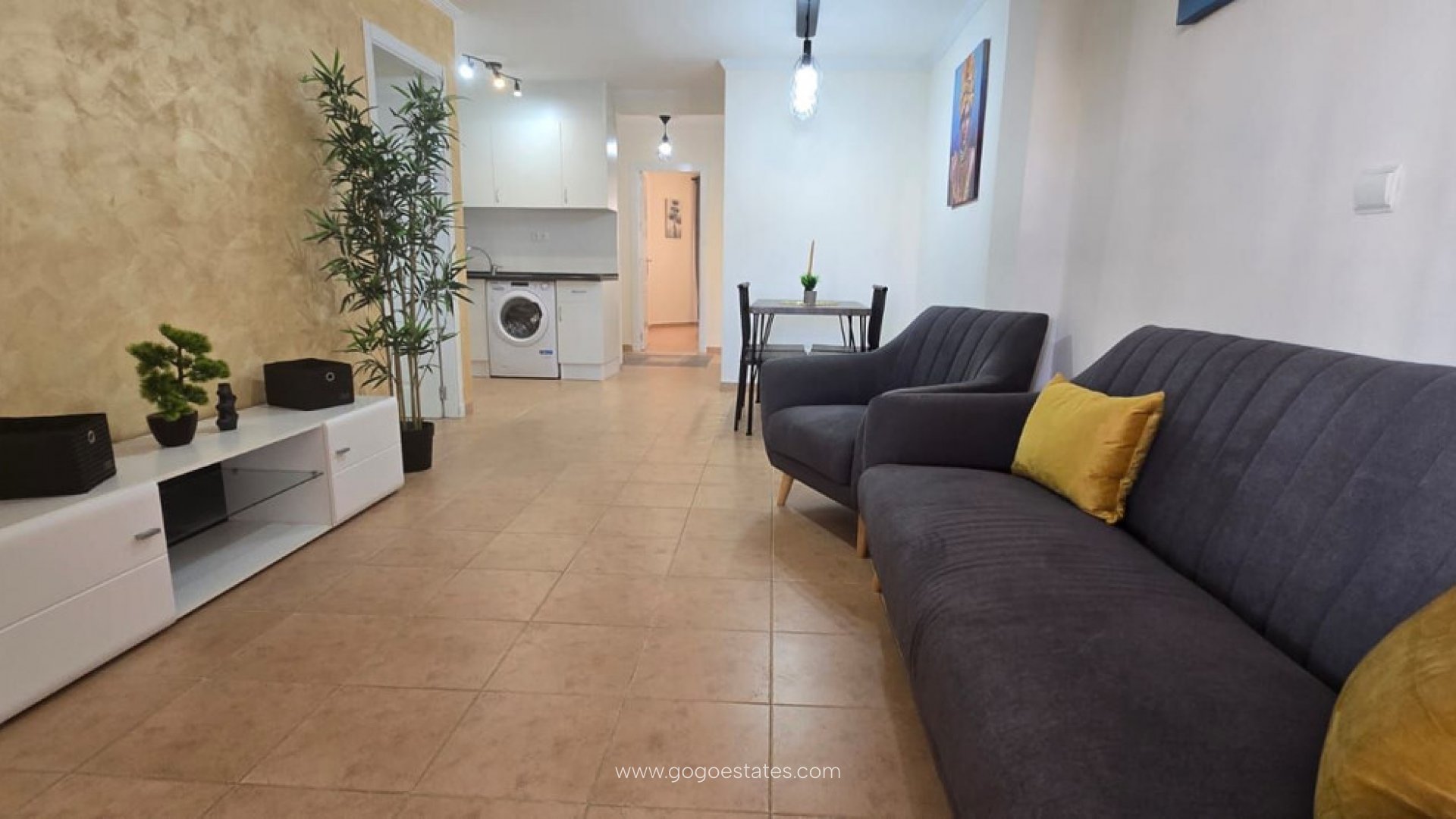 Renovierte Erdgeschosswohnung in Lo Pagan, San Pedro del Pinatar. Die Wohnung befindet sich nur 200 m vom Strand entfernt in einer geschlossenen Wohnanlage und ist daher auch für Personen mit eingeschränkter Mobilität gut zugänglich. Sie verfügt über eine offene Küche mit Wohnbereich, zwei Doppelschlafzimmer und ein Badezimmer. Vom Wohnzimmer aus gelangt man auf eine geräumige private Terrasse mit Blick auf den Gemeinschaftsgarten. Ein Abstellraum ist im Preis inbegriffen.