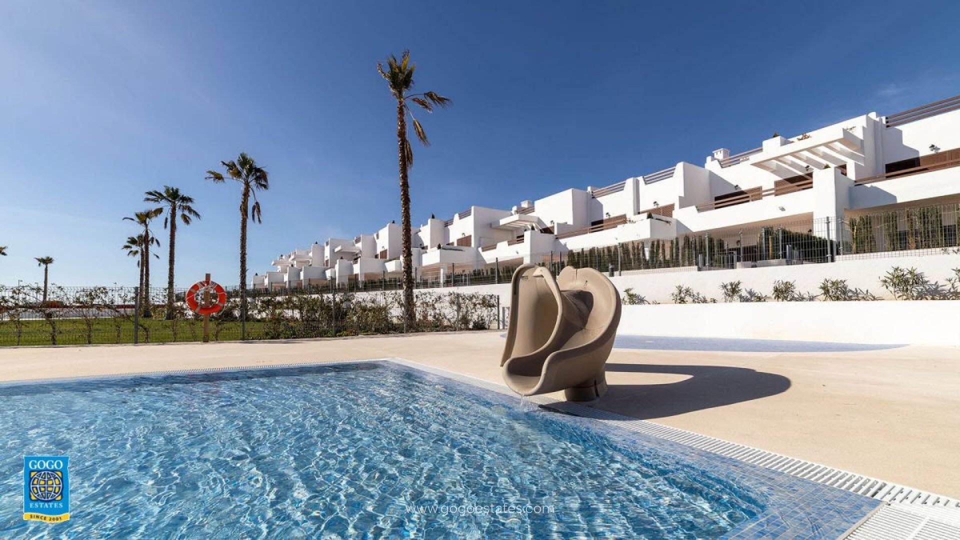 Apartments zum Verkauf in Mar de Pulpí Entdecken Sie diese exklusiven 1-Schlafzimmer-Apartments, ein gemütlicher und funktionaler Raum, perfekt für Paare, als Zweitwohnsitz oder als rentable Immobilieninvestition. Privilegierte Lage Nur wenige Schritte vom Mittelmeer entfernt, in einem Gebiet, das von allen notwendigen Dienstleistungen umgeben ist: Supermärkte, Apotheken, Restaurants, Cafés und Gesundheitszentren. Darüber hinaus bietet die Wohnanlage eine ideale Umgebung, um die frische Luft zu genießen, mit Wander- und Radwegen sowie Wassersportarten wie Kajak, Paddle-Surf oder Tauchen. Außergewöhnliche Gemeinschaftsbereiche Gemeinschaftspools zum Entspannen und Genießen des guten Wetters. Sportanlagen und Freizeitbereiche im Freien. Gepflegte Gärten, die eine ruhige und angenehme Atmosphäre schaffen. Vorteile und Rentabilität Eine ideale Gelegenheit für Investoren: hohe Nachfrage nach Vermietungen in der Hochsaison und garantierte Einnahmen während des Sommers. Dienstleistungen und Leben in der Region Die Wohnanlage bietet eine perfekte Kombination aus Ruhe und Komfort, mit Schulen, Aktivitäten für Kinder, lokalen Märkten und kulturellen Veranstaltungen, die das Leben in Mar de Pulpí bereichern. Ihr Zuhause am Meer Ein Ort, der das ganze Jahr über zum Genießen, zur sicheren Investition oder zum Erleben der besten Ferien Ihres Lebens gedacht ist.