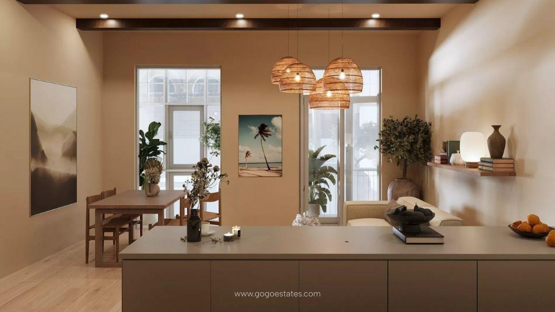 Diese Wohnung liegt eine Etage über dem Straßenniveau, was maximale Privatsphäre gewährleistet, und verfügt über einen charmanten privaten Innenhof. Der Zugang erfolgt über das Treppenhaus in einen funktionalen Garderobenbereich. Ein Flur führt zu den Schlafzimmern sowie zum einladenden Wohnbereich, der nahtlos in die moderne, minimalistisch gestaltete Küche übergeht. Das Wohnzimmer besticht durch einen Balkon und einen markanten Erker mit Blick auf die Straße. Das kleinere Schlafzimmer bietet Platz für ein Bett, Schrankraum und einen Schreibtisch.~~Das Gästebad ist mit einer eigenen Dusche ausgestattet und verwendet dieselben exklusiven Materialien wie das Hauptbad.~~Hinweis: Die Innen- und Außenvisualisierungen können geringfügig von der endgültigen Ausführung der Wohnungen und des Gebäudes abweichen.~