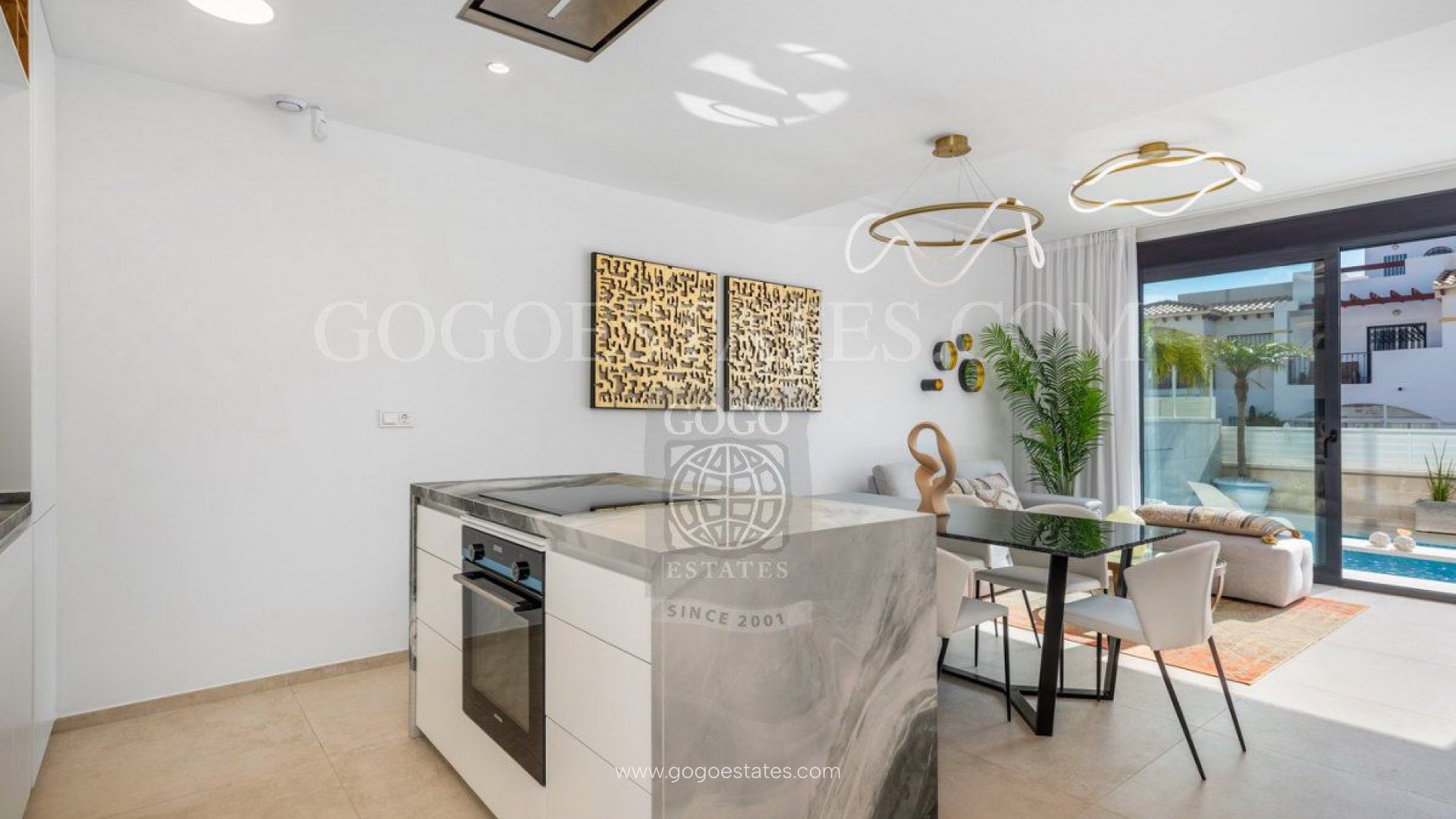Diese Wohnanlage befindet sich in Punta Prima, einem der bekanntesten Küstenabschnitte der Costa Alicantina. Sie besteht aus 14 freistehenden Villen mit 3 oder 4 Schlafzimmern und 3 oder 4 Bädern. Alle Wohnungen sind so konzipiert, dass der verfügbare Raum optimal genutzt wird, mit einer idealen Ausrichtung, um den ganzen Tag über natürliches Licht zu genießen. Jede Parzelle hat einen eigenen Swimmingpool und Garten. Vielleicht das schönste Haus überhaupt. Diese unglaubliche neue Villa zum Verkauf in Punta Prima sieht aus, als wäre sie vom Himmel gefallen. Das Solarium wird Ihnen mehr als nur ein Lächeln entlocken. Und Ihre Kinder werden den schönen Pool und den großen Garten- und Terrassenbereich lieben. Dieses luxuriöse zweistöckige Haus mit Sonnenterrasse ist Teil eines attraktiven Komplexes von 14 unabhängigen Villen mit einem geräumigen und funktionalen Design. Jedes verfügt über ein eigenes Grundstück mit Pool und Garten, ein Ort, den Freunde und Familie zu jeder Jahreszeit genießen können, da Orihuela Costa eines der besten Klimas der Welt hat. Der geräumige Balkon des Schlafzimmers ist der ideale Ort, um den ersten Morgenkaffee zu schlürfen, während Sie die Ruhe des Gartens und den nächsten Sonnenaufgang genießen. Das Rauschen des Wasserfalls am Pool wird zu einer Ihrer Lieblingsmelodien zum Lesen und Schlafen. Ich bezweifle sehr, dass es in der Gegend ein solches Haus mit diesem Licht, dieser Aussicht und diesem attraktiven Äußeren gibt. Lieben Sie das Meer, den Strand und den Sand? Dieses schöne Anwesen befindet sich nur wenige Autominuten von den besten Stränden der Orihuela Costa entfernt: Cala Piteras, Cala Mosca, Cala Ferris, Playa Punta Prima... Wann immer Sie der Welt entfliehen wollen, können Sie dies in diesen wunderschönen Enklaven mit Sandstränden und kristallklarem Wasser tun. Sie werden es lieben, barfuß zu laufen und die Süße des Meeres an Ihren Füßen zu spüren. An den ruhigen Stränden mit kristallklarem Wasser genießen die Bewohner felsige Buchten und sandige Abschnitte für eine herrlich entspannte Zeit. Das Freizeitangebot in Punta Prima ist sehr breit gefächert: Die vielen Cafés und Restaurants am Meer sind ideal, um lange Ferien zu verbringen oder das ganze Jahr über zu leben. Weitere Informationen erhalten Sie bei uns!
