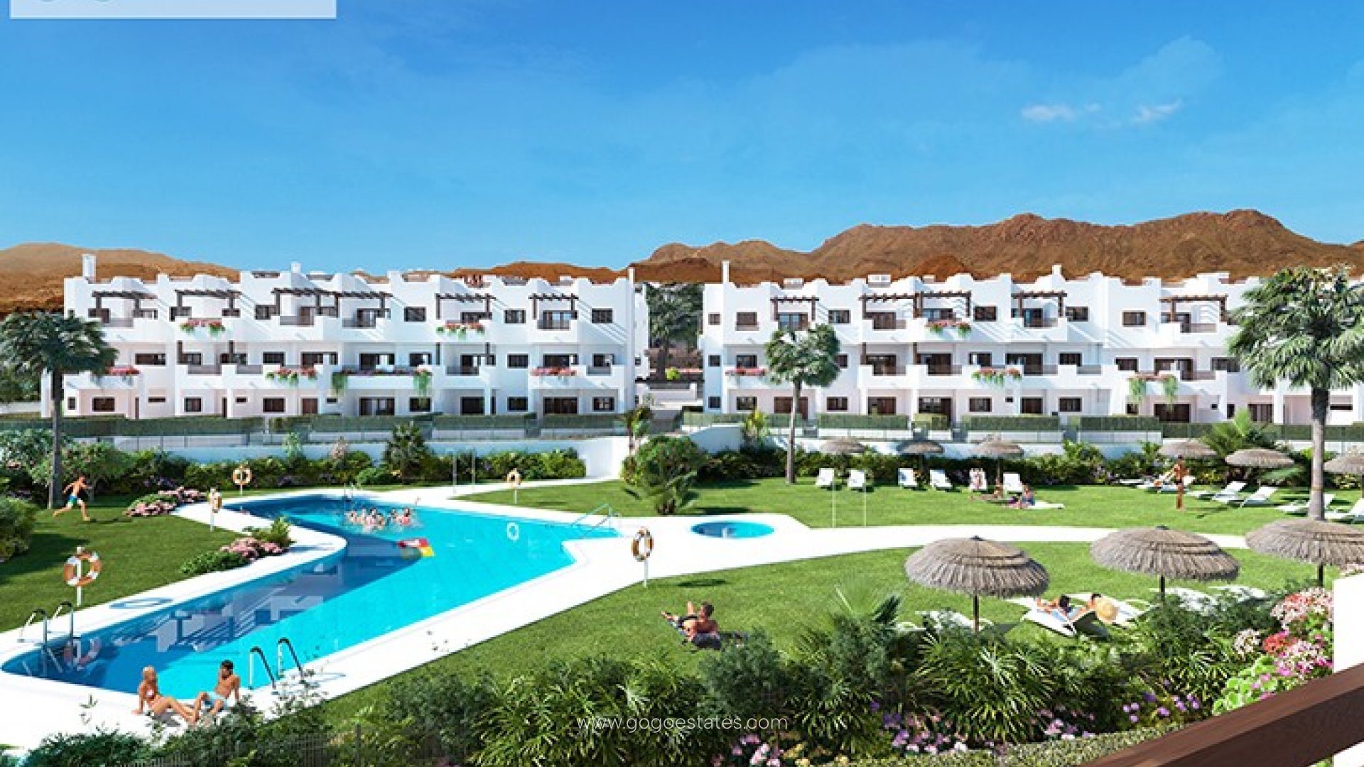 Neubauimmobilien in Mar de Pulpi Costa Almería mit 3 Schlafzimmern, 2 Bädern mit großer Terrasse mit Meerblick und Pool.