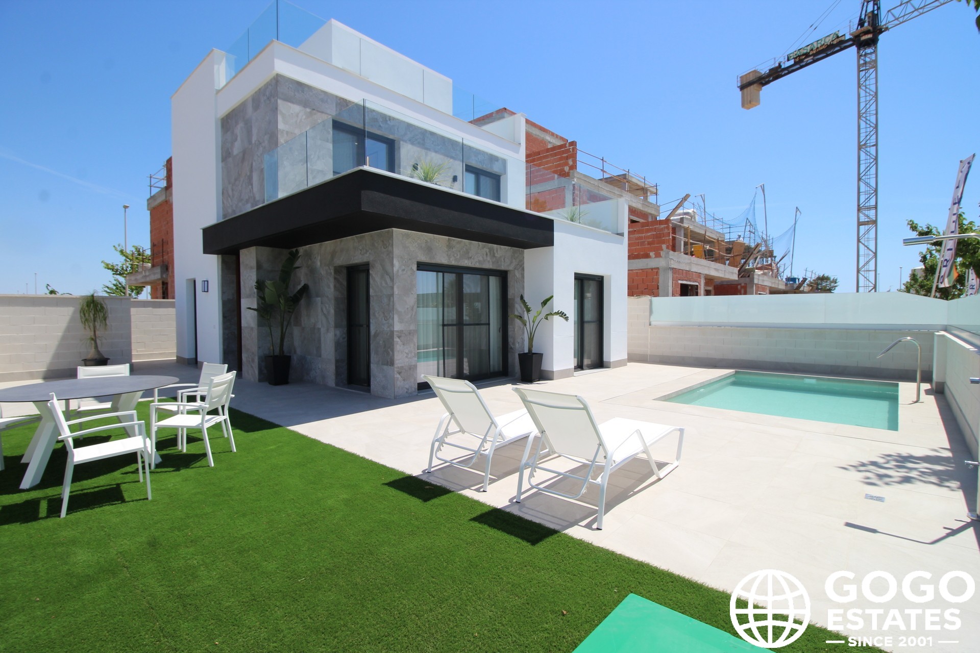 Die Außenbereiche dieser Einfamilienhäuser sind so gestaltet, dass man das mediterrane Klima in vollen Zügen genießen kann. Jede Immobilie verfügt über einen privaten Garten, der perfekt ist, um eine persönliche Oase der Ruhe zu schaffen. Die Terrasse bietet zusätzlichen Raum für Entspannung im Freien, während das Solarium ideal ist, um in völliger Privatsphäre zu sonnenbaden. Darüber hinaus hat jedes Haus einen privaten Pool, der einen erfrischenden Ort bietet, um an warmen Sommertagen zu genießen.