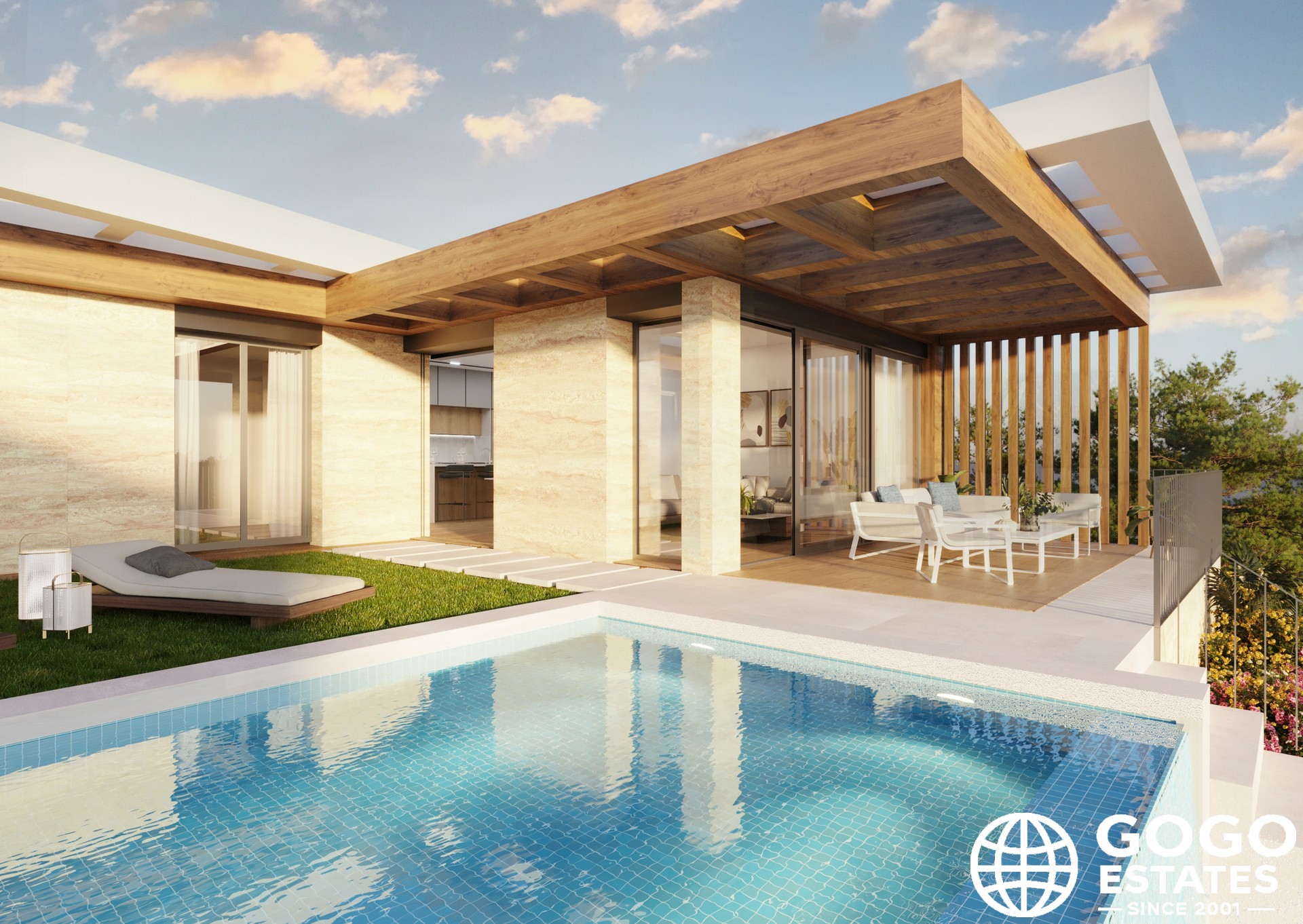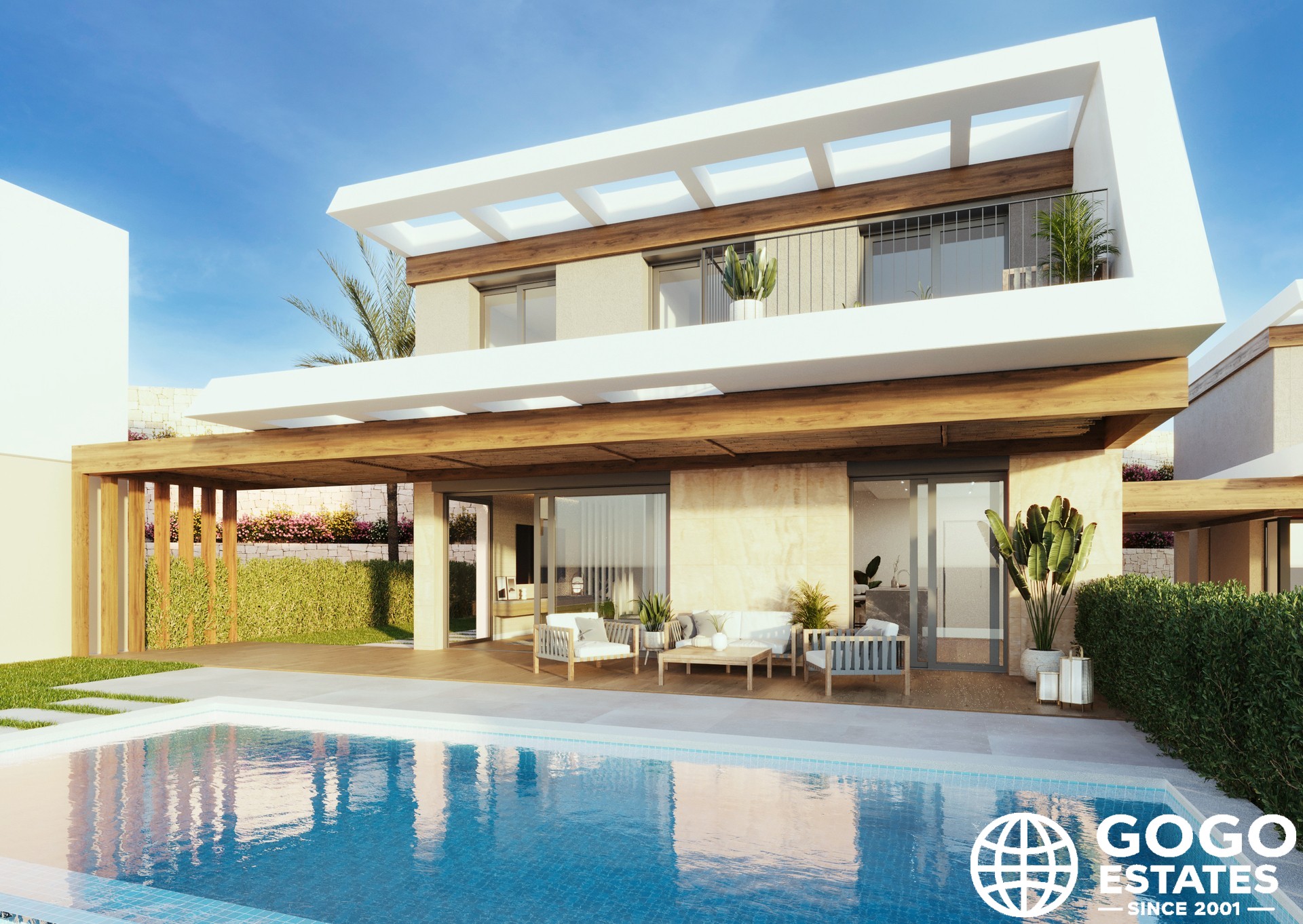 Die Außenbereiche sind für maximalen Genuss des mediterranen Klimas gestaltet. Jede Immobilie umfasst einen privaten Garten, eine Terrasse, ein Solarium und einen privaten Pool. Eine Pergola und ein Jacuzzi erweitern die Entspannungsbereiche im Freien.