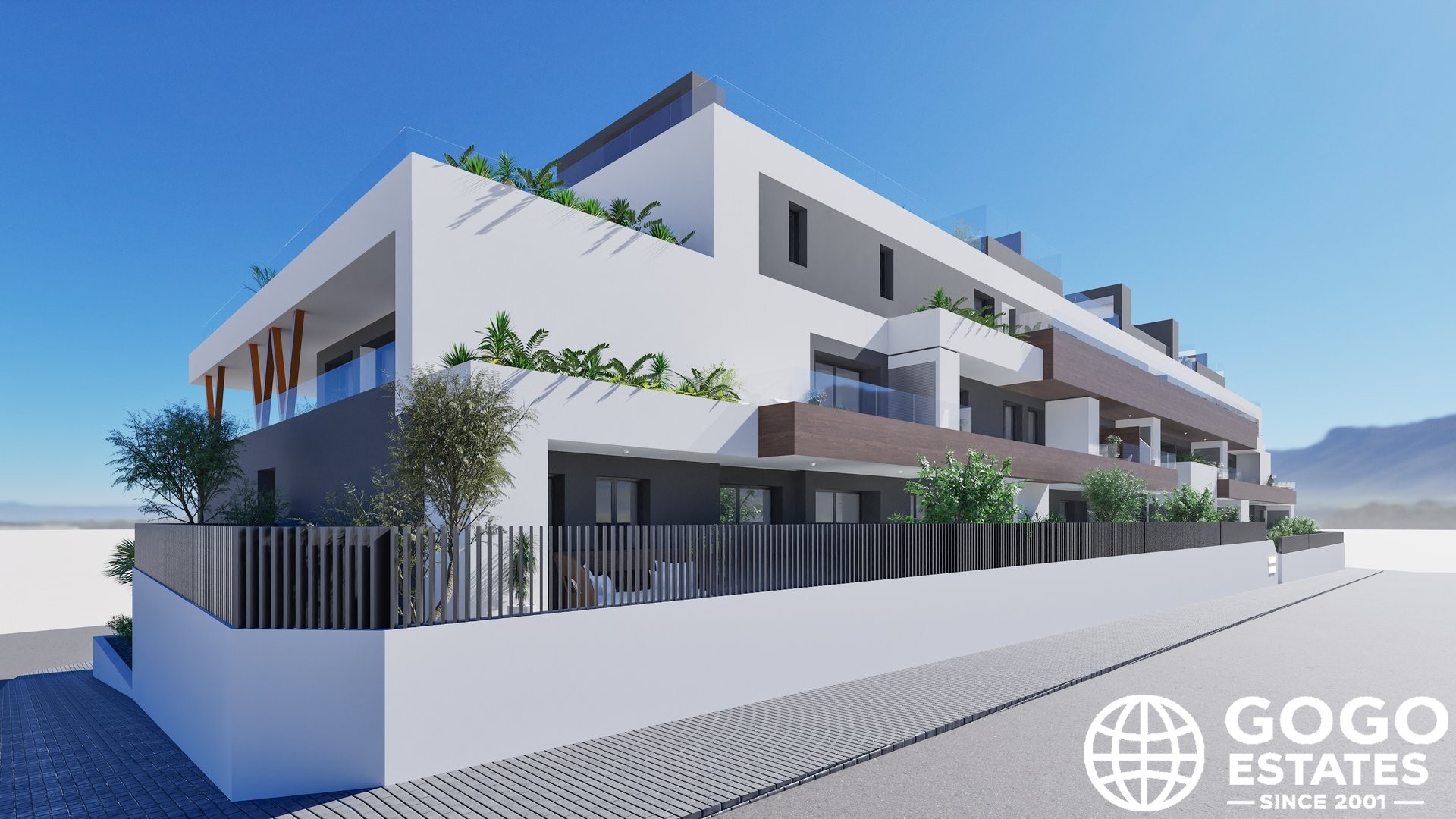 Die Außenbereiche maximieren das Vergnügen am mediterranen Klima. Alle Immobilien verfügen über Terrassen, die perfekt für die Entspannung im Freien sind. Einige Typen bieten private Gärten, die zusätzlichen Raum für Freizeit oder Gartenarbeit bieten.