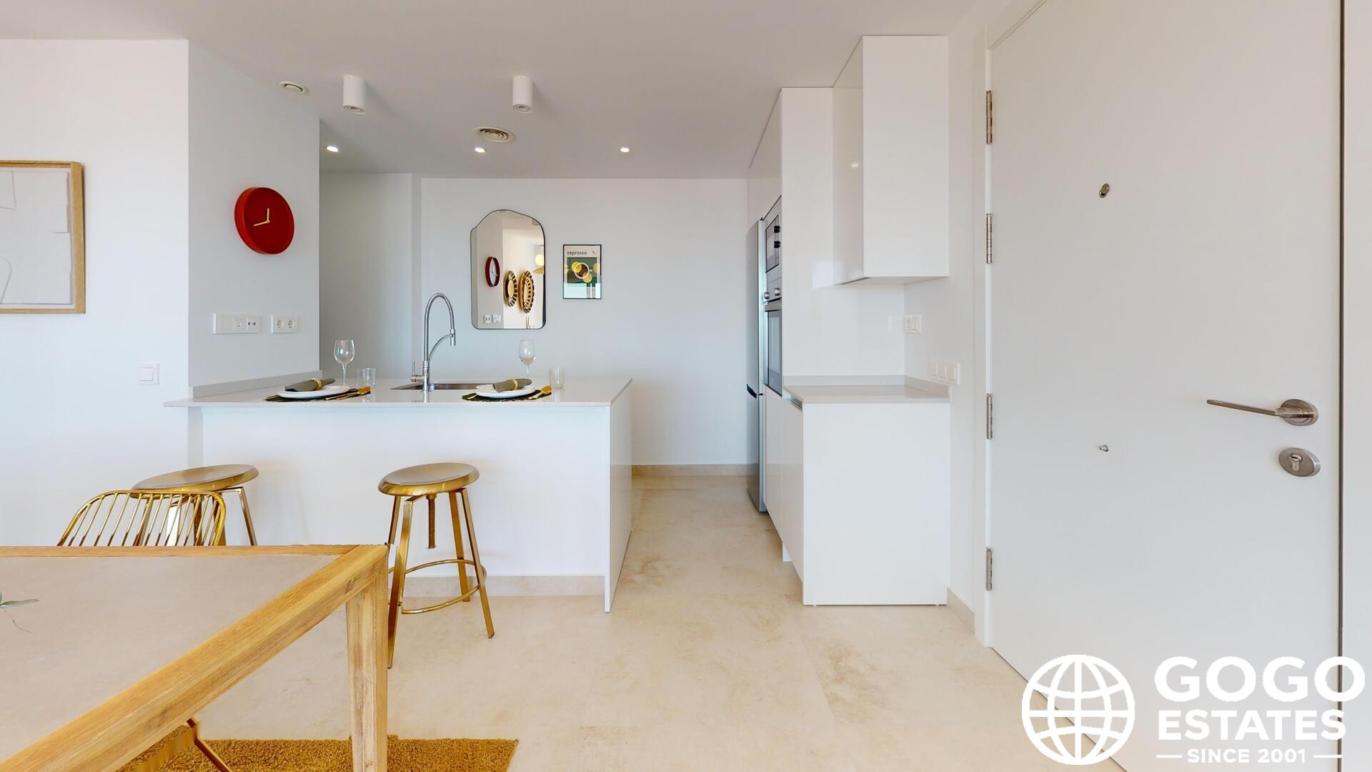 Das Innere verfügt über keramische Böden, Klimaanlage und Einbauschränke für stilvolle und effiziente Aufbewahrung. Inklusive Geräte sorgen für Komfort im Alltag.