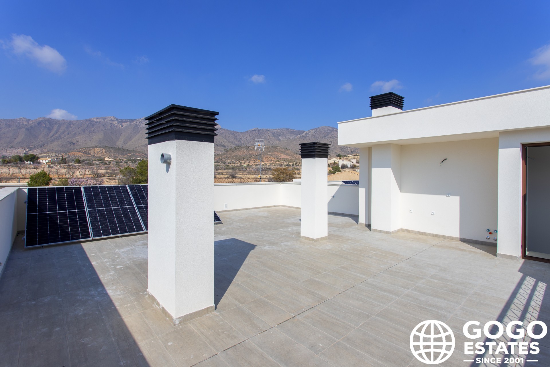 Die Außenbereiche sind darauf ausgelegt, das mediterrane Klima zu genießen. Jeder Bungalow verfügt über eine private Terrasse, ideal zum Entspannen oder geselligem Beisammensein. Darüber hinaus bietet das Solarium zusätzlichen Platz zum Sonnenbaden oder zum Genießen der Panoramaaussichten.