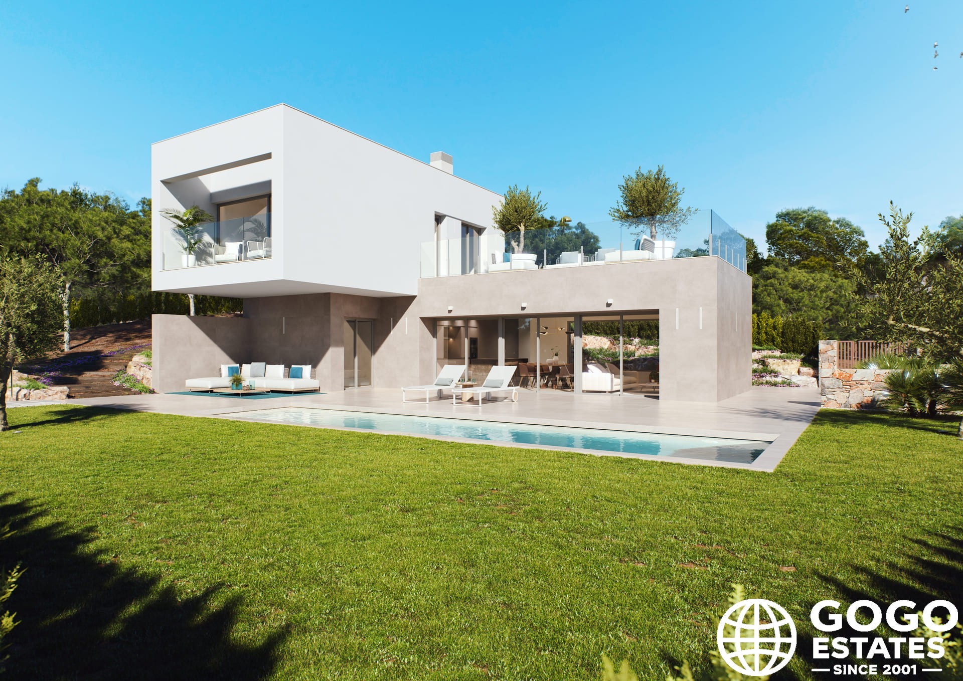 Die Immobilien verfügen über Außenbereiche, die darauf ausgelegt sind, das Genießen des mediterranen Klimas zu maximieren. Jedes Haus umfasst einen privaten Garten und eine Terrasse, perfekt zum Entspannen und für das Essen im Freien. Ein privater Pool verleiht einen Hauch von Luxus und bietet eine erfrischende Flucht zu Hause.