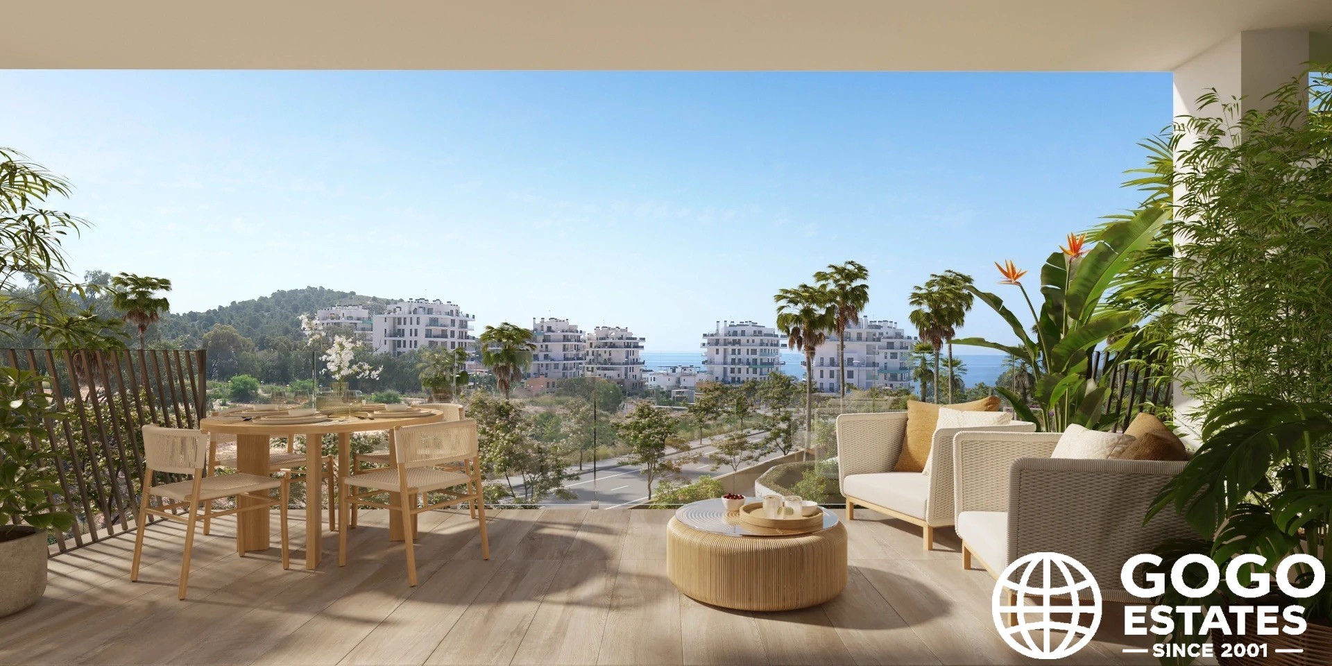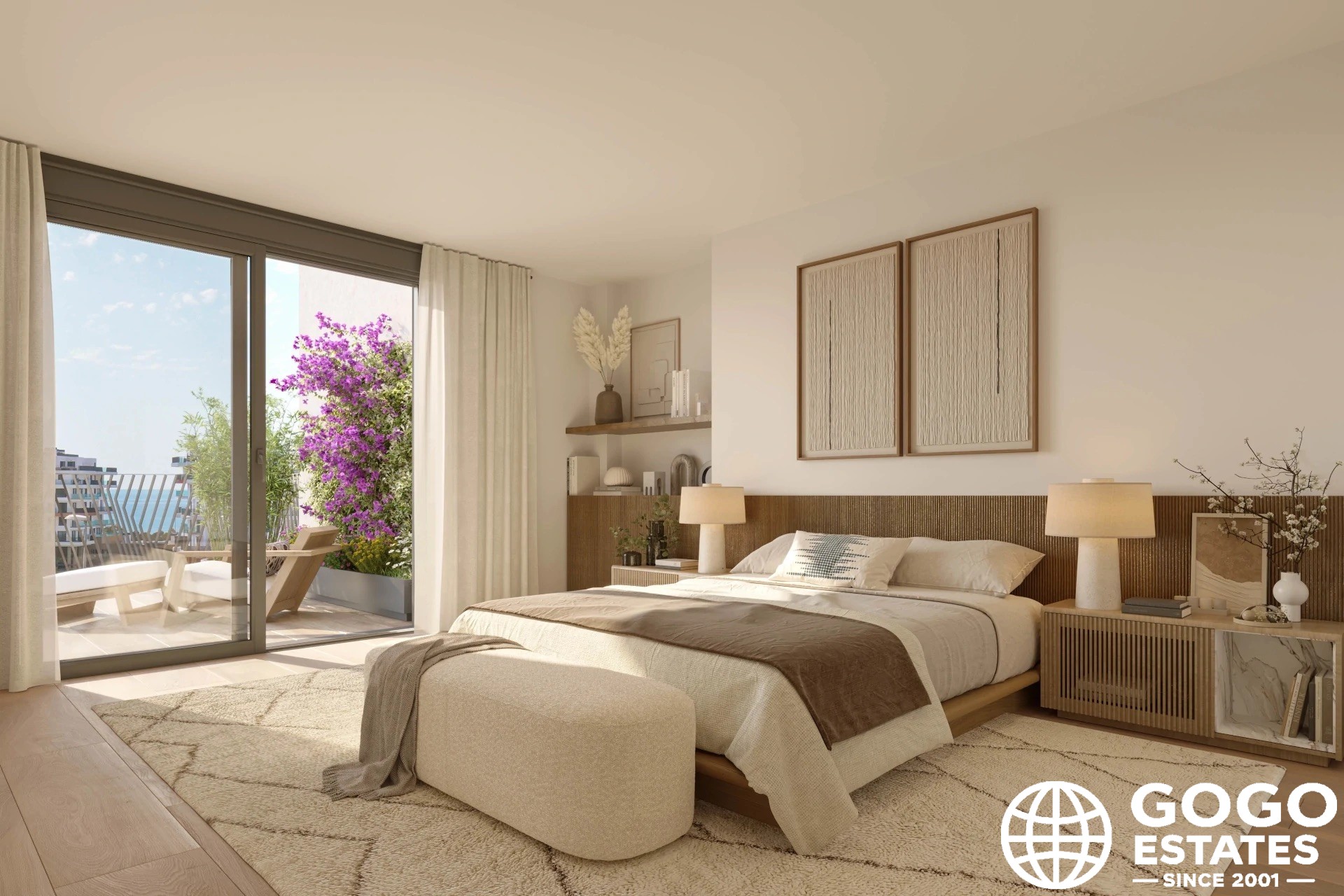 Die Wohnung verfügt über 1 Schlafzimmer und 1 Badezimmer, mit einer Gesamtbaufläche von 93m². Zu den Außenbereichen gehören eine private Terrasse von 17m² und ein Garten von 27m², die perfekt sind, um das mediterrane Klima zu genießen.