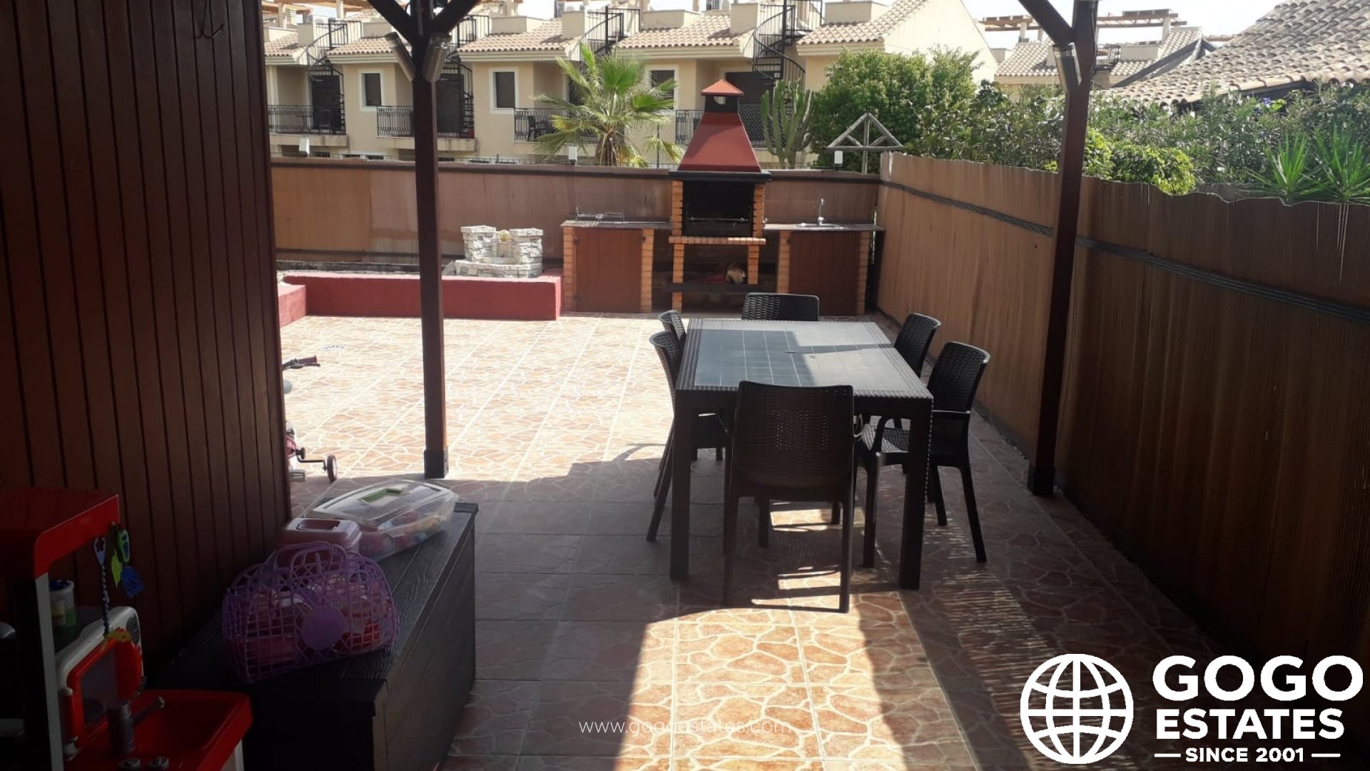Zu den Hauptmerkmalen gehören eine voll ausgestattete Küche mit modernen Geräten, eine geräumige Terrasse mit einem Grill und ein praktischer Hauswirtschaftsraum. Die Sicherheit wird durch mit Gittern versehene Fenster erhöht.