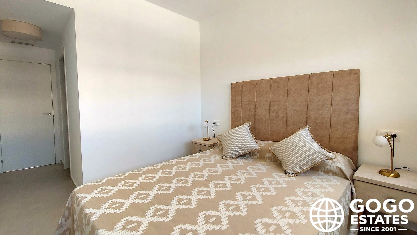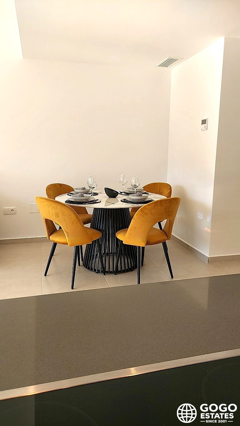 Die Wohnung ist mit Klimaanlage, Einbauschränken und modernen Geräten ausgestattet, die ein zeitgemäßes Wohnumfeld gewährleisten. Porzellansteinfliesen verleihen einen Hauch von Eleganz.