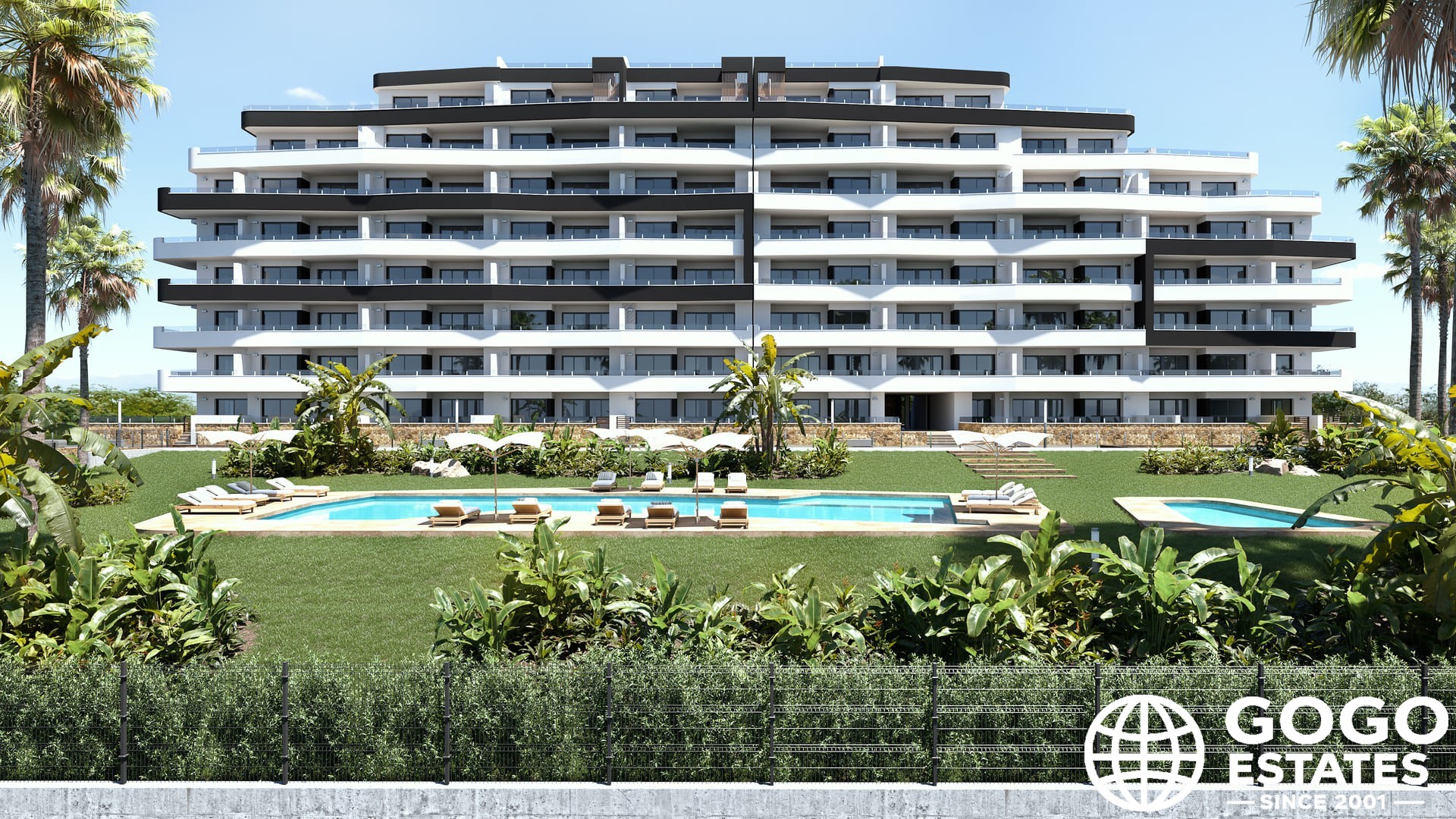 Die Außenbereiche umfassen eine private Terrasse von 37 m², die perfekt zum Entspannen und Genießen des mediterranen Klimas geeignet ist. Den Bewohnern stehen großzügige Gartenflächen, ein Gemeinschaftspool und ein Spielbereich für Kinder zur Verfügung.