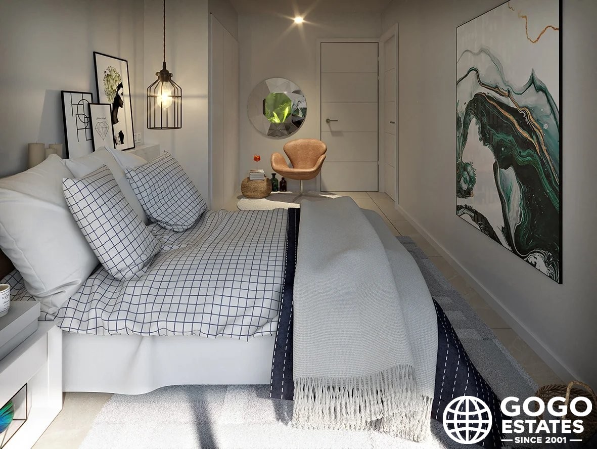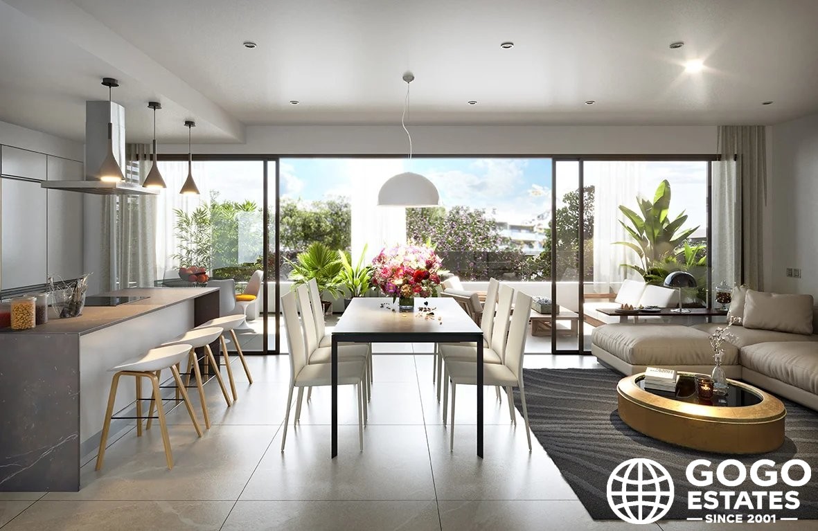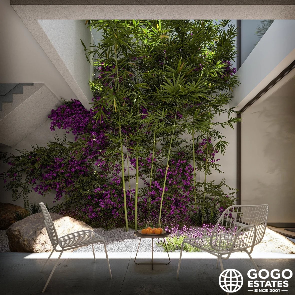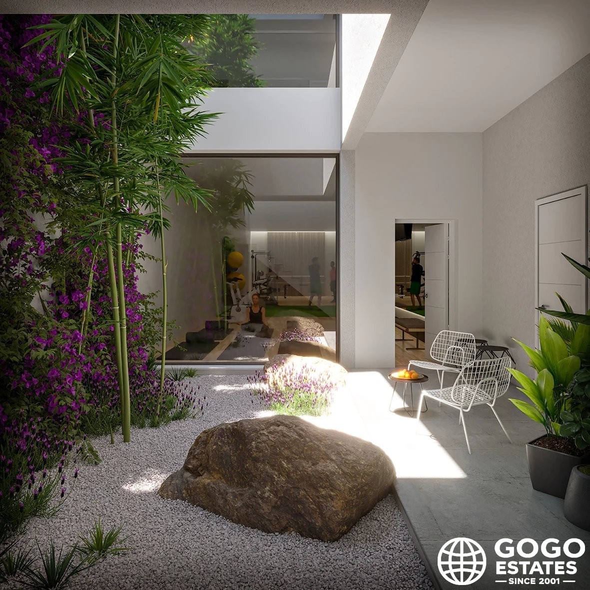 Die Bewohner können Gemeinschaftsbereiche genießen, darunter angelegte Gärten, einen Gemeinschaftspool und ein Fitnessstudio. Die Lage bietet Ruhe und Erreichbarkeit, nur 2 km vom Meer und 23 km vom Flughafen entfernt.
