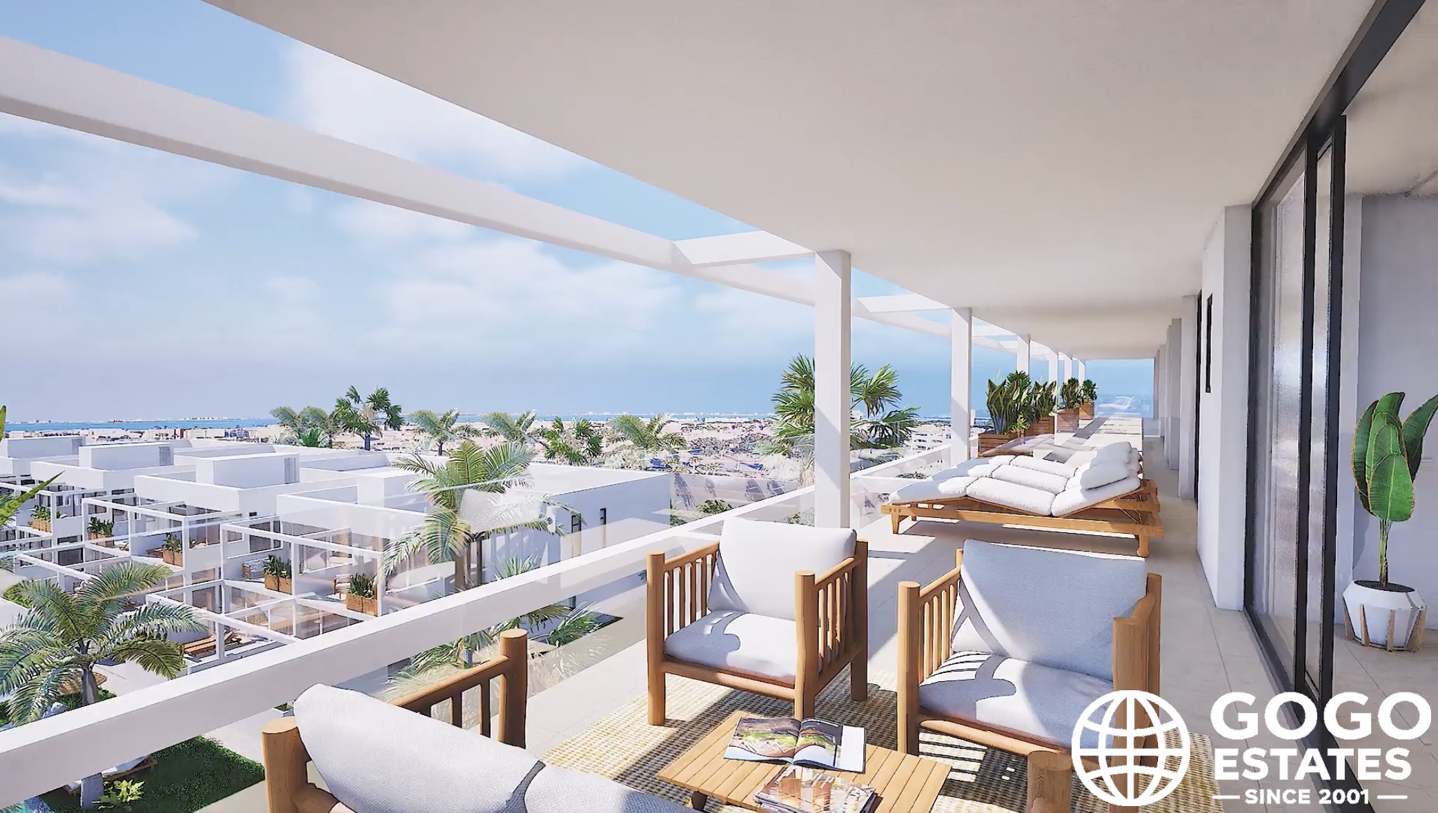 Im Inneren bieten die Immobilien Komfort und Stil mit Porzellanfliesen und Einbauschränken. Die Wohnungen sind in 2- und 3-Zimmer-Konfigurationen erhältlich, alle mit 2 Badezimmern. Private Terrassen bieten einen perfekten Ort, um Momente der Ruhe zu genießen.