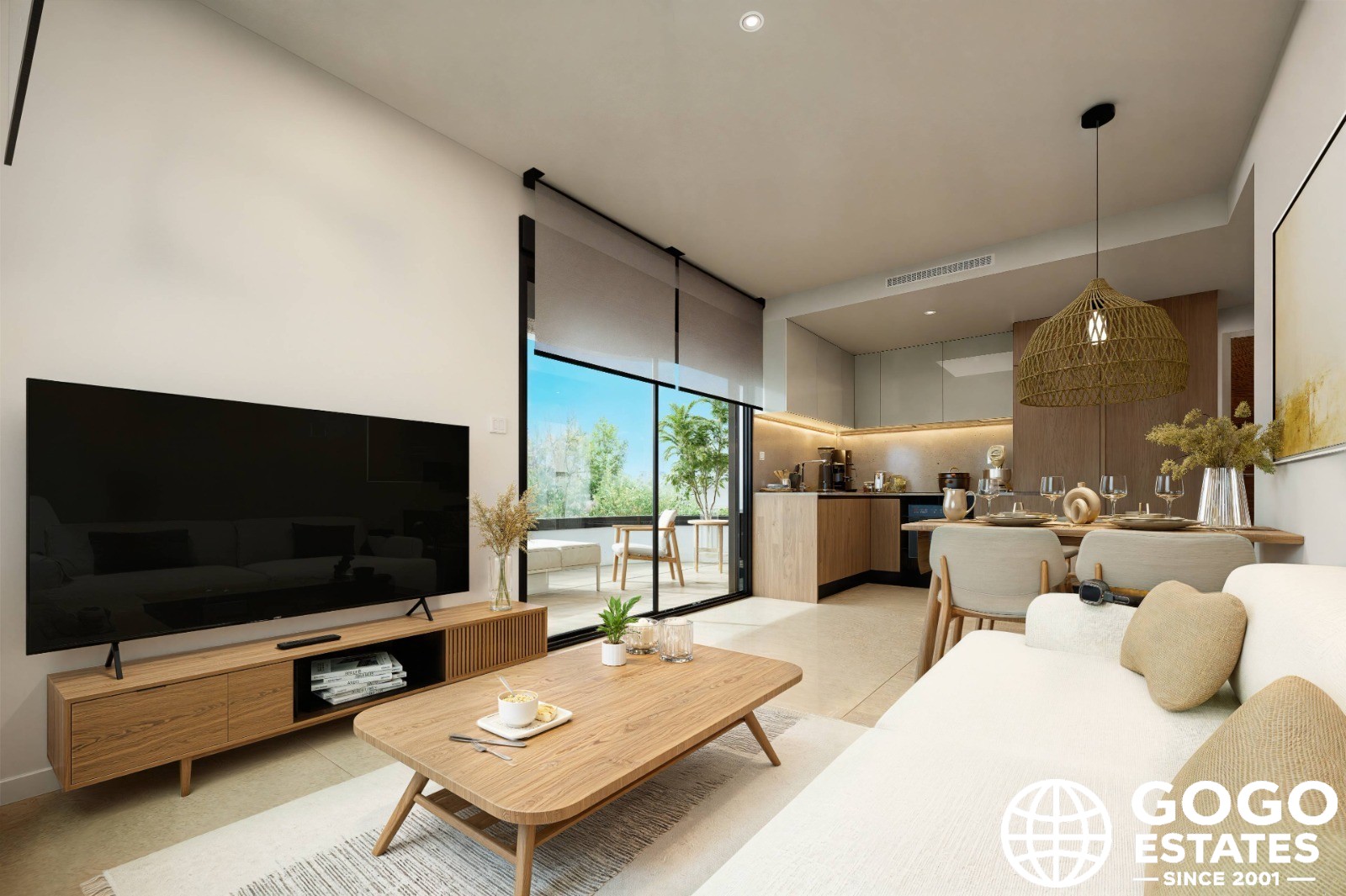 Die Wohnung verfügt über Fußböden aus Porzellanfliesen, Video-Gegensprechanlage, Geräte und Einbauschränke. Die Vorinstallation von Klimaanlagen sorgt das ganze Jahr über für ein angenehmes Ambiente. Die Innenräume sind auf Komfort und Funktionalität ausgelegt, mit modernen Oberflächen und effizienter Raumnutzung.