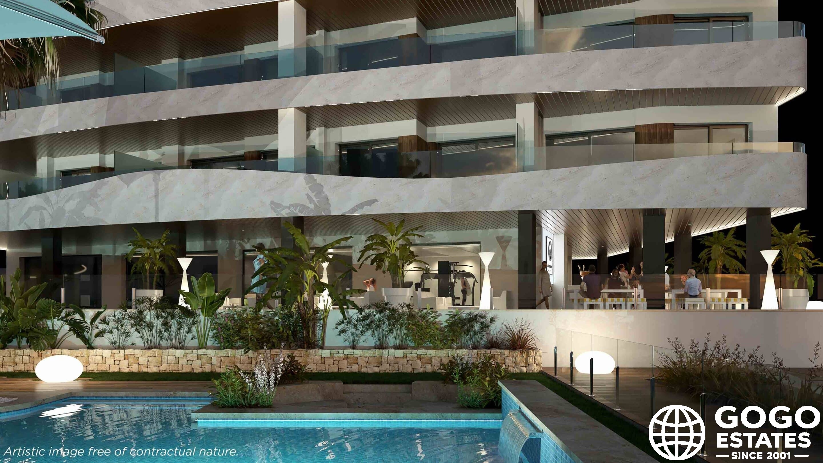 Die Gemeinschaftsbereiche sind darauf ausgelegt, einen aktiven Lebensstil zu fördern, mit großzügigen Gartenbereichen, einem Gemeinschaftspool und einem Fitnessraum zur Nutzung durch die Bewohner.