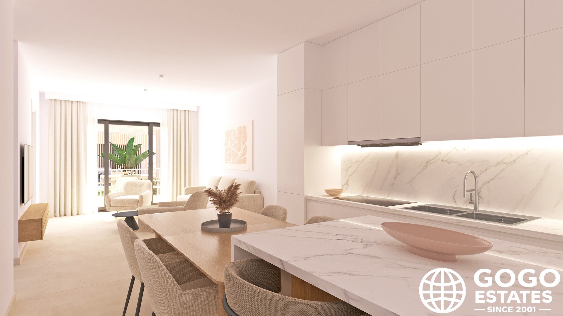 Die Wohnung verfügt über Außenbereiche, die darauf ausgelegt sind, das Genießen des mediterranen Klimas zu maximieren. Die Terrasse ist ideal, um die Aussicht und die frische Luft zu genießen. Das Innere ist mit einem Fokus auf Qualität und Komfort gestaltet, mit Porzellanfliesen und eingebauten Schränken. Die Küche ist mit modernen Geräten ausgestattet, und die Wohnung umfasst 2 Badezimmer.