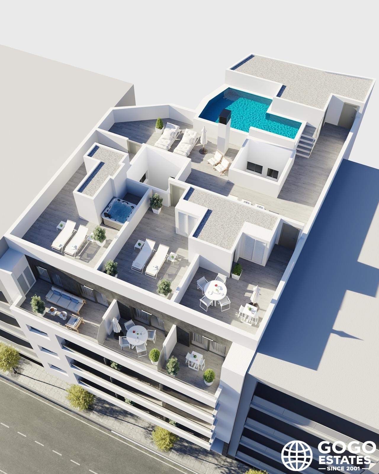 Moderne Merkmale sorgen für maximalen Komfort, einschließlich Porzellanfliesen und der Vorinstallation von Klimaanlagen. Die Video-Gegensprechanlage bietet zusätzliche Sicherheit und ermöglicht es den Bewohnern, den Zugang zu ihren Wohnungen zu kontrollieren.