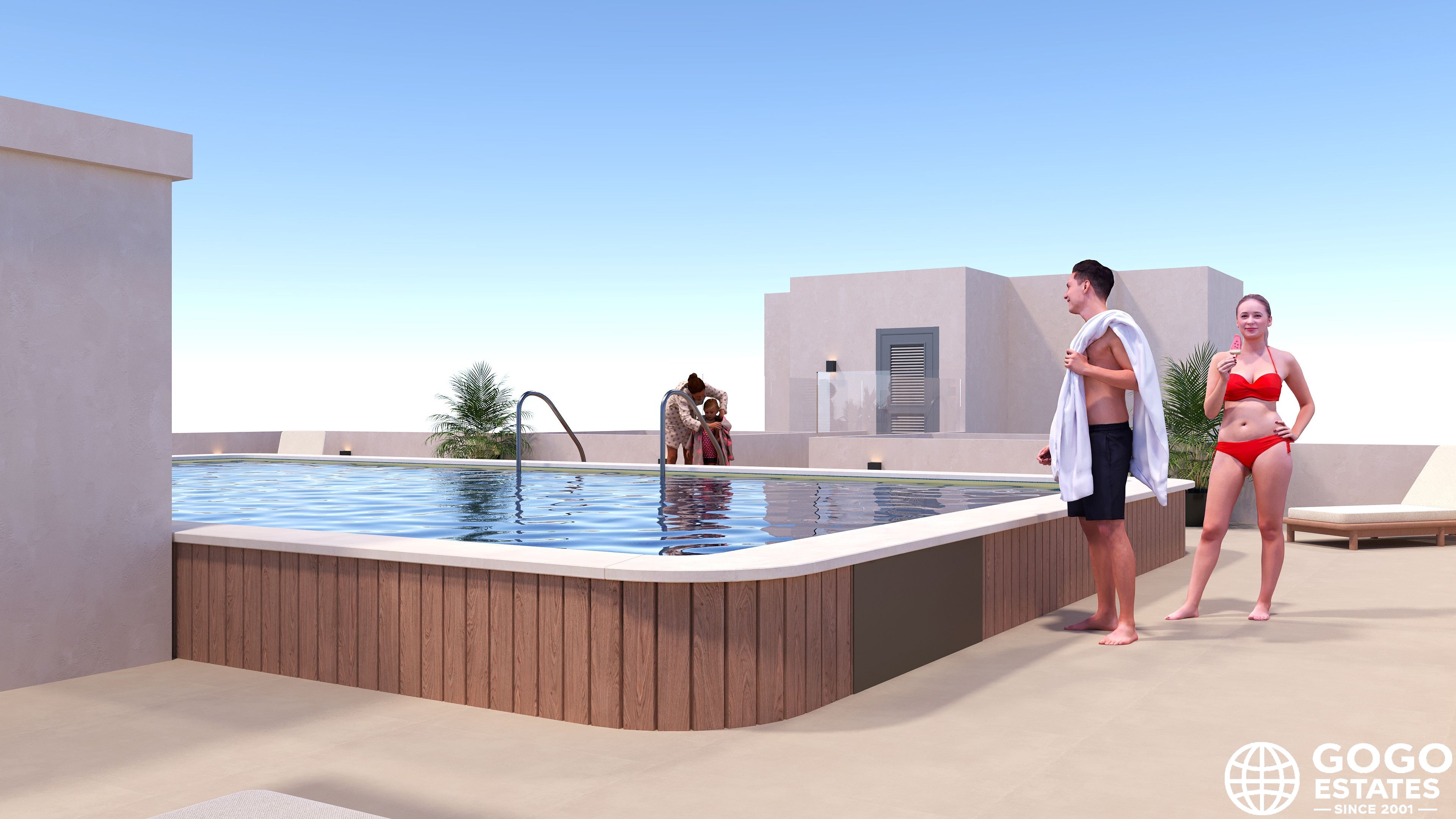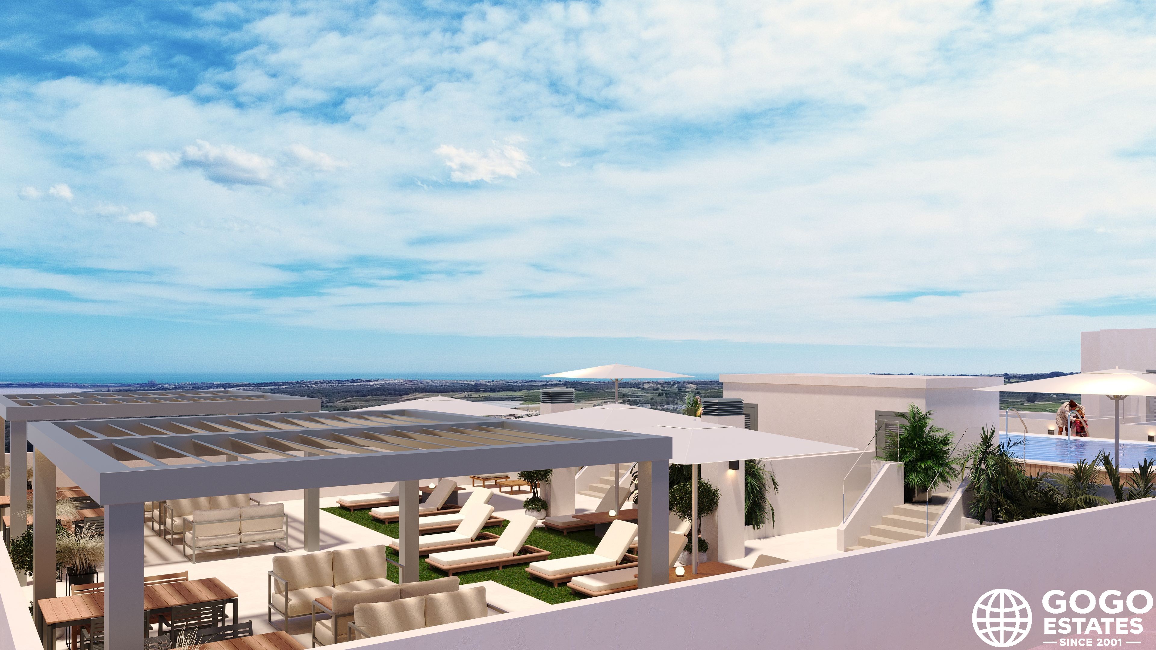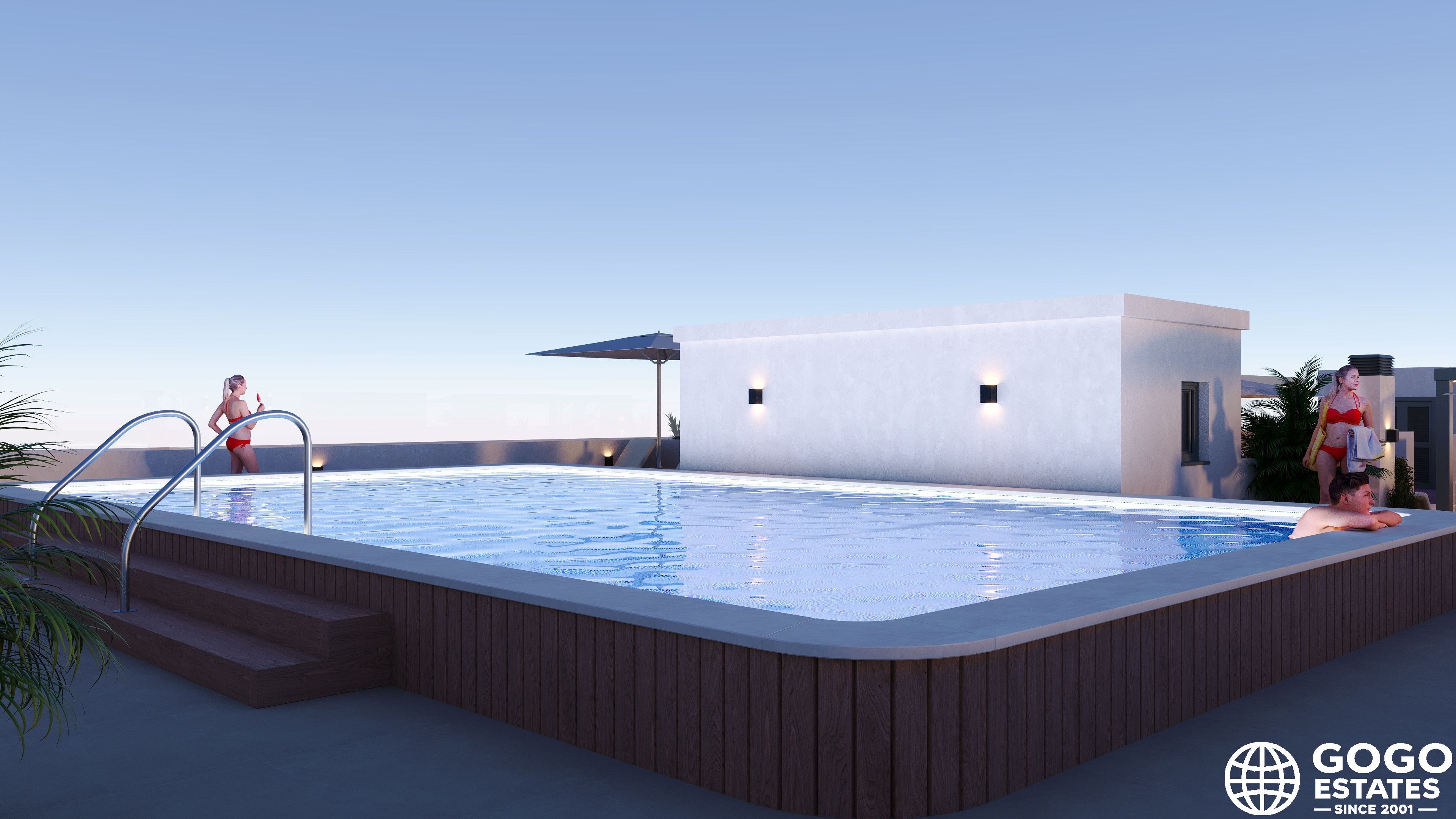 Die Wohnanlage umfasst Gemeinschaftsbereiche wie einen Gemeinschaftspool, angelegte Gärten und einen Spielplatz, was eine angenehme Gemeinschaftsatmosphäre gewährleistet. Die Lage bietet Ruhe und einen einfachen Zugang zu Küstengebieten.