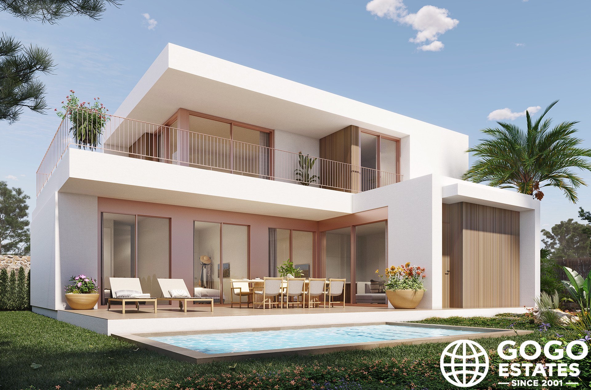 Die Außenbereiche umfassen einen privaten Garten und großzügige Terrassen, die perfekt sind, um das mediterrane Klima zu genießen. Jedes Zuhause verfügt zudem über einen privaten Pool und ein Solarium, die ideale Räume für Entspannung und Freizeit bieten.
