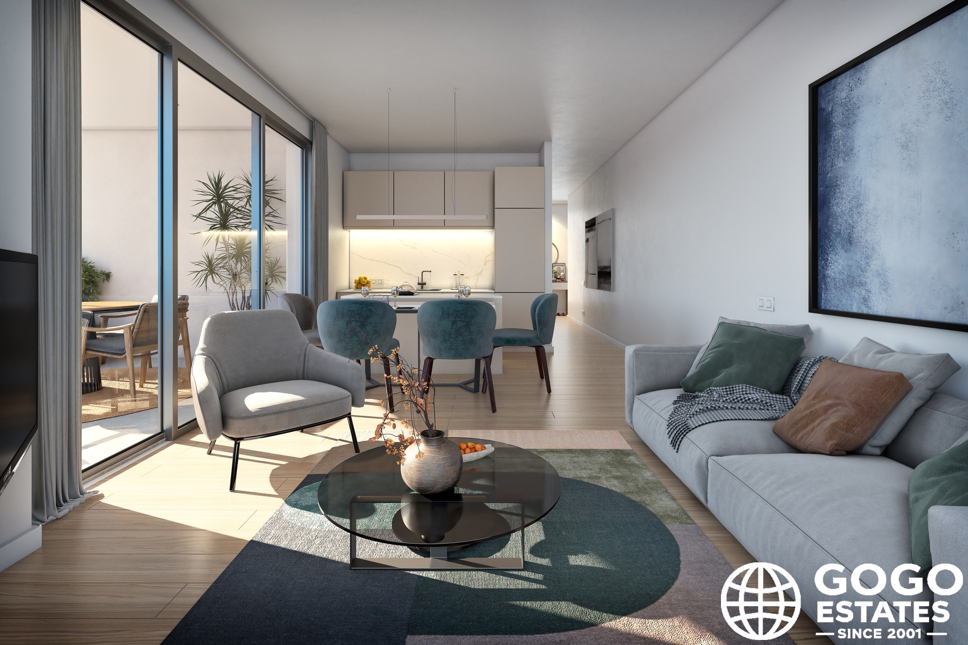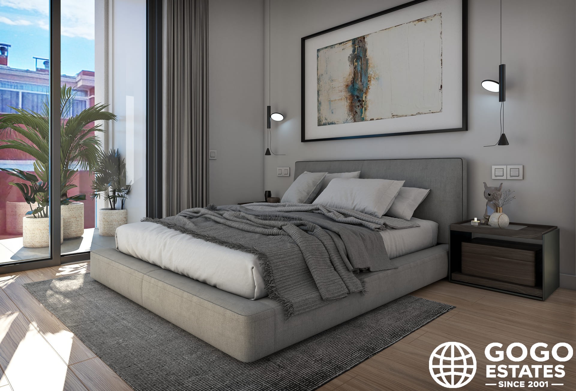Im Inneren bietet das moderne Penthouse zwei Schlafzimmer und zwei Badezimmer, mit eleganten Böden und einer voll ausgestatteten Küche. Komfort wird durch Klimaanlage, elektrische Jalousien und Einbauschränke gewährleistet. Eine Video-Gegensprechanlage erhöht die Sicherheit und den Komfort.